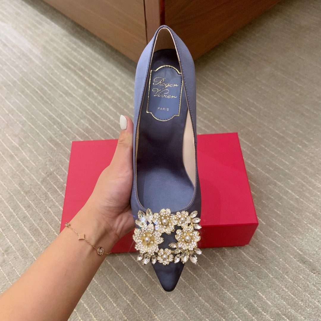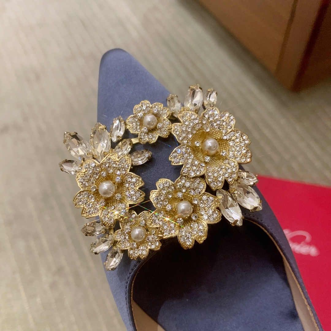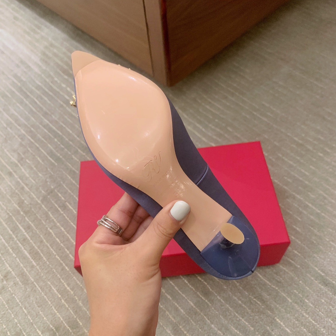 这款鞋子是AAAAA 1:1 质量 (非常棒). 使用了和原版一模一样的材料. 商标部分也保持了和罗杰维维耶/Roger Vivier一样. 图片拍摄是实物鞋子拍摄, 您所收到的实物保证和我们图片一模一样.