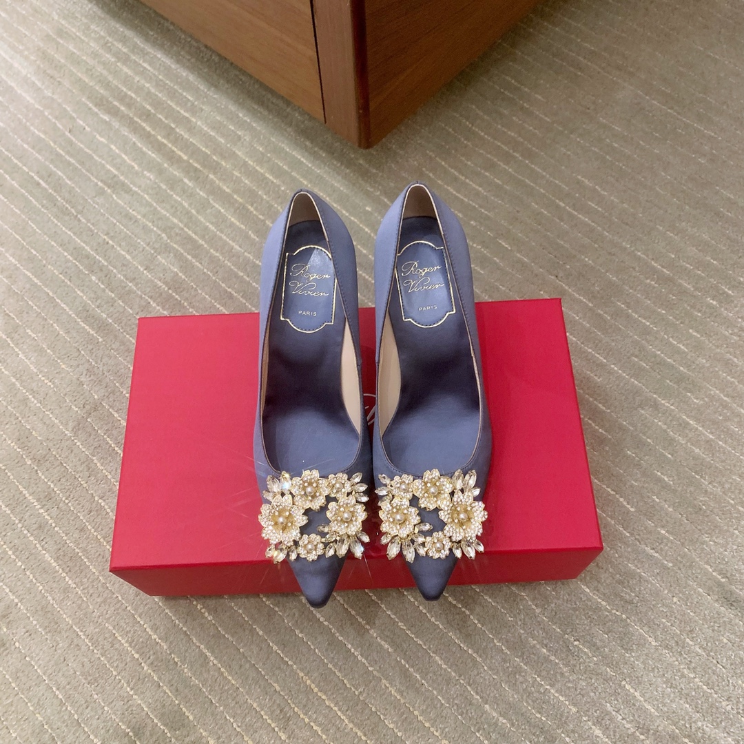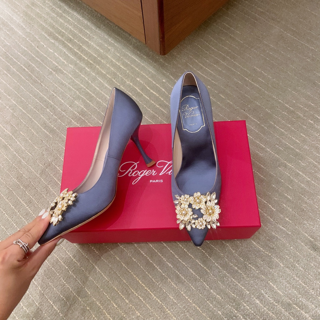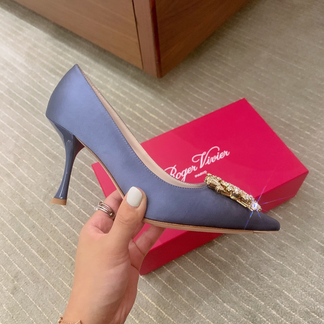 这款鞋子是AAAAA 1:1 质量 (非常棒). 使用了和原版一模一样的材料. 商标部分也保持了和罗杰维维耶/Roger Vivier一样. 图片拍摄是实物鞋子拍摄, 您所收到的实物保证和我们图片一模一样.