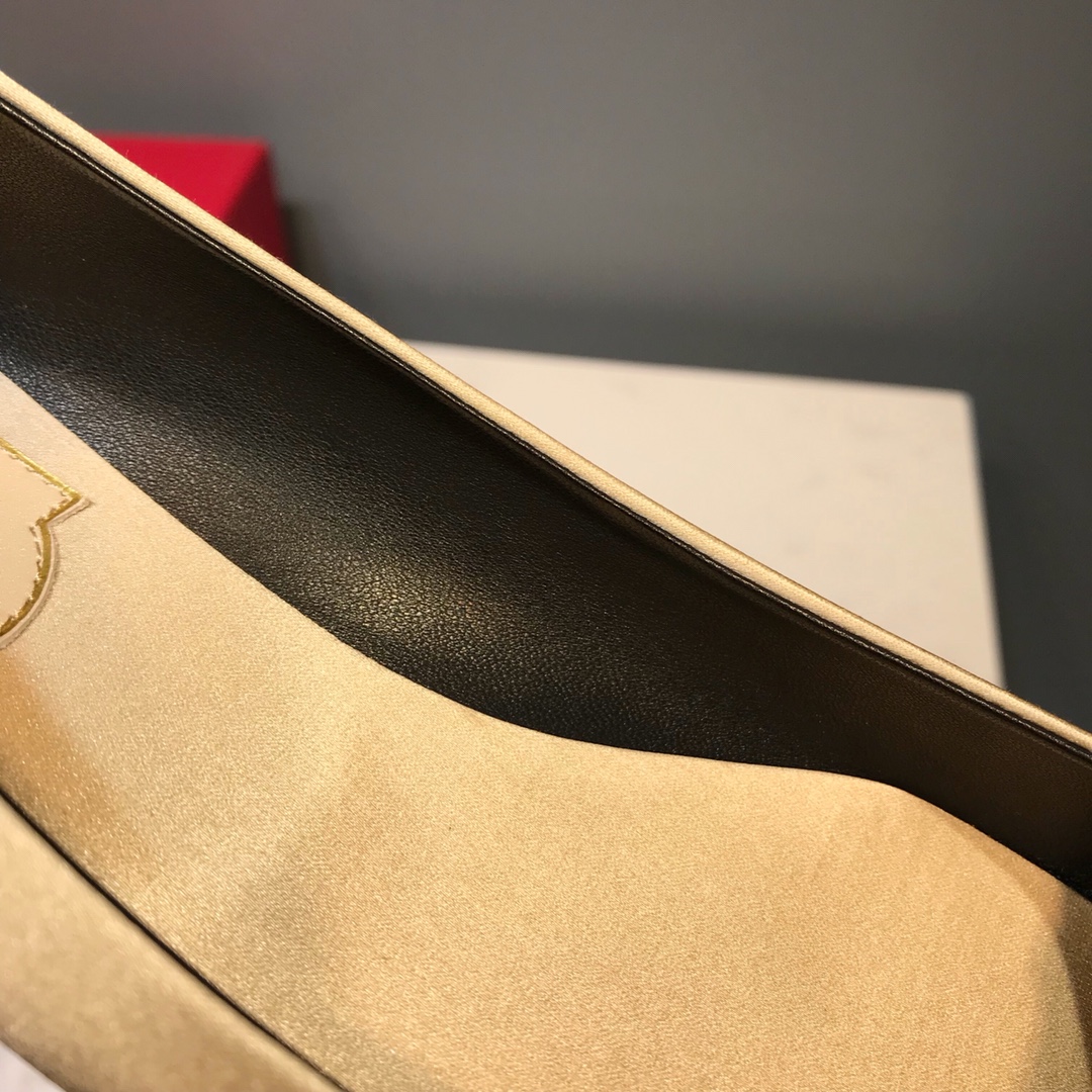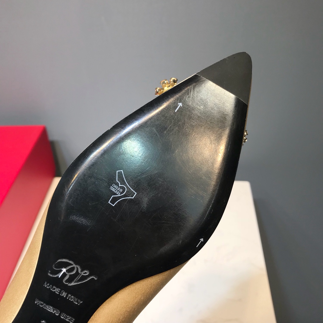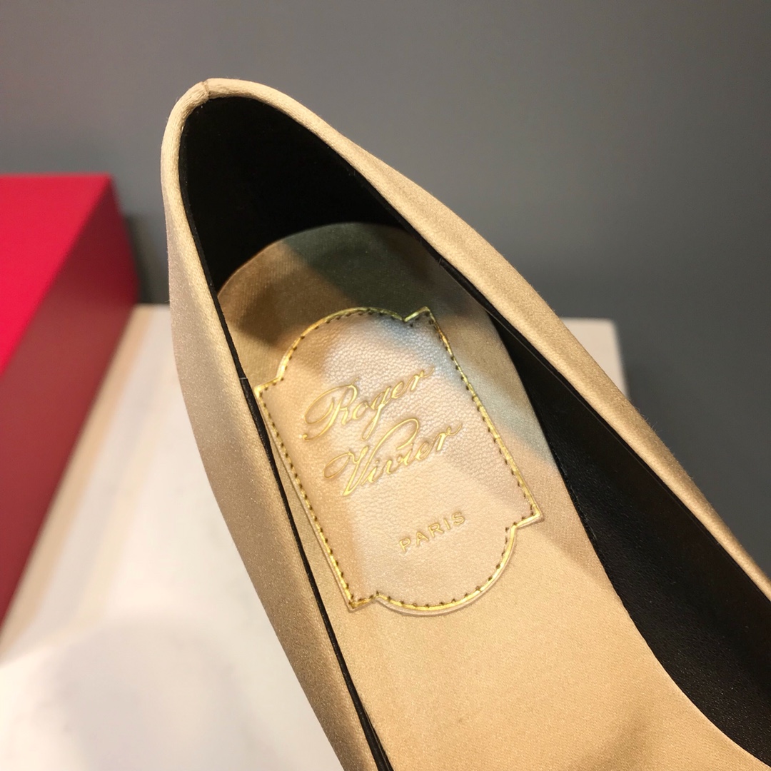这款鞋子是AAAAA 1:1 质量 (非常棒). 使用了和原版一模一样的材料. 商标部分也保持了和罗杰维维耶/Roger Vivier一样. 图片拍摄是实物鞋子拍摄, 您所收到的实物保证和我们图片一模一样.
