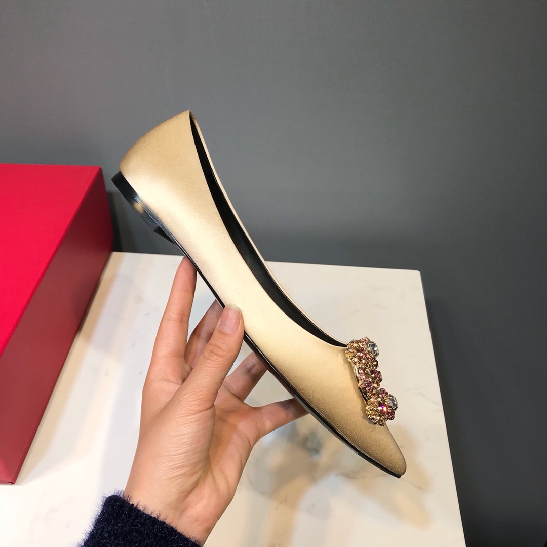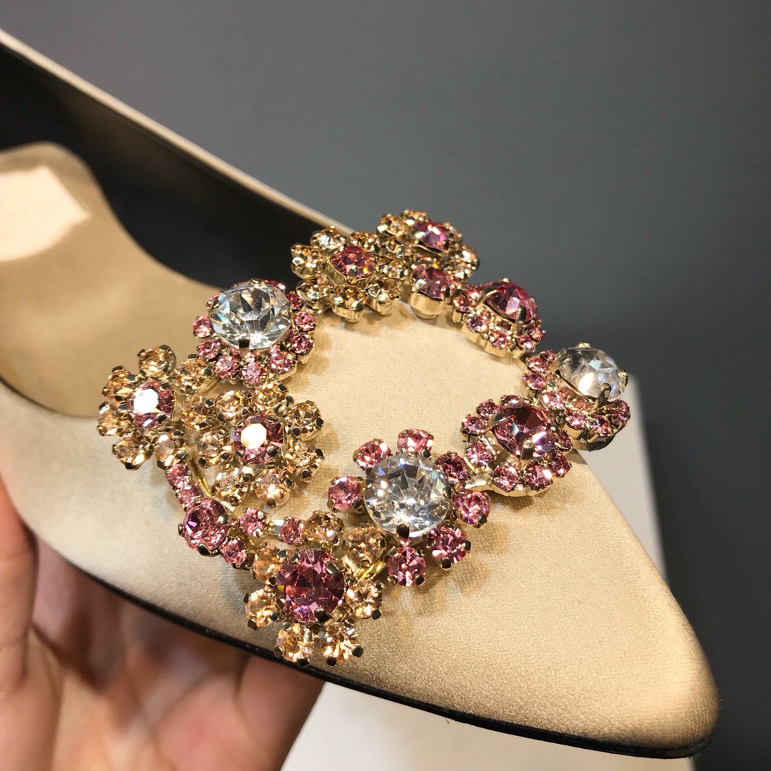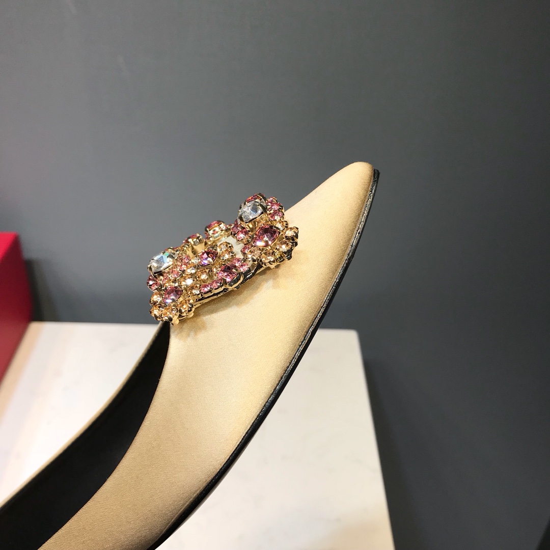 这款鞋子是AAAAA 1:1 质量 (非常棒). 使用了和原版一模一样的材料. 商标部分也保持了和罗杰维维耶/Roger Vivier一样. 图片拍摄是实物鞋子拍摄, 您所收到的实物保证和我们图片一模一样.