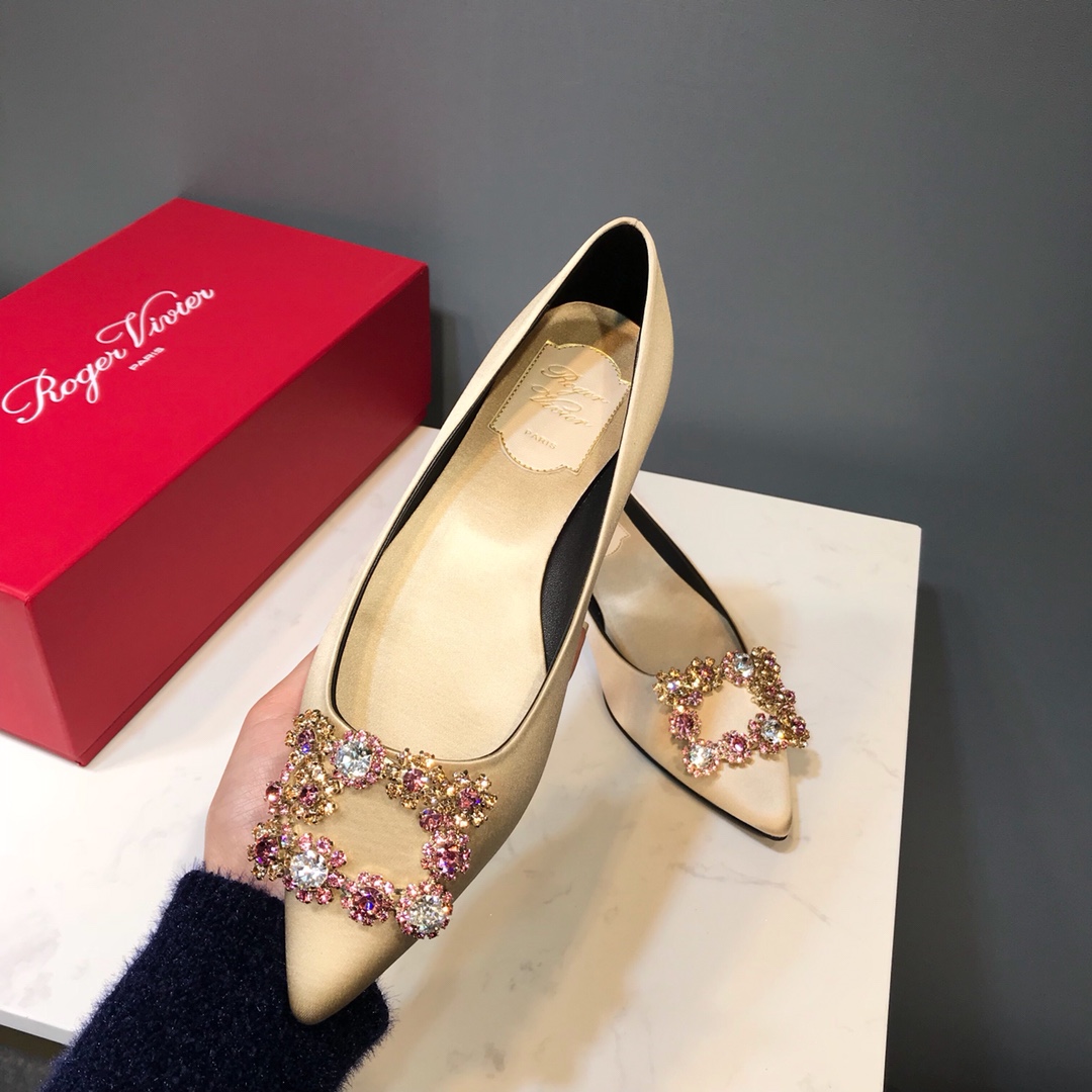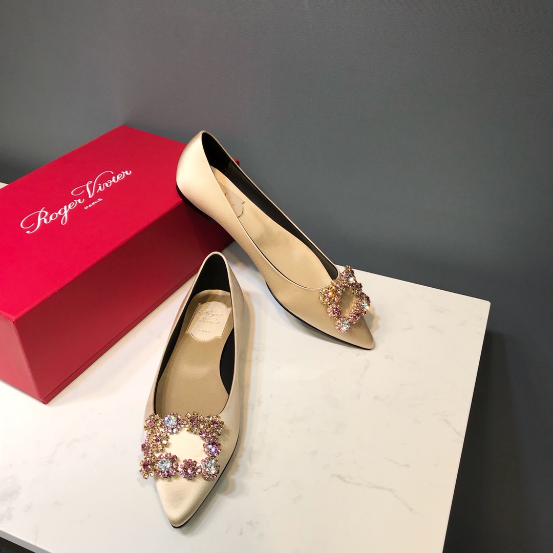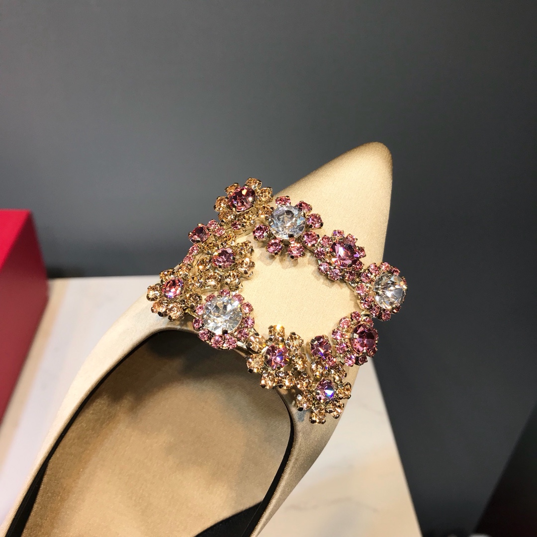 这款鞋子是AAAAA 1:1 质量 (非常棒). 使用了和原版一模一样的材料. 商标部分也保持了和罗杰维维耶/Roger Vivier一样. 图片拍摄是实物鞋子拍摄, 您所收到的实物保证和我们图片一模一样.