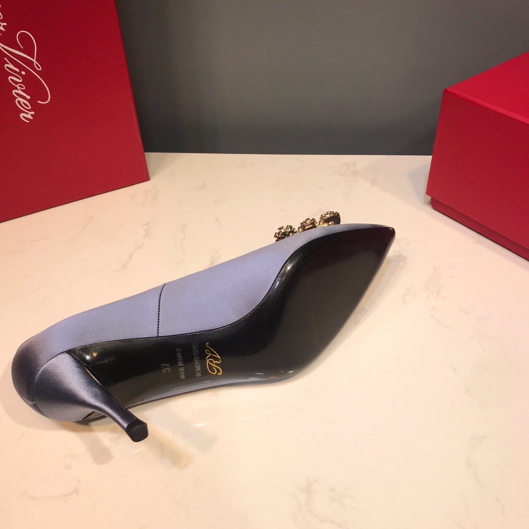 这款鞋子是AAAAA 1:1 质量 (非常棒). 使用了和原版一模一样的材料. 商标部分也保持了和罗杰维维耶/Roger Vivier一样. 图片拍摄是实物鞋子拍摄, 您所收到的实物保证和我们图片一模一样.