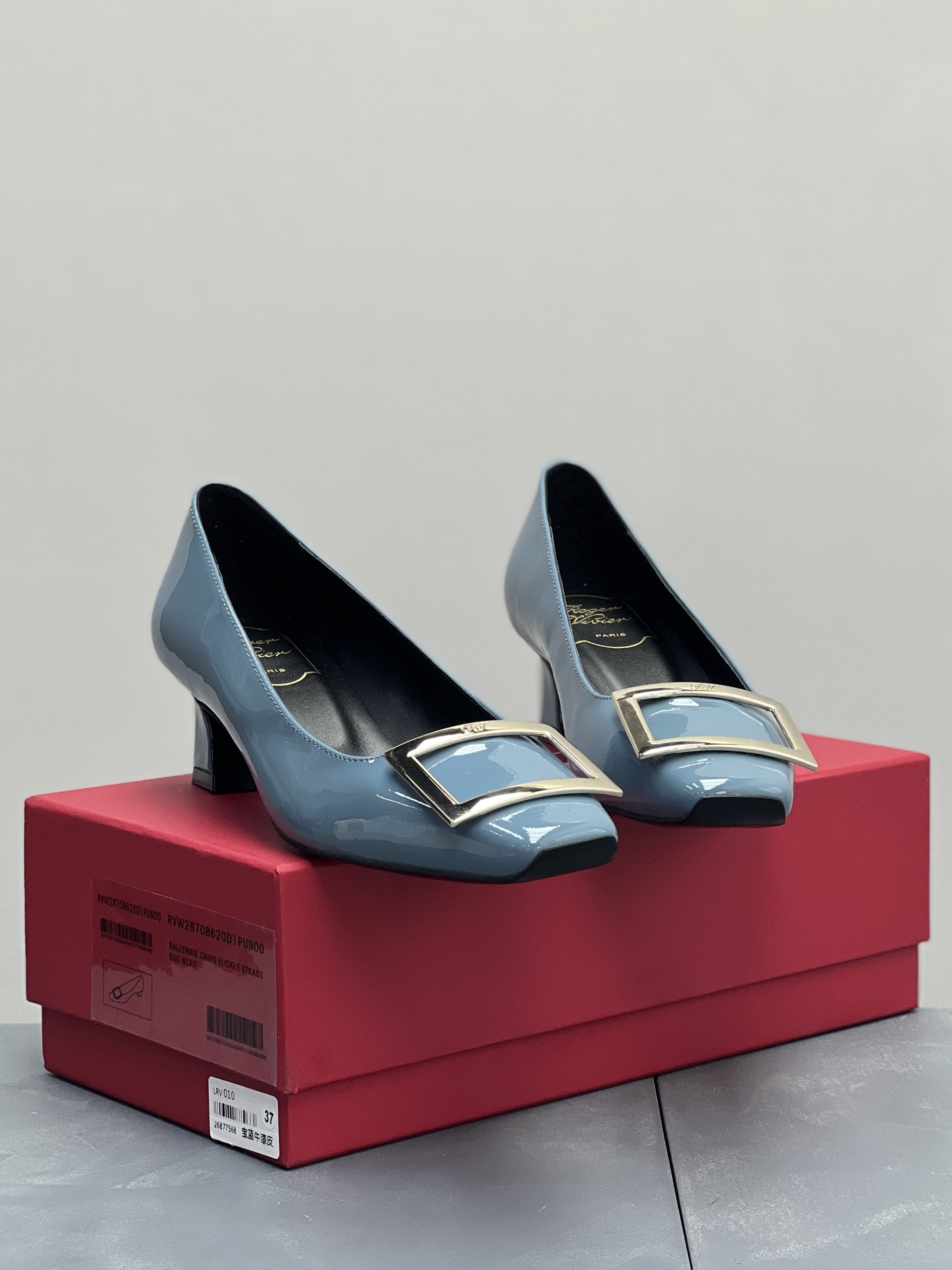 这款鞋子是AAAAA 1:1 质量 (非常棒). 使用了和原版一模一样的材料. 商标部分也保持了和罗杰维维耶/Roger Vivier一样. 图片拍摄是实物鞋子拍摄, 您所收到的实物保证和我们图片一模一样.