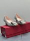 这款鞋子是AAAAA 1:1 质量 (非常棒). 使用了和原版一模一样的材料. 商标部分也保持了和罗杰维维耶/Roger Vivier一样. 图片拍摄是实物鞋子拍摄, 您所收到的实物保证和我们图片一模一样.