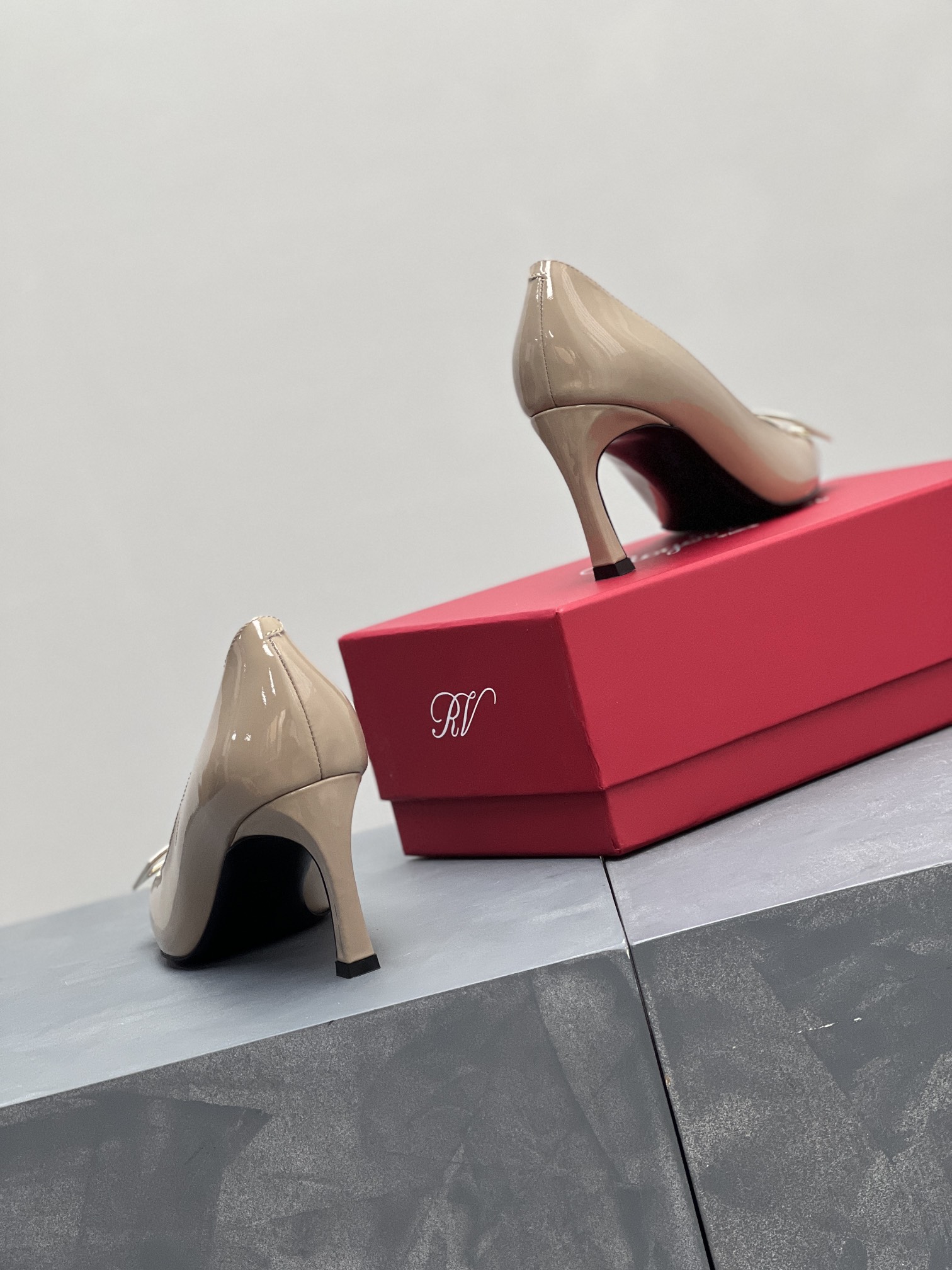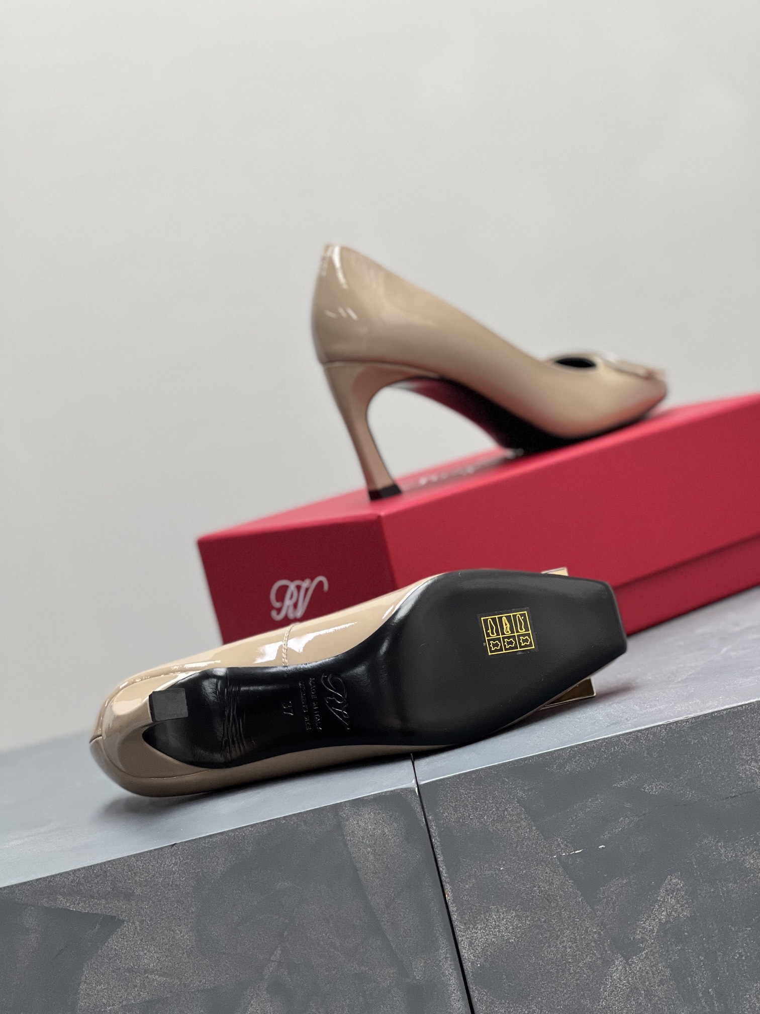 这款鞋子是AAAAA 1:1 质量 (非常棒). 使用了和原版一模一样的材料. 商标部分也保持了和罗杰维维耶/Roger Vivier一样. 图片拍摄是实物鞋子拍摄, 您所收到的实物保证和我们图片一模一样.