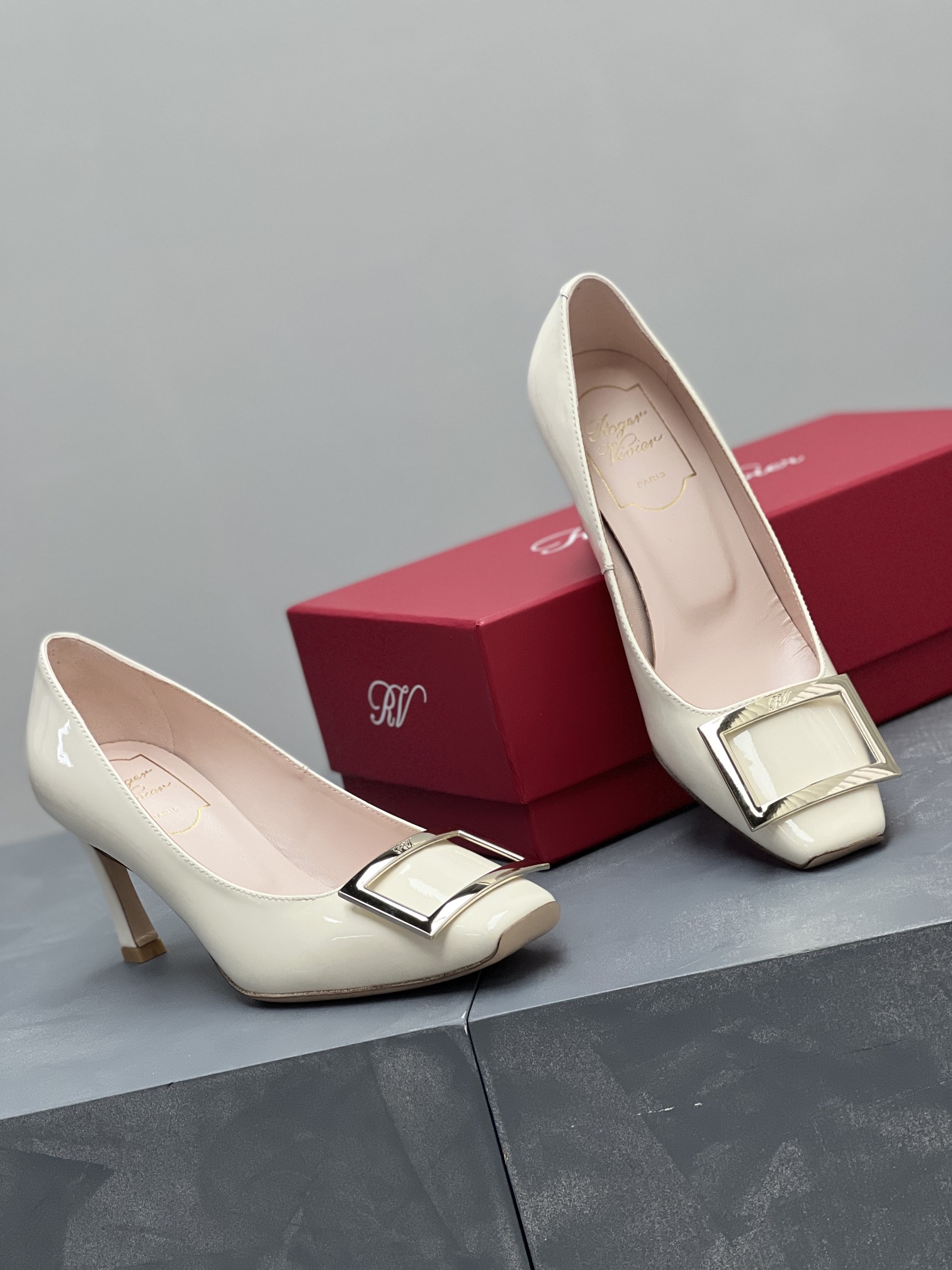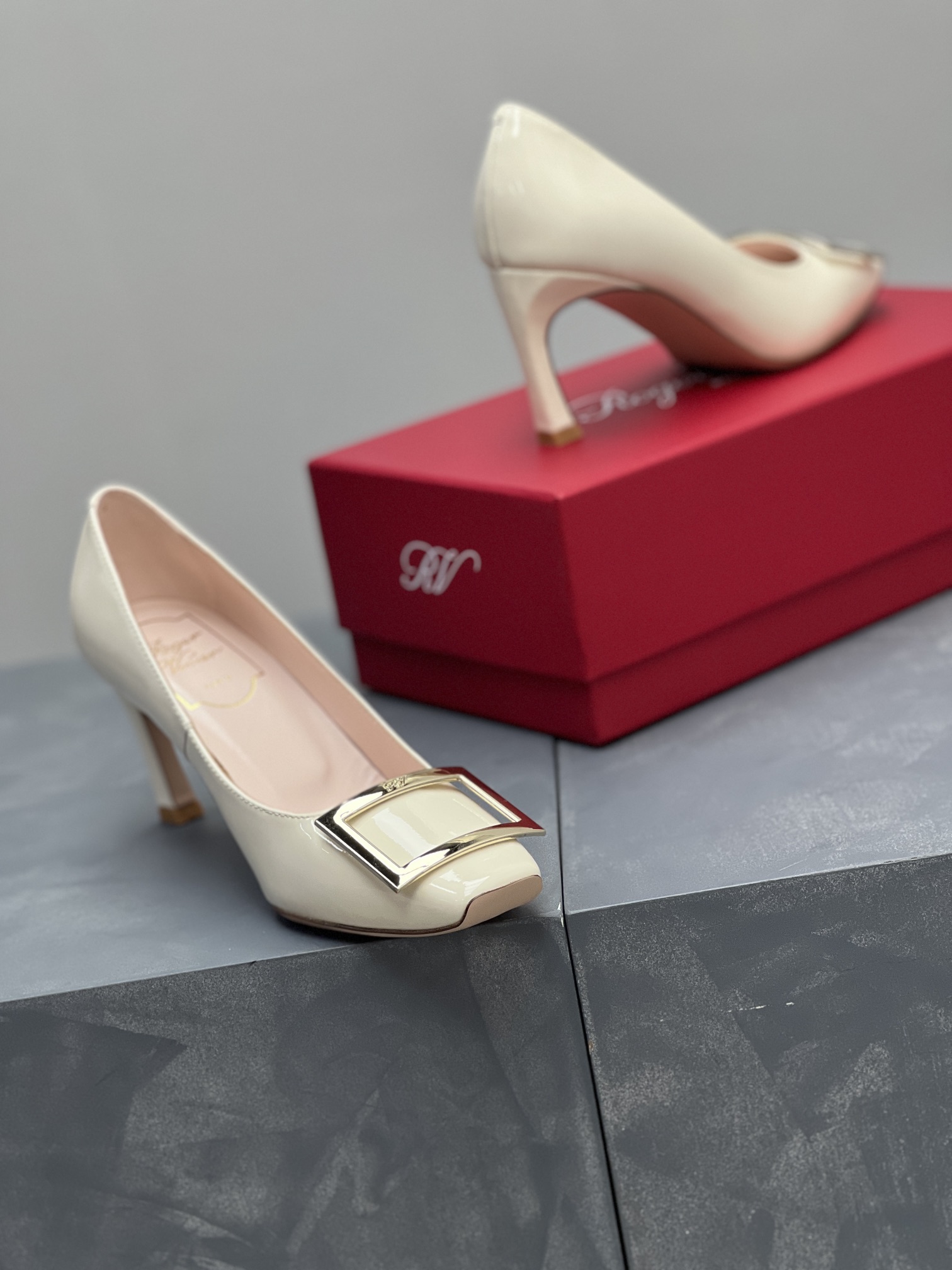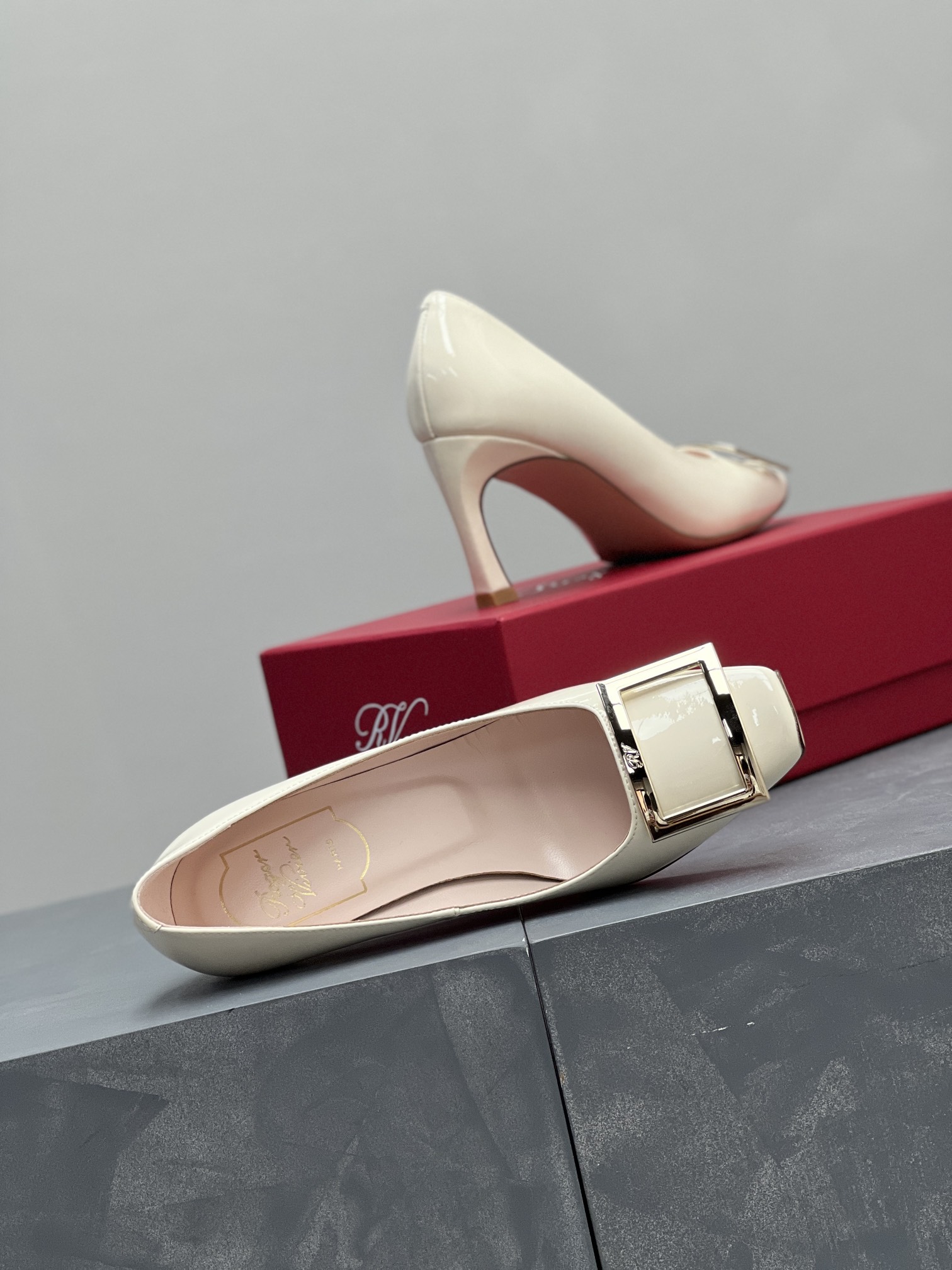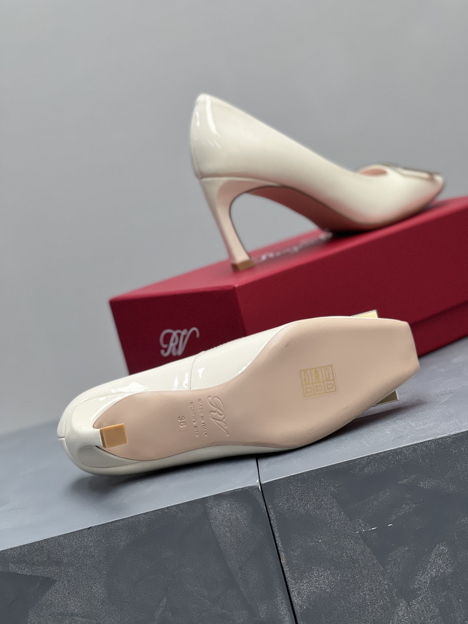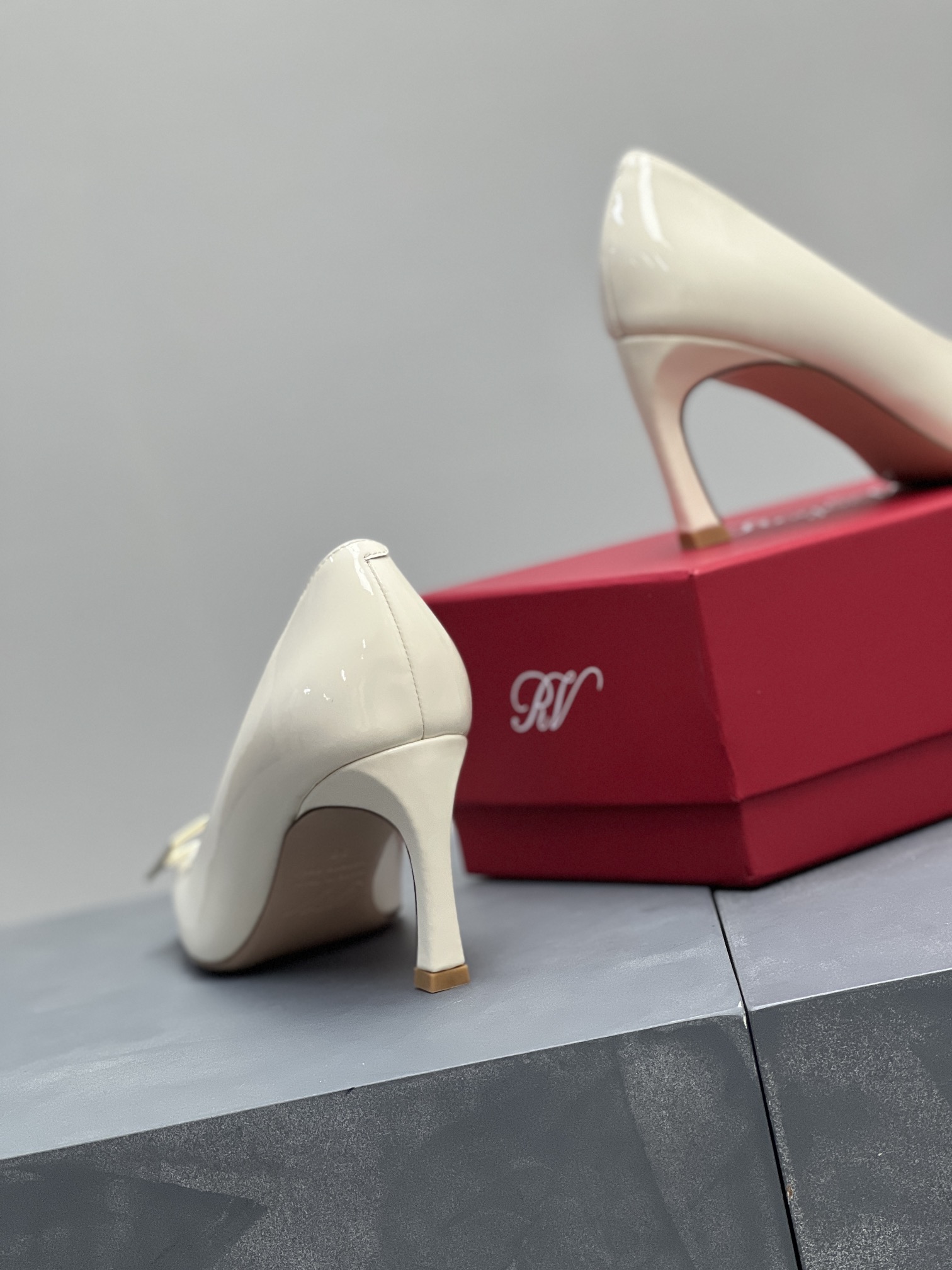 这款鞋子是AAAAA 1:1 质量 (非常棒). 使用了和原版一模一样的材料. 商标部分也保持了和罗杰维维耶/Roger Vivier一样. 图片拍摄是实物鞋子拍摄, 您所收到的实物保证和我们图片一模一样.