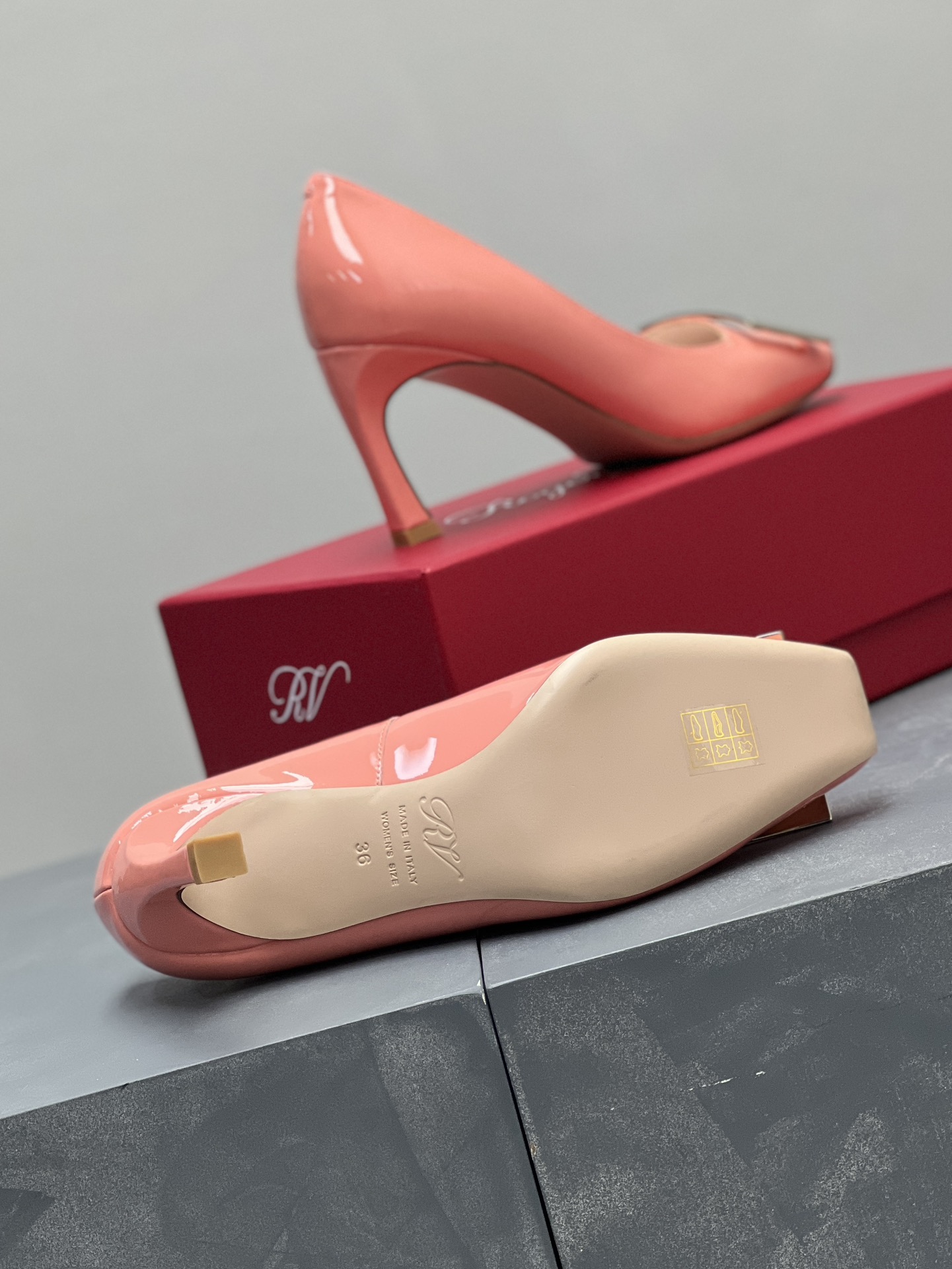 这款鞋子是AAAAA 1:1 质量 (非常棒). 使用了和原版一模一样的材料. 商标部分也保持了和罗杰维维耶/Roger Vivier一样. 图片拍摄是实物鞋子拍摄, 您所收到的实物保证和我们图片一模一样.