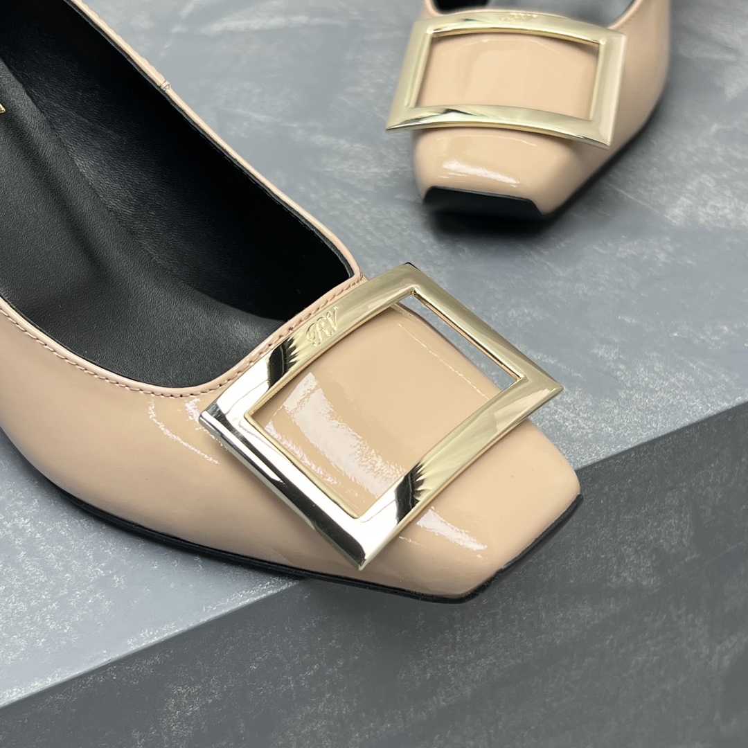 这款鞋子是AAAAA 1:1 质量 (非常棒). 使用了和原版一模一样的材料. 商标部分也保持了和罗杰维维耶/Roger Vivier一样. 图片拍摄是实物鞋子拍摄, 您所收到的实物保证和我们图片一模一样.