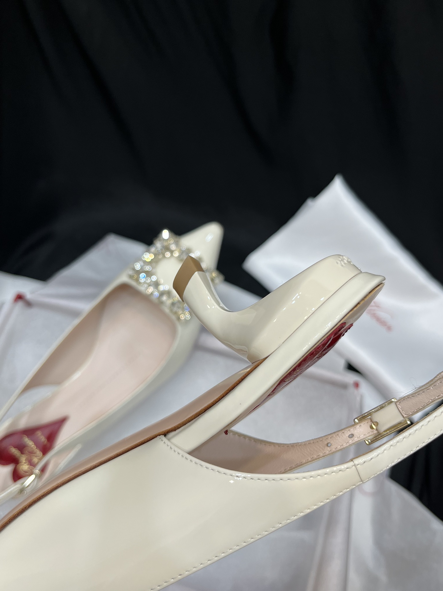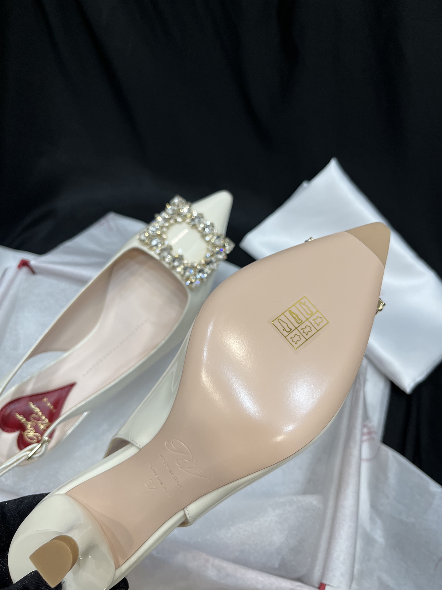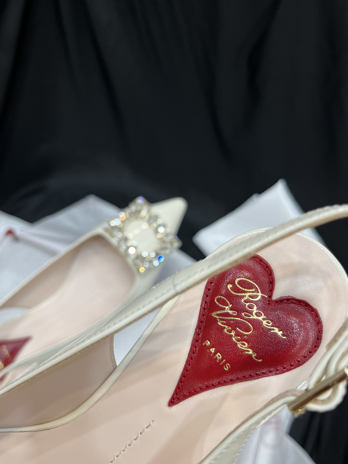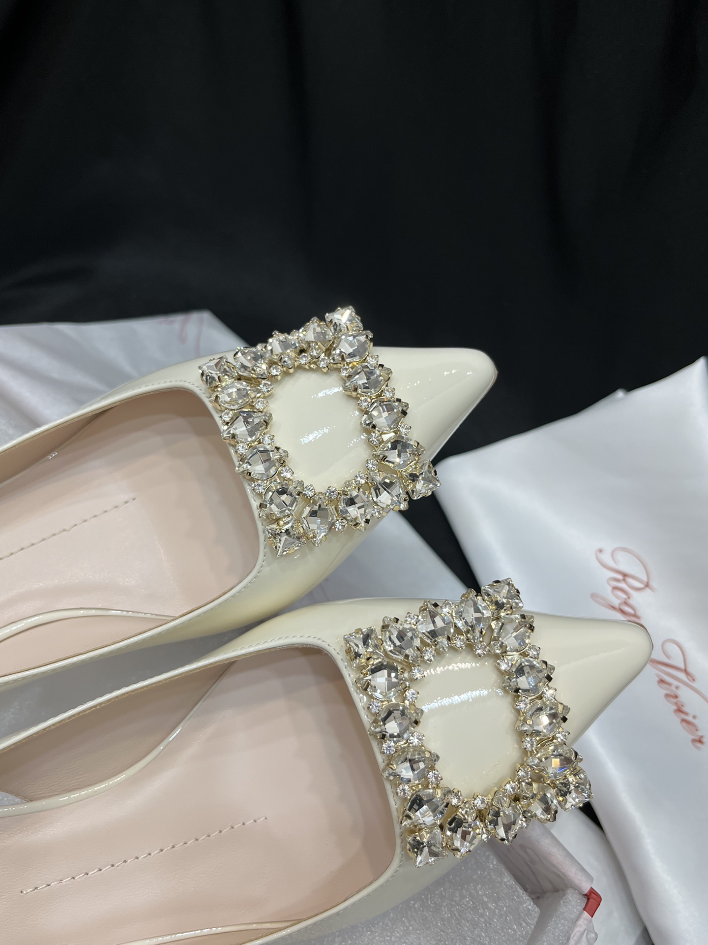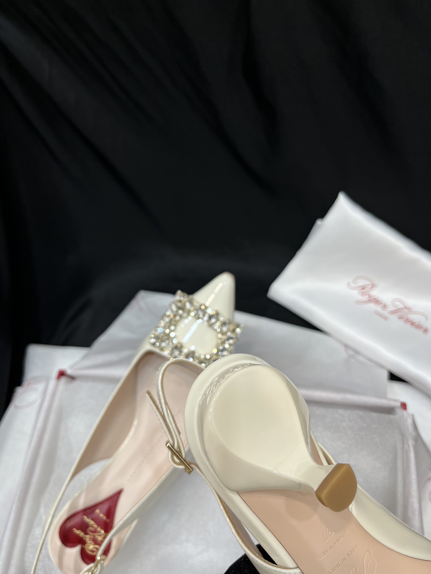 这款鞋子是AAAAA 1:1 质量 (非常棒). 使用了和原版一模一样的材料. 商标部分也保持了和罗杰维维耶/Roger Vivier一样. 图片拍摄是实物鞋子拍摄, 您所收到的实物保证和我们图片一模一样.