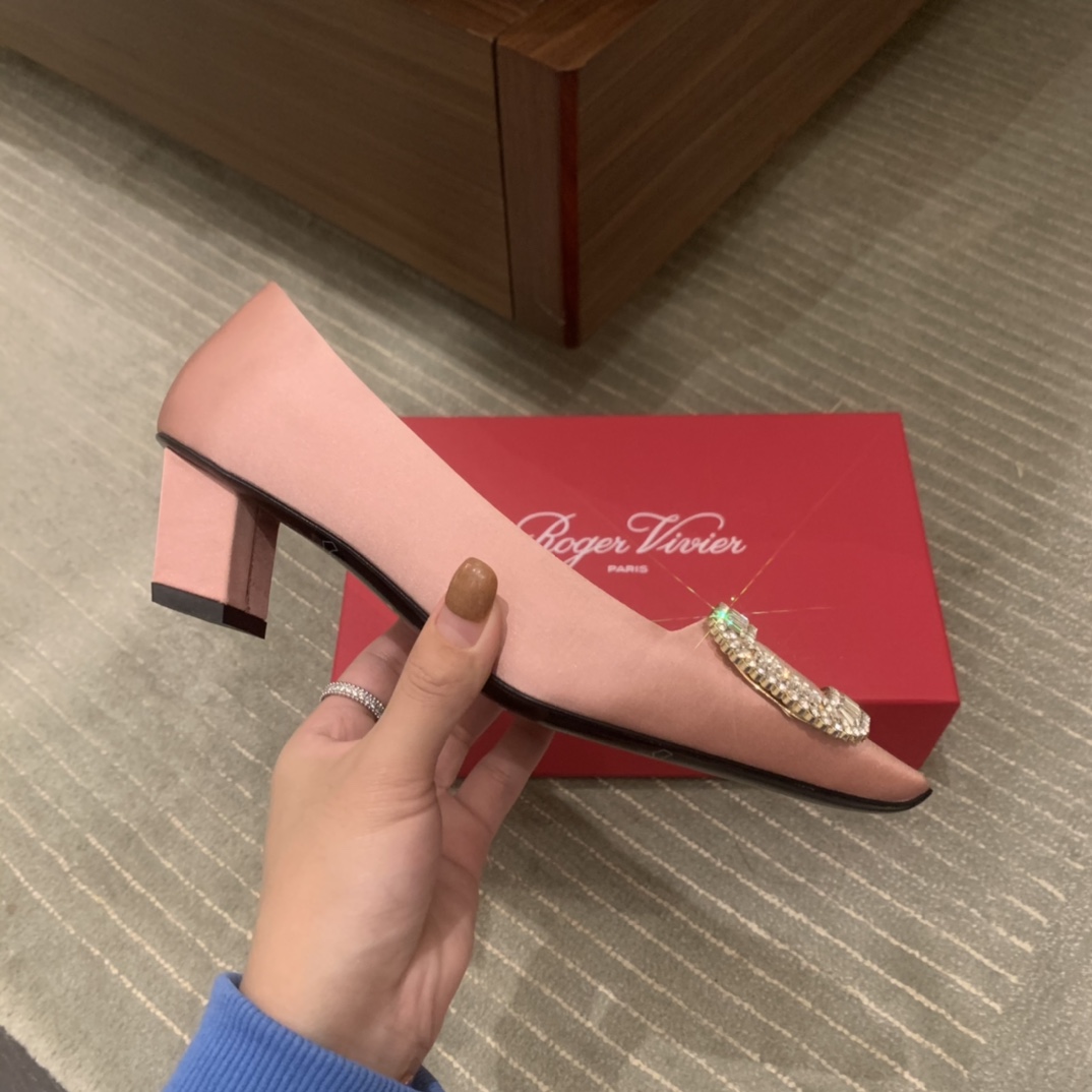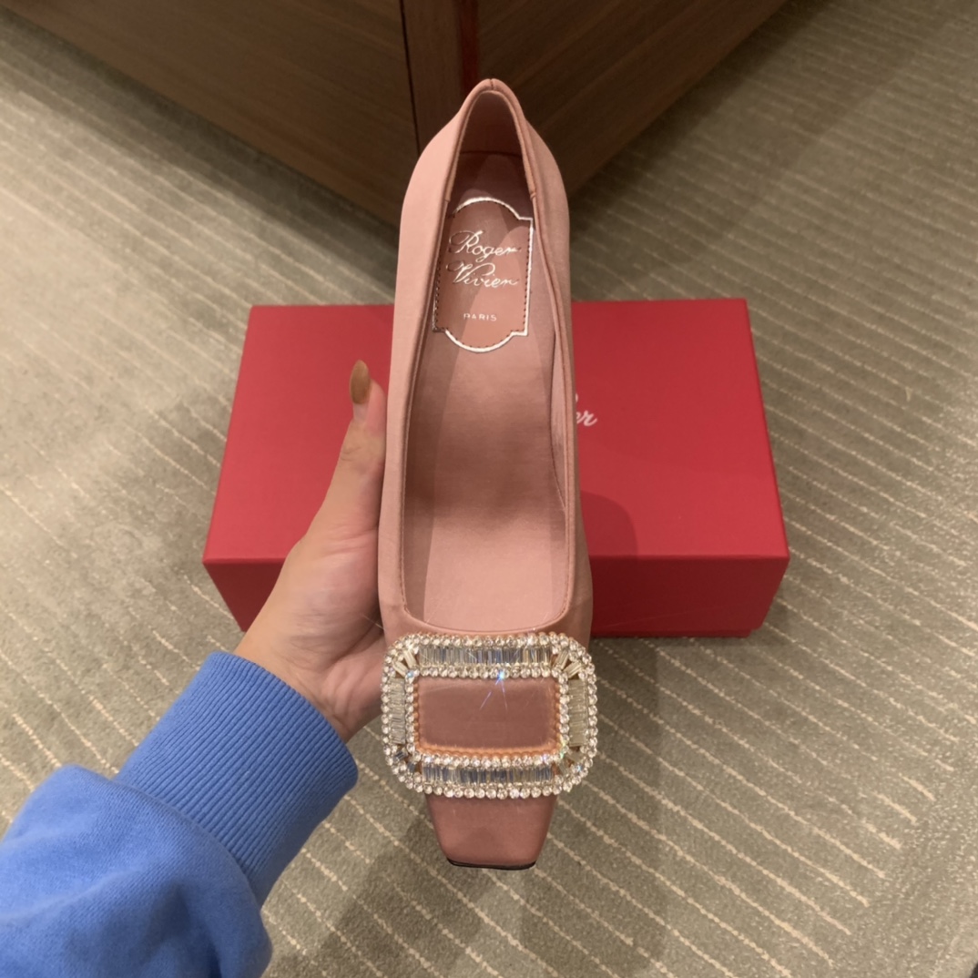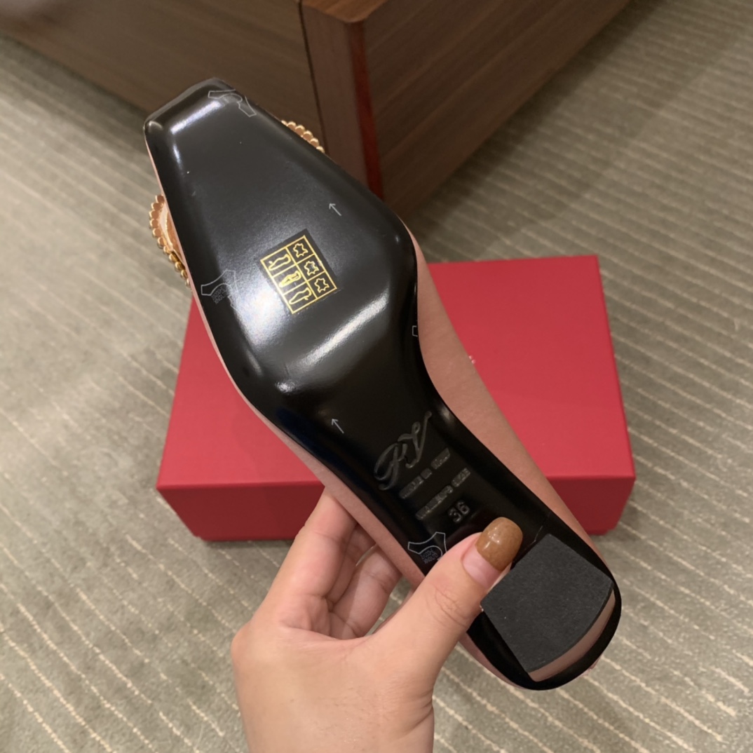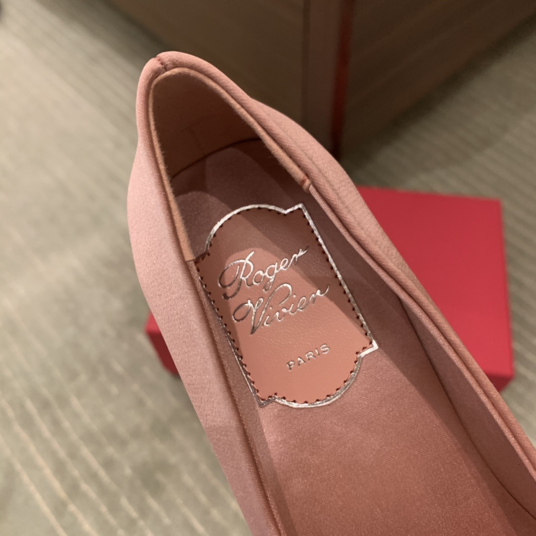 这款鞋子是AAAAA 1:1 质量 (非常棒). 使用了和原版一模一样的材料. 商标部分也保持了和罗杰维维耶/Roger Vivier一样. 图片拍摄是实物鞋子拍摄, 您所收到的实物保证和我们图片一模一样.