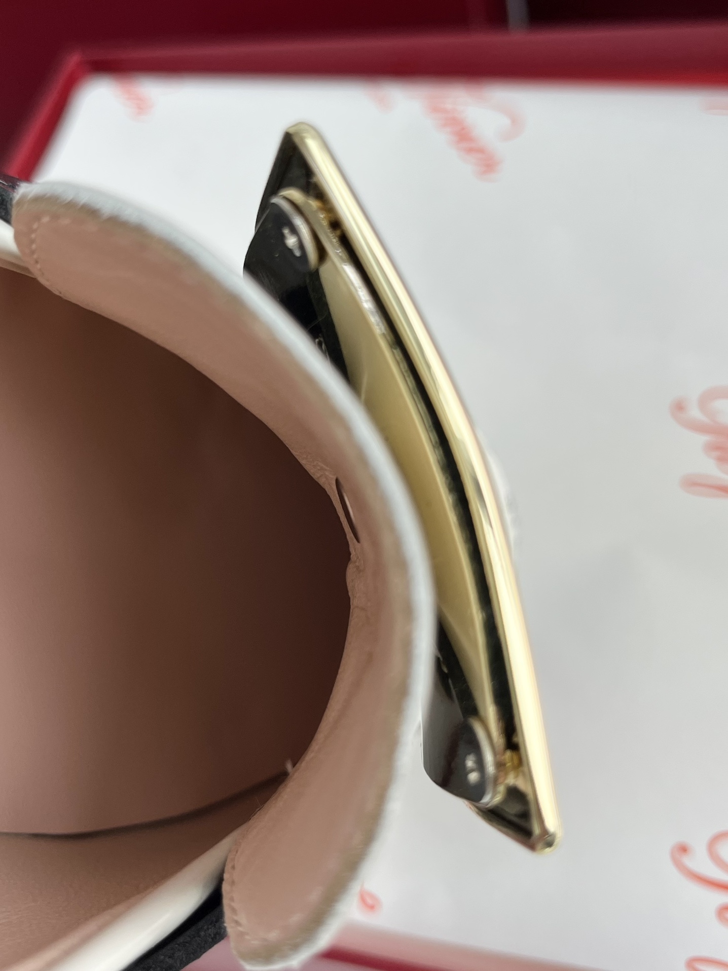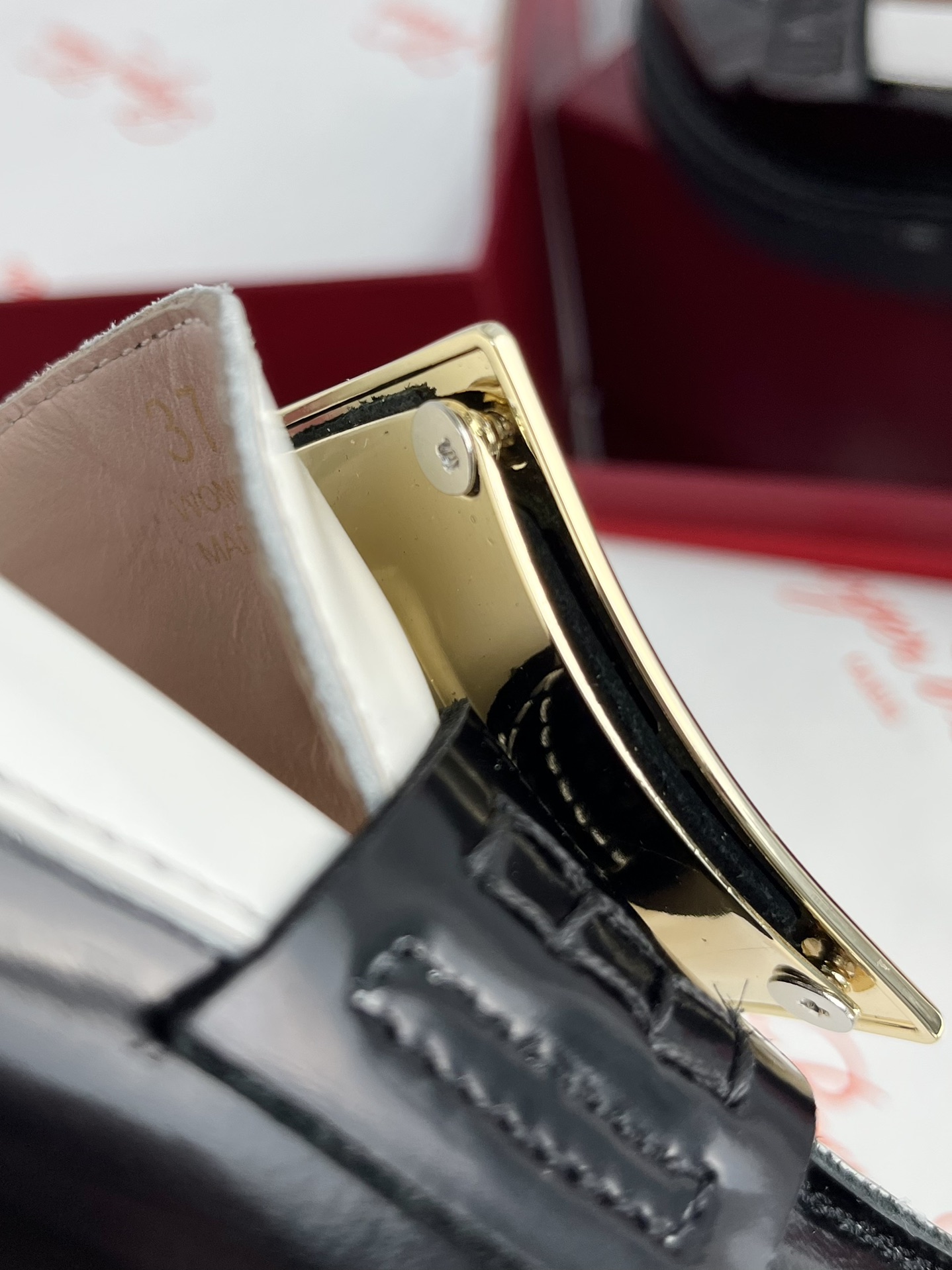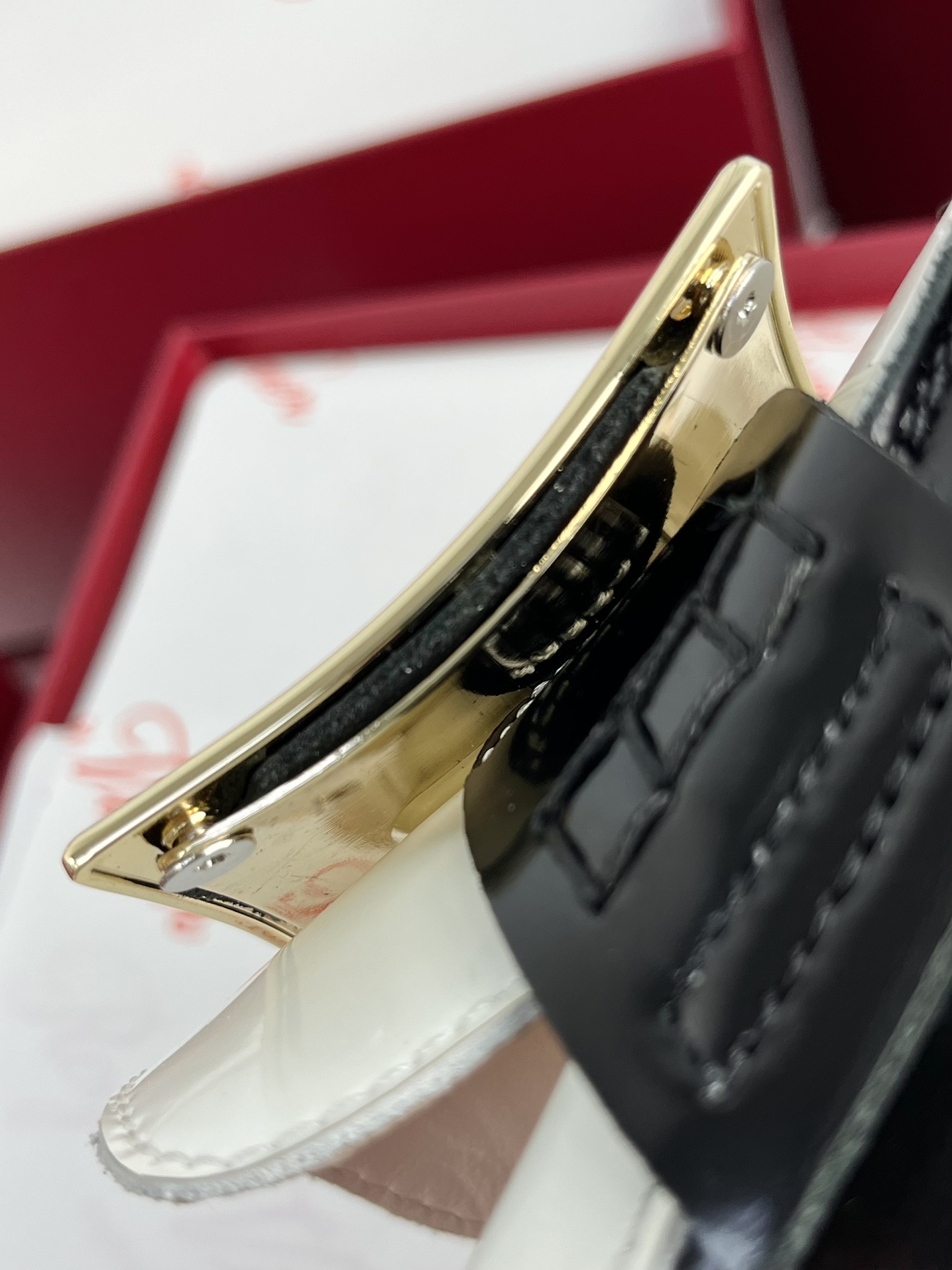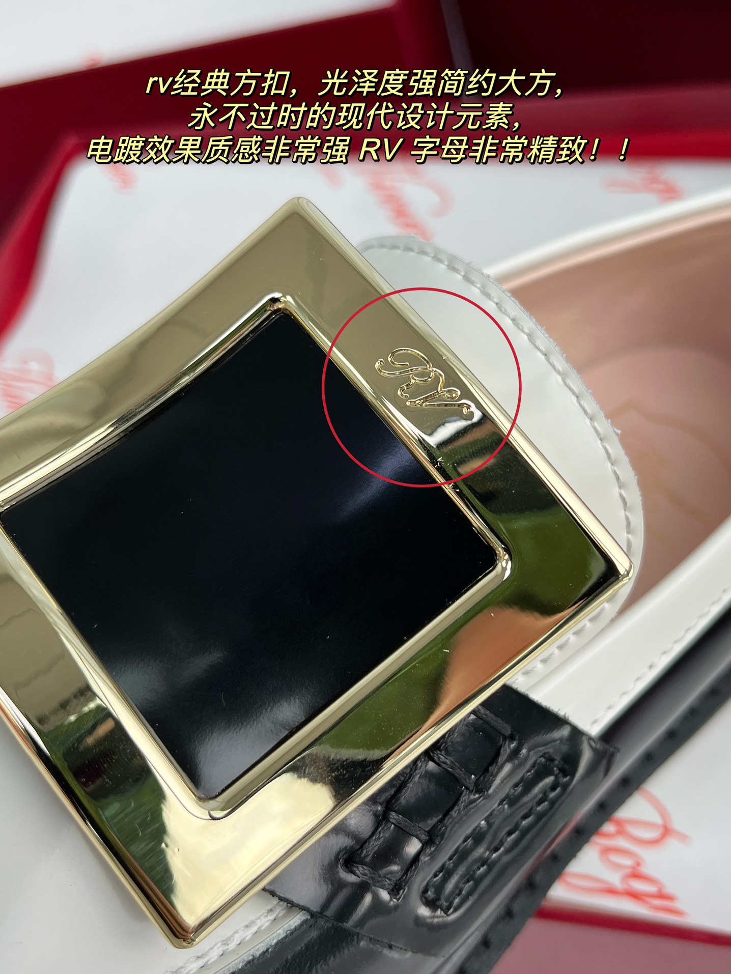 这款鞋子是AAAAA 1:1 质量 (非常棒). 使用了和原版一模一样的材料. 商标部分也保持了和罗杰维维耶/Roger Vivier一样. 图片拍摄是实物鞋子拍摄, 您所收到的实物保证和我们图片一模一样.