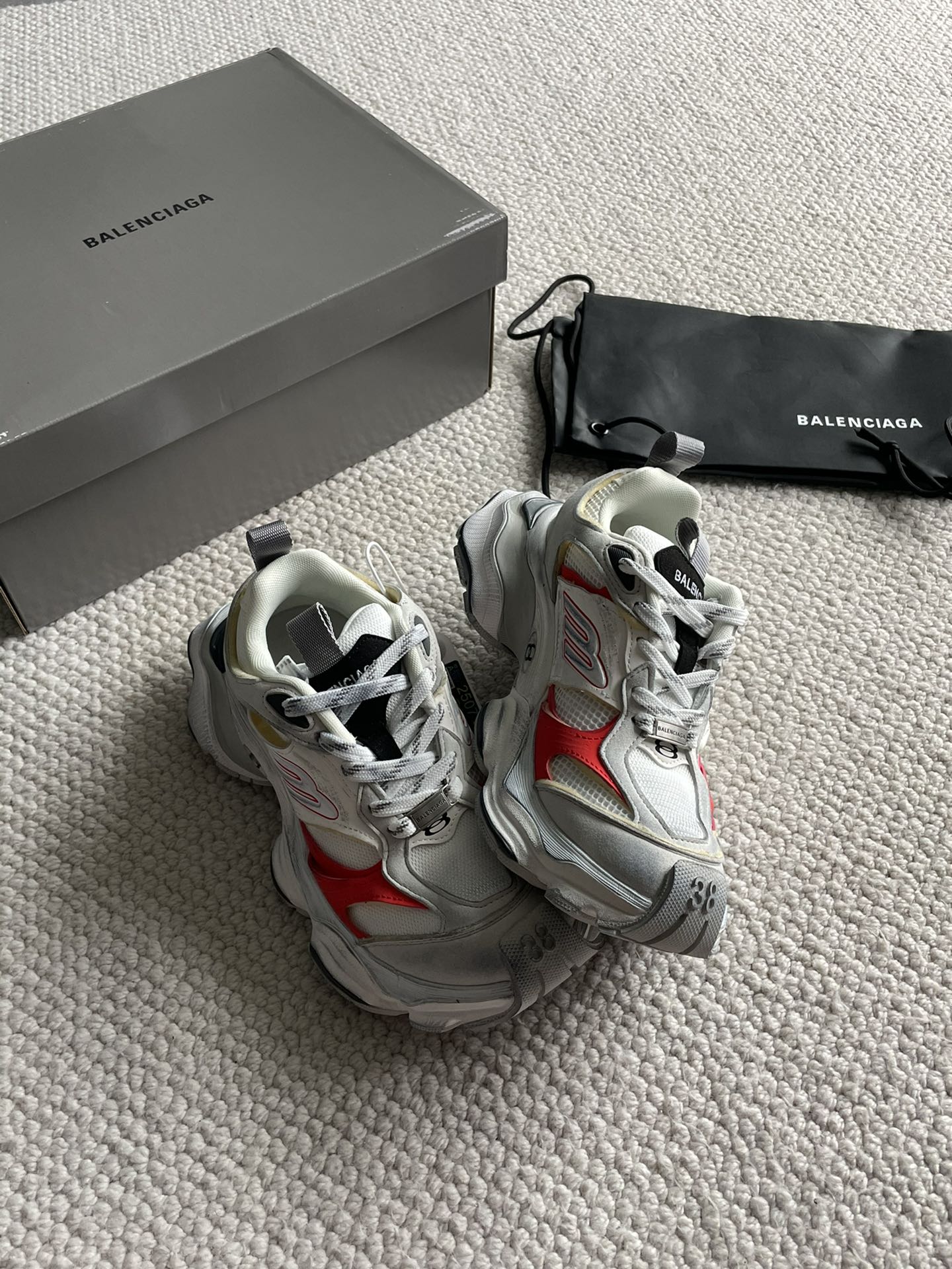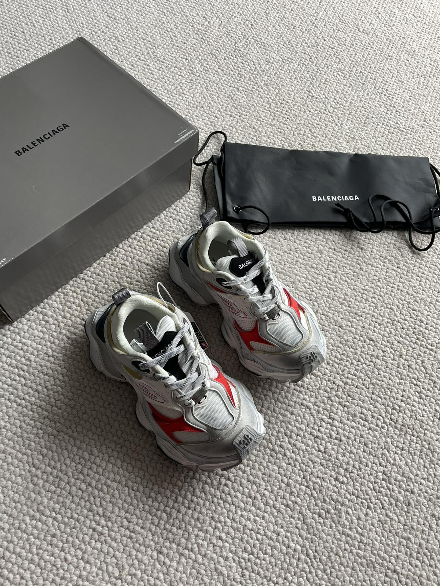 这款鞋子是AAAAA 1:1 质量 (非常棒). 使用了和原版一模一样的材料. 商标部分也保持了和巴黎世家/Balenciaga一样. 图片拍摄是实物鞋子拍摄, 您所收到的实物保证和我们图片一模一样.