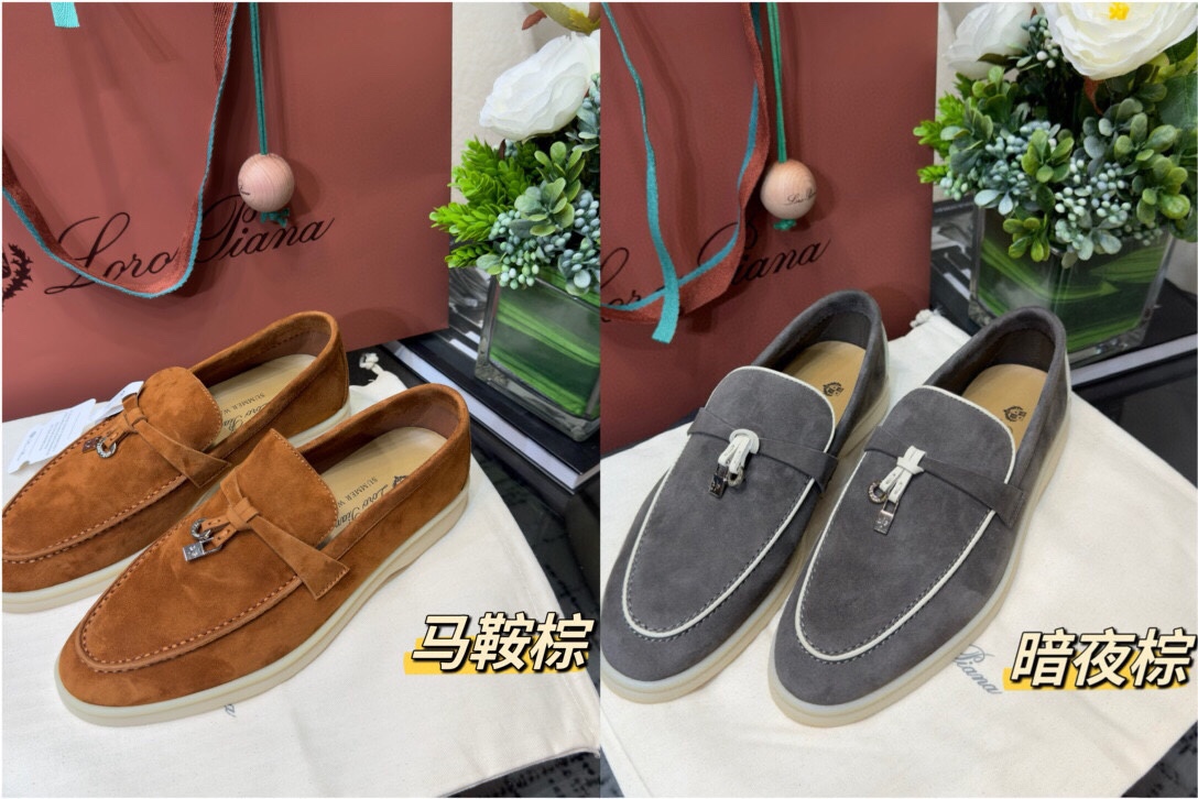 这款鞋子是AAAAA 1:1 质量 (非常棒). 使用了和原版一模一样的材料. 商标部分也保持了和洛罗皮亚纳/Loro Piana一样. 图片拍摄是实物鞋子拍摄, 您所收到的实物保证和我们图片一模一样.