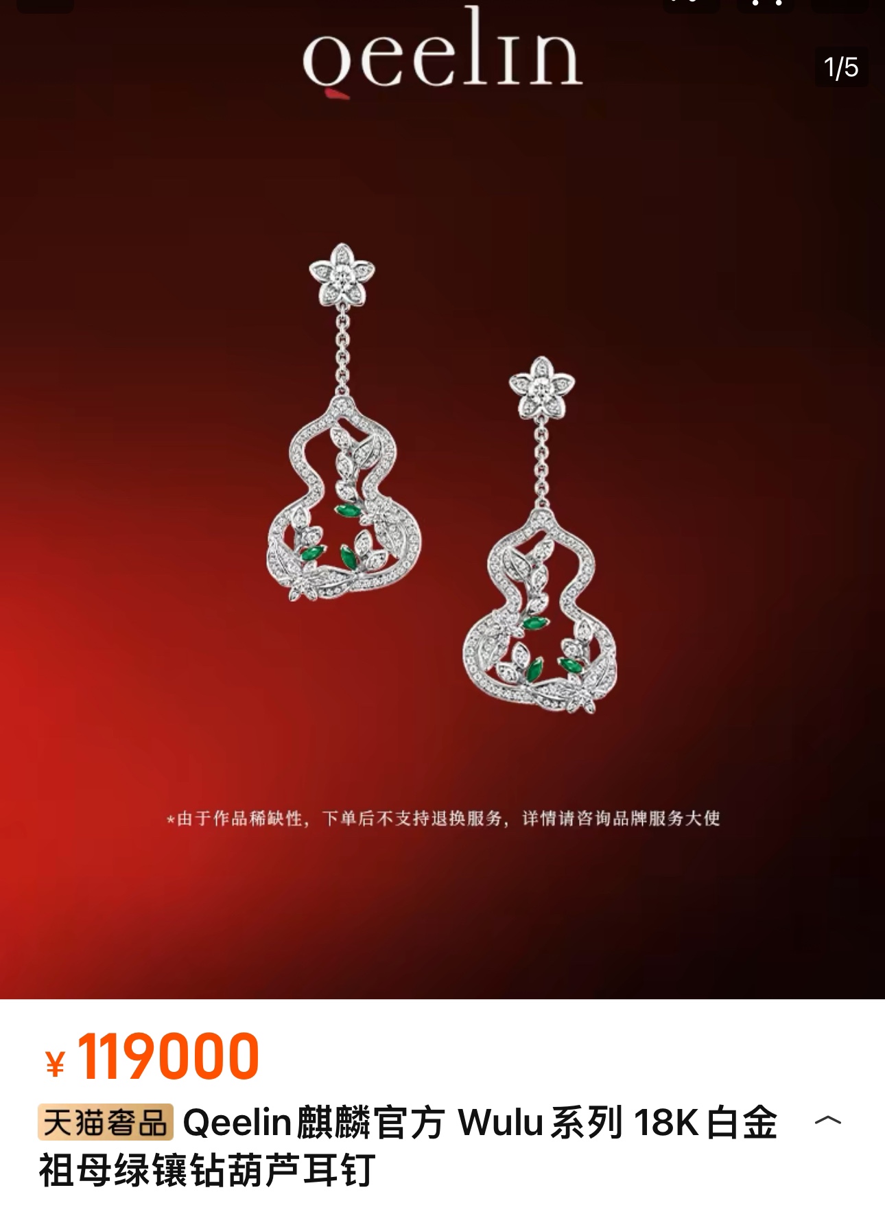 这款首饰是AAAAA 1:1 质量 (非常棒). 使用了和原版一模一样的材料. 商标部分也保持了和Qeelin一样. 图片拍摄是实物首饰拍摄, 您所收到的实物保证和我们图片一模一样.