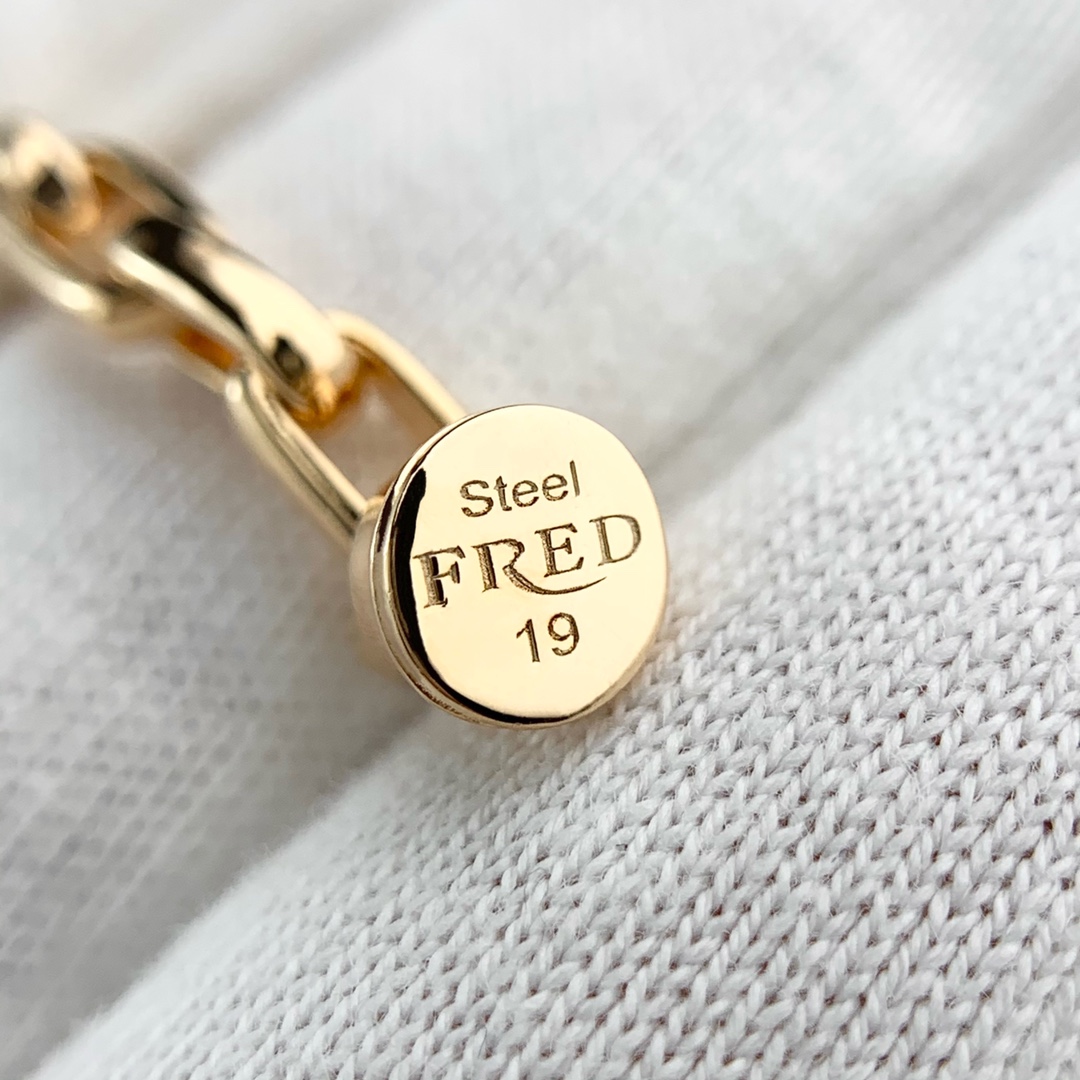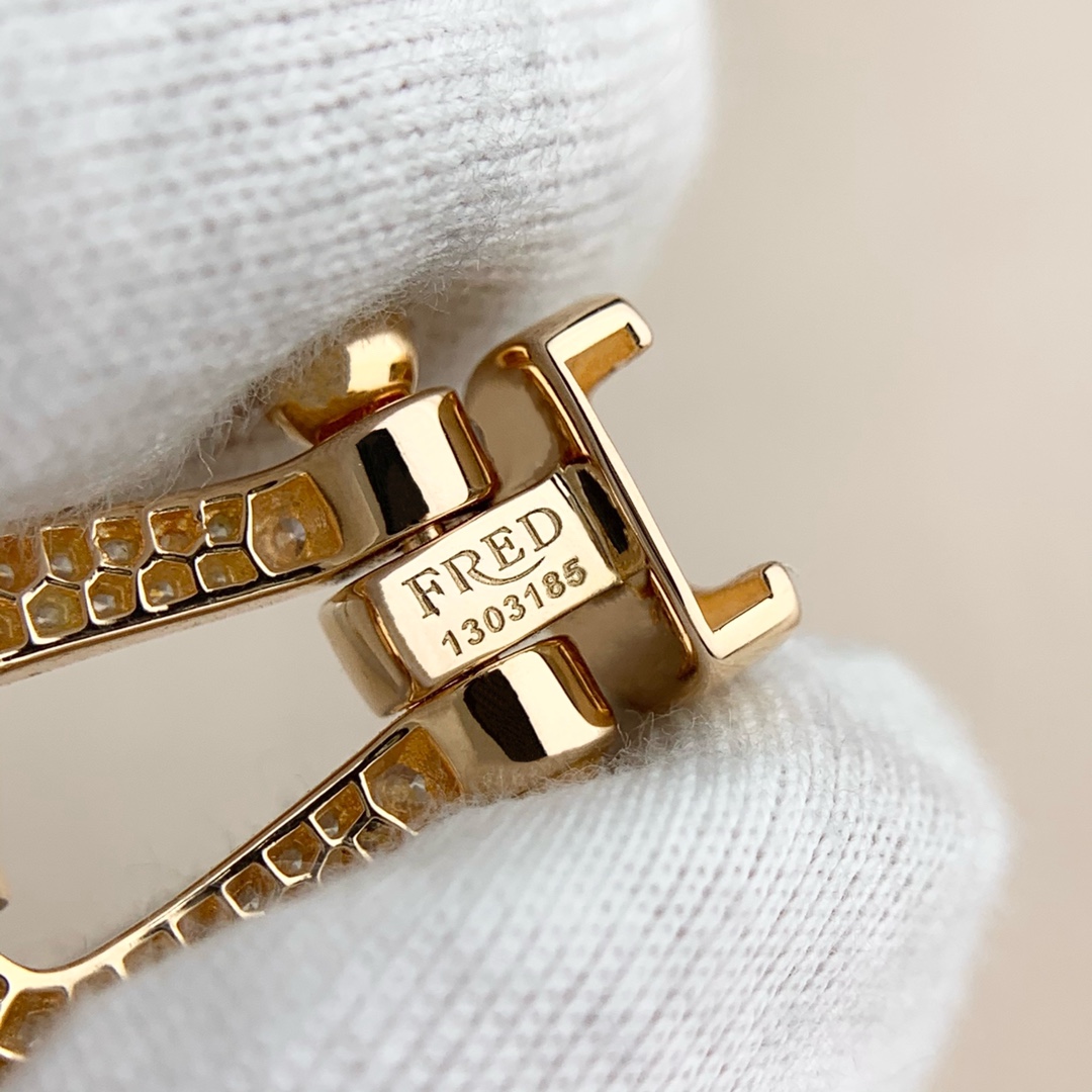 这款首饰是AAAAA 1:1 质量 (非常棒). 使用了和原版一模一样的材料. 商标部分也保持了和Fred一样. 图片拍摄是实物首饰拍摄, 您所收到的实物保证和我们图片一模一样.
