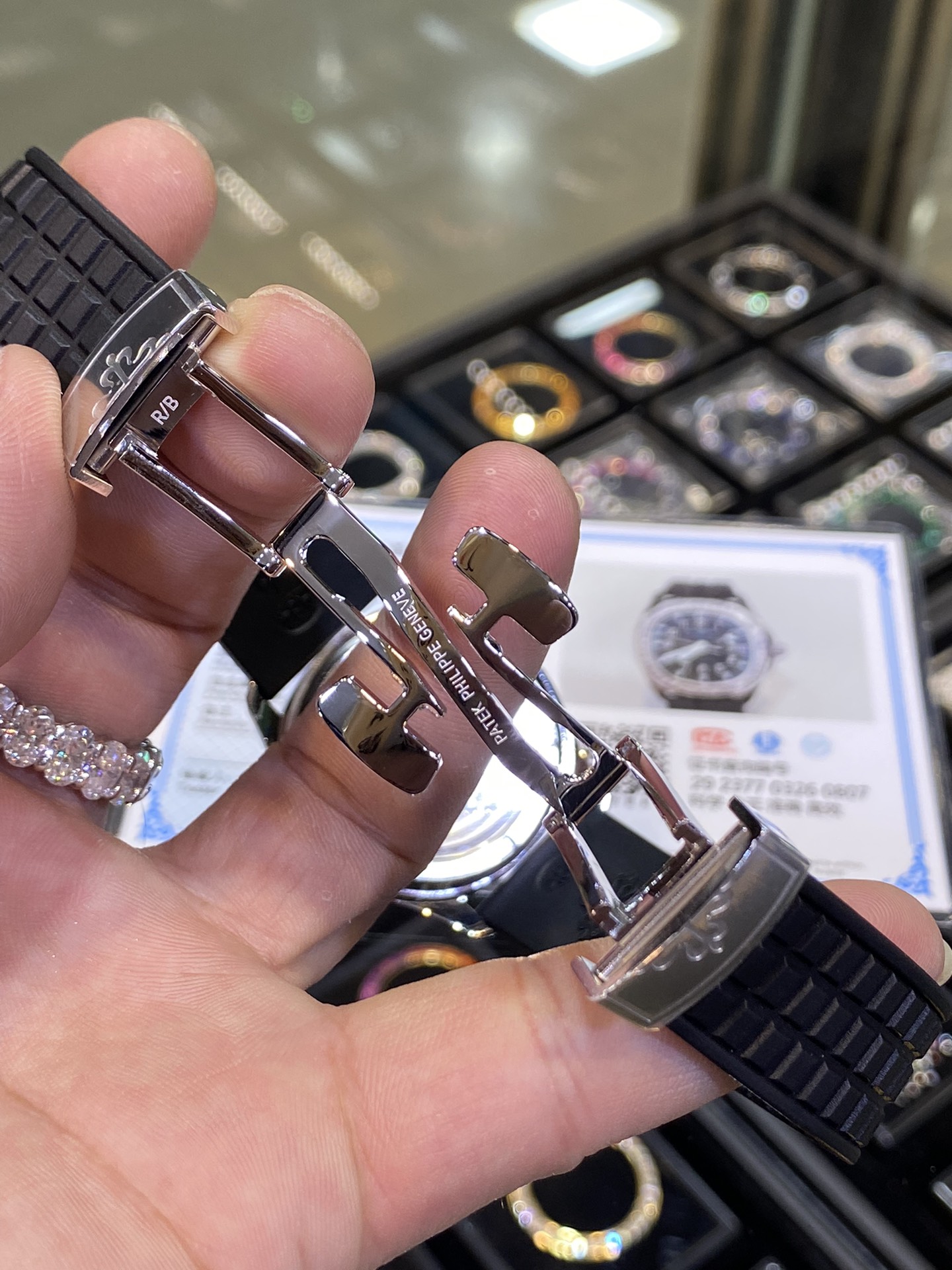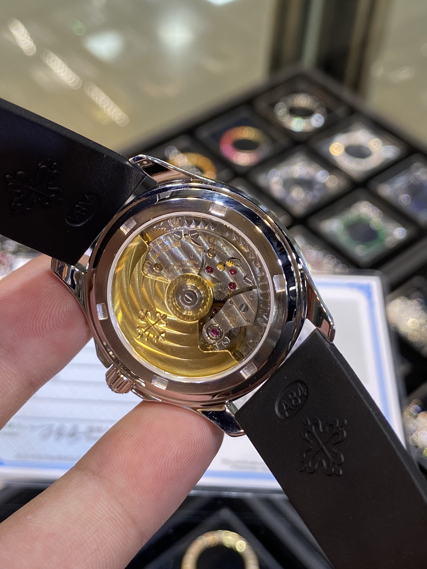 这款手表是AAAAA 1:1 质量 (非常棒). 使用了和原版一模一样的材料. 商标部分也保持了和百达翡丽/Patek Philippe一样. 图片拍摄是实物手表拍摄, 您所收到的实物保证和我们图片一模一样.