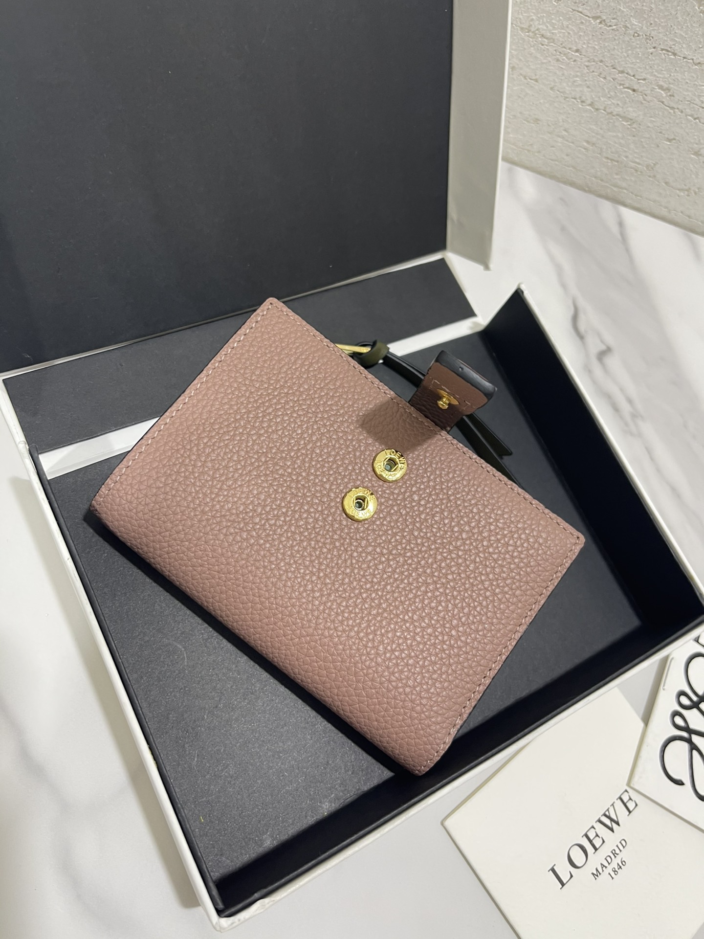 这款钱包是AAAAA 1:1 质量 (非常棒). 使用了和原版一模一样的材料. 商标部分也保持了和罗意威/Loewe一样. 图片拍摄是实物钱包拍摄, 您所收到的实物保证和我们图片一模一样.