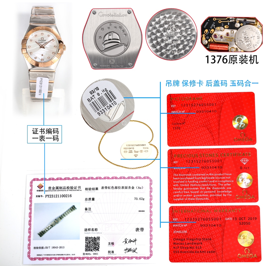 这款手表是AAAAA 1:1 质量 (非常棒). 使用了和原版一模一样的材料. 商标部分也保持了和欧米茄/Omega一样. 图片拍摄是实物手表拍摄, 您所收到的实物保证和我们图片一模一样.