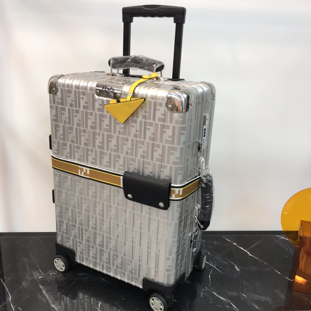 这款拉杆箱是AAAAA 1:1 质量 (非常棒). 使用了和原版一模一样的材料. 商标部分也保持了和芬迪/Fendi一样. 图片拍摄是实物拉杆箱拍摄, 您所收到的实物保证和我们图片一模一样.