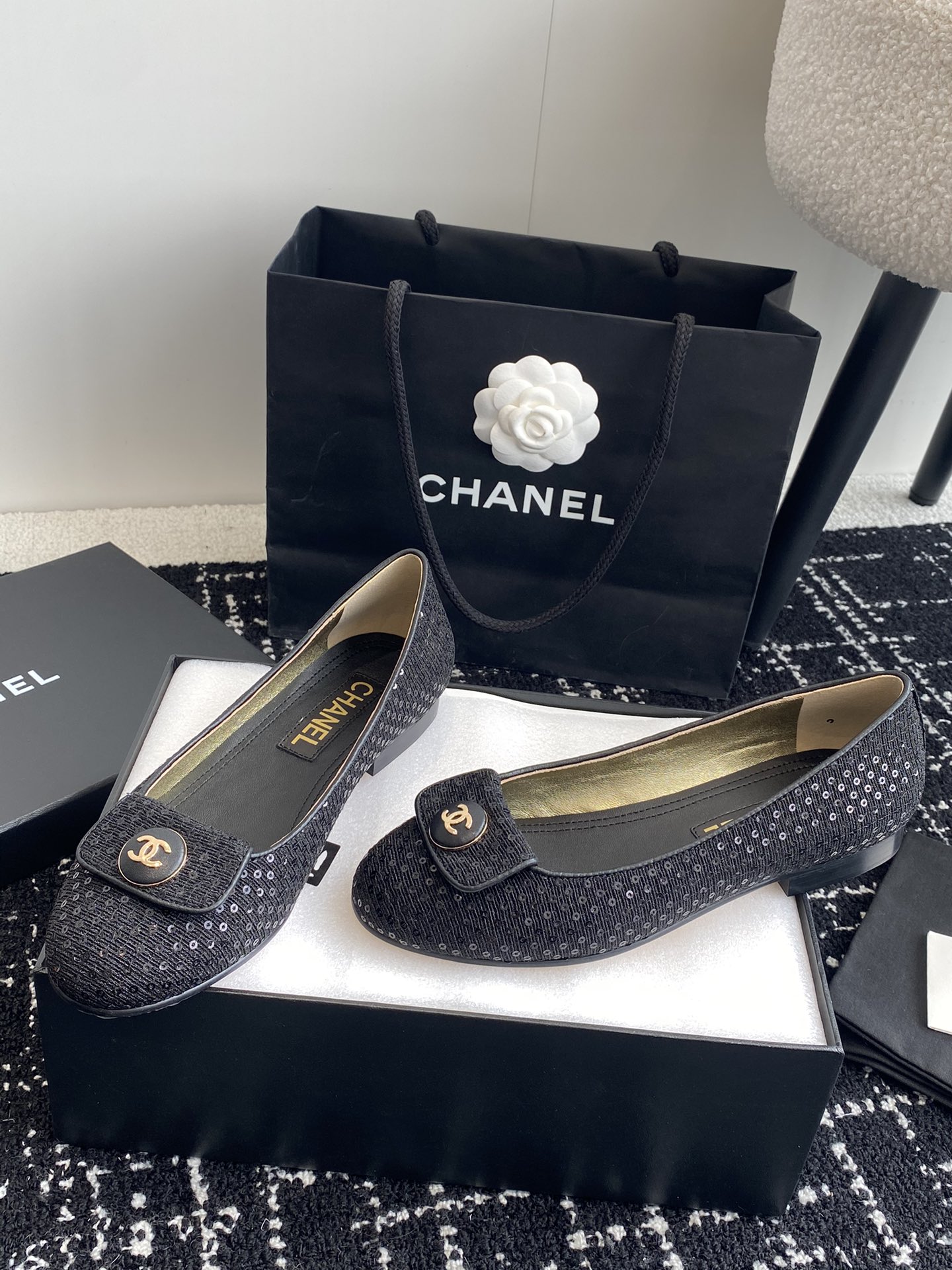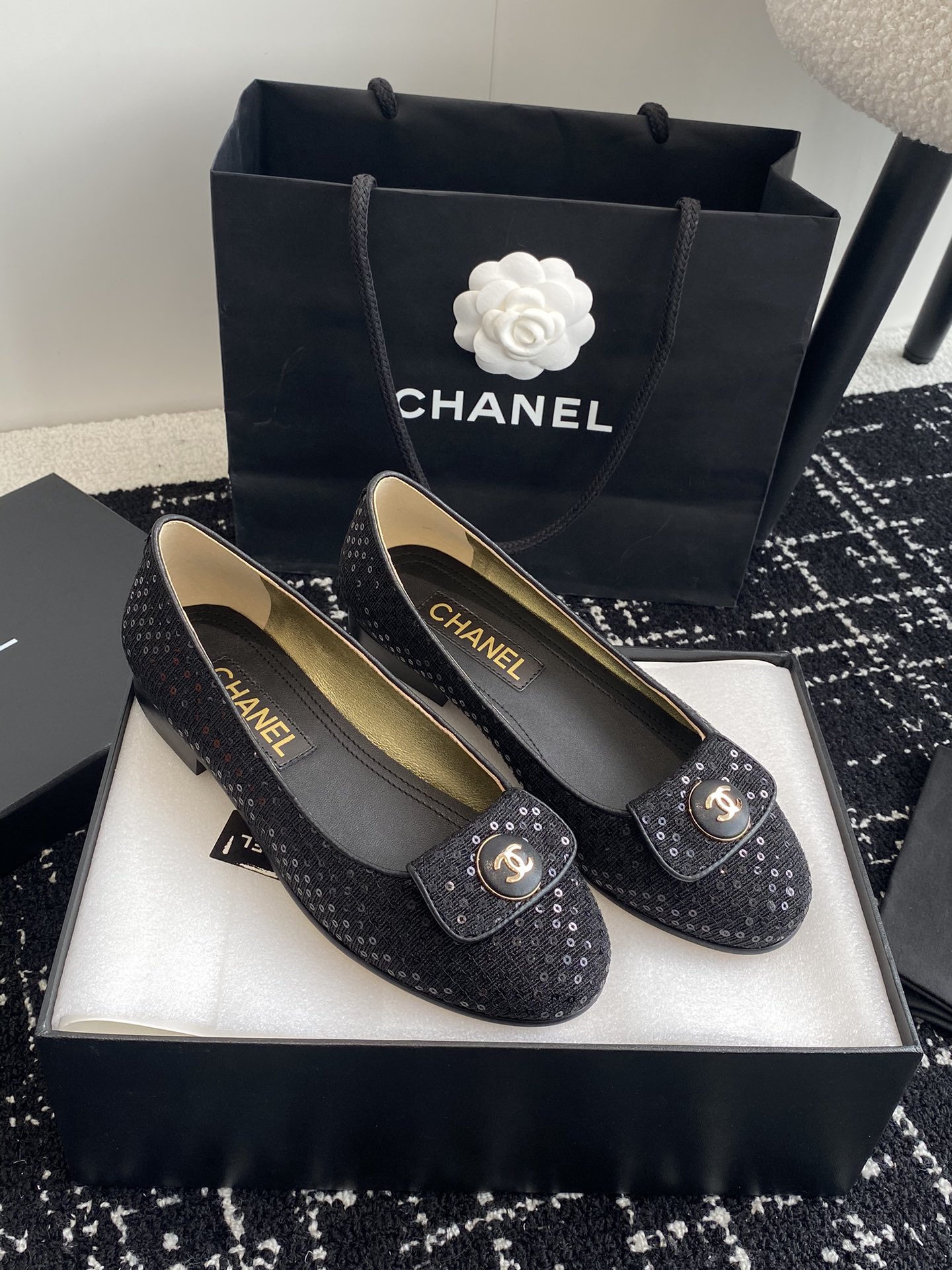 这款鞋子是AAAAA 1:1 质量 (非常棒). 使用了和原版一模一样的材料. 商标部分也保持了和香奈儿/Chanel一样. 图片拍摄是实物鞋子拍摄, 您所收到的实物保证和我们图片一模一样.