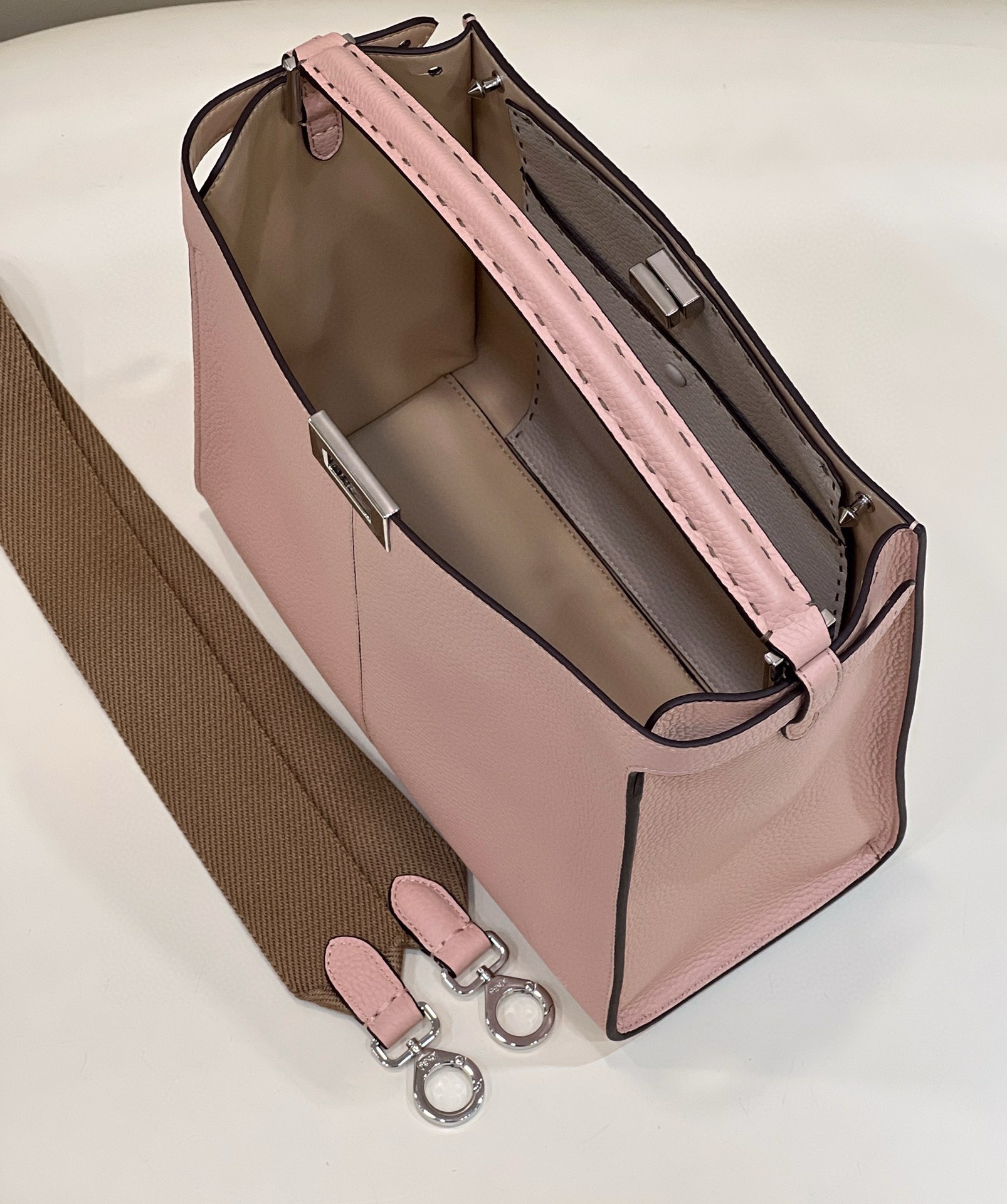 这款包包是AAAAA 1:1 质量 (非常棒). 使用了和原版一模一样的材料. 商标部分也保持了和芬迪/Fendi一样. 图片拍摄是实物包包拍摄, 您所收到的实物保证和我们图片一模一样.