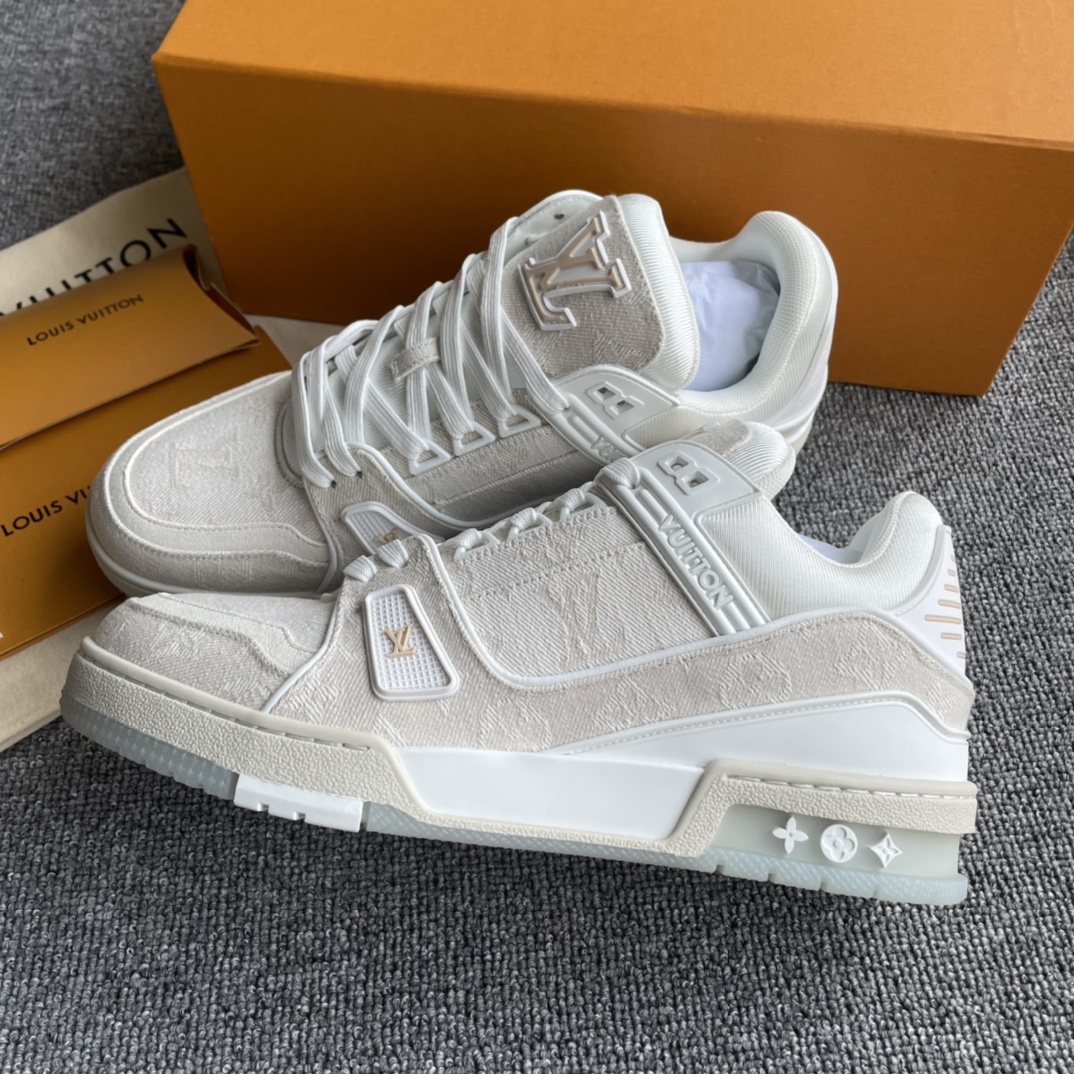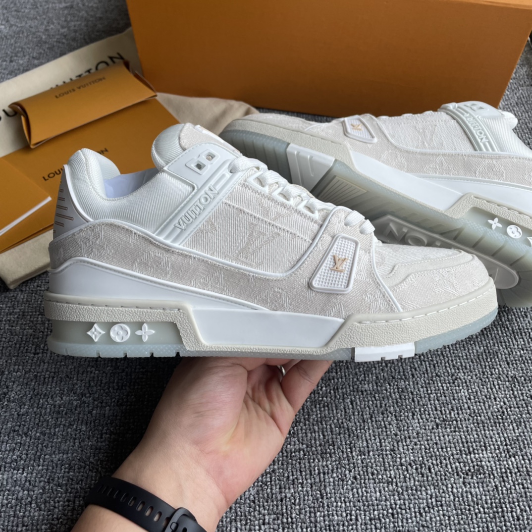 这款鞋子是AAAAA 1:1 质量 (非常棒). 使用了和原版一模一样的材料. 商标部分也保持了和路易威登/Louis Vuitton一样. 图片拍摄是实物鞋子拍摄, 您所收到的实物保证和我们图片一模一样.