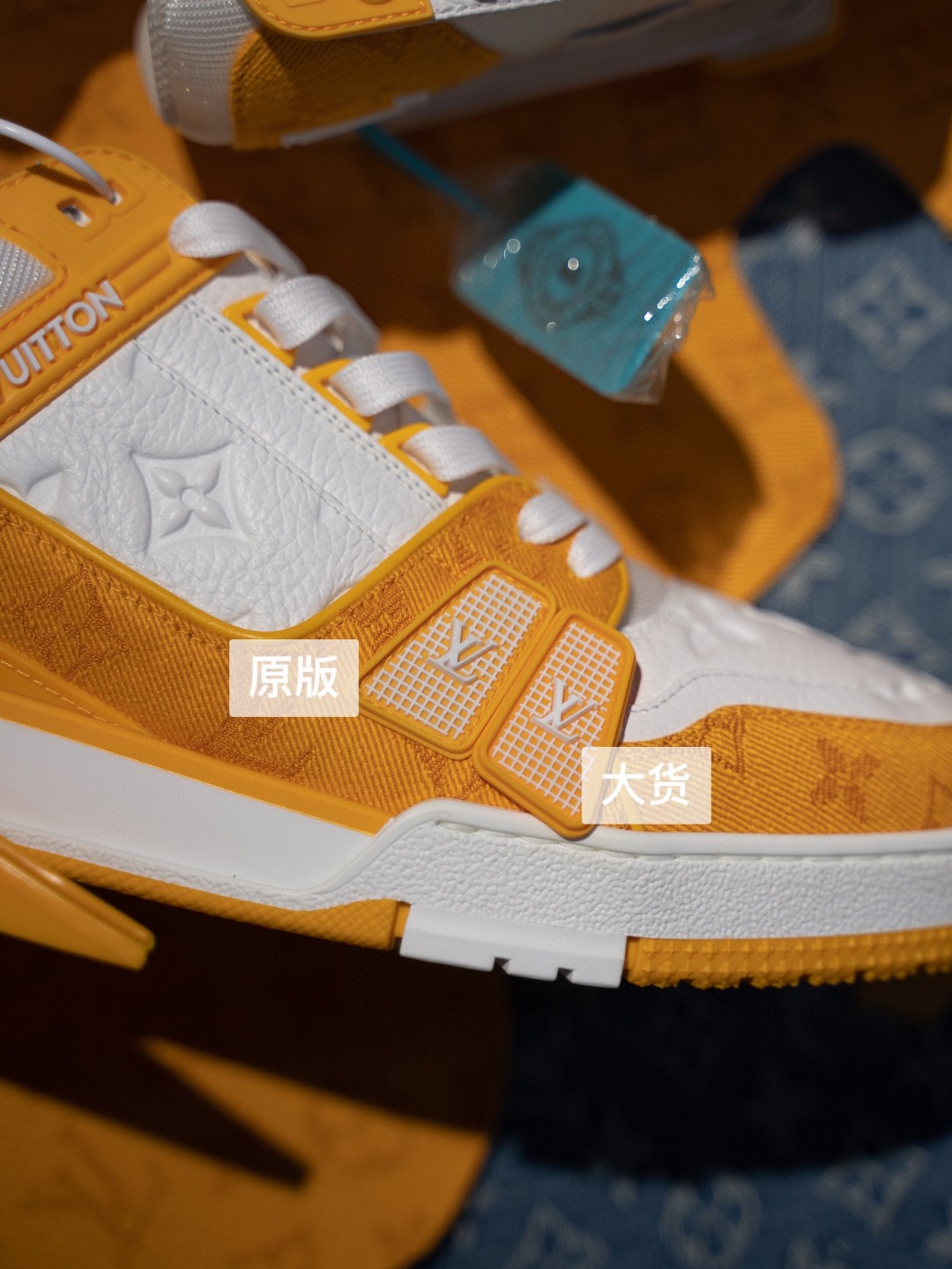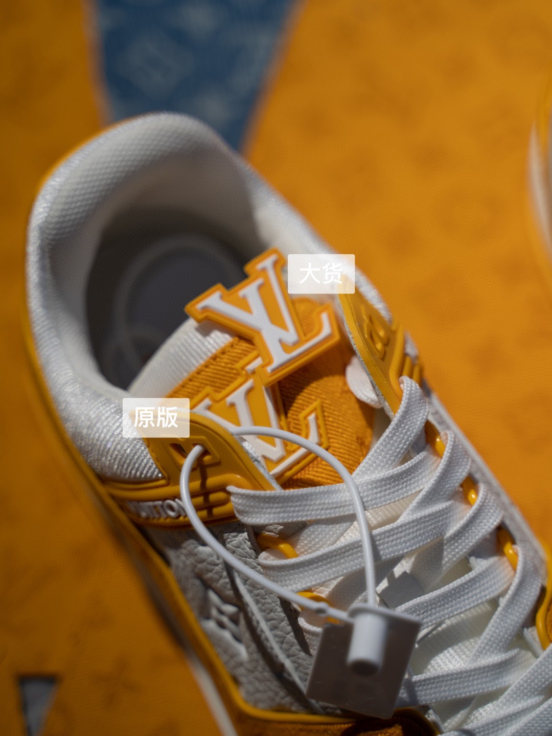 这款鞋子是AAAAA 1:1 质量 (非常棒). 使用了和原版一模一样的材料. 商标部分也保持了和路易威登/Louis Vuitton一样. 图片拍摄是实物鞋子拍摄, 您所收到的实物保证和我们图片一模一样.