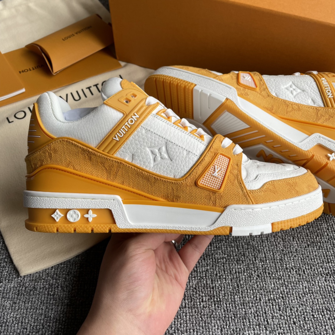 这款鞋子是AAAAA 1:1 质量 (非常棒). 使用了和原版一模一样的材料. 商标部分也保持了和路易威登/Louis Vuitton一样. 图片拍摄是实物鞋子拍摄, 您所收到的实物保证和我们图片一模一样.