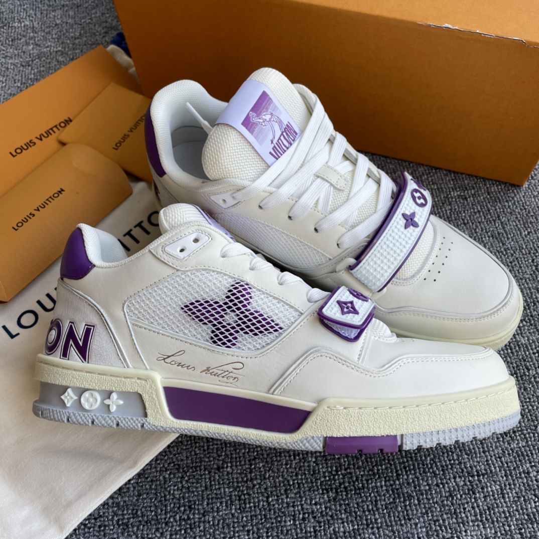 这款鞋子是AAAAA 1:1 质量 (非常棒). 使用了和原版一模一样的材料. 商标部分也保持了和路易威登/Louis Vuitton一样. 图片拍摄是实物鞋子拍摄, 您所收到的实物保证和我们图片一模一样.