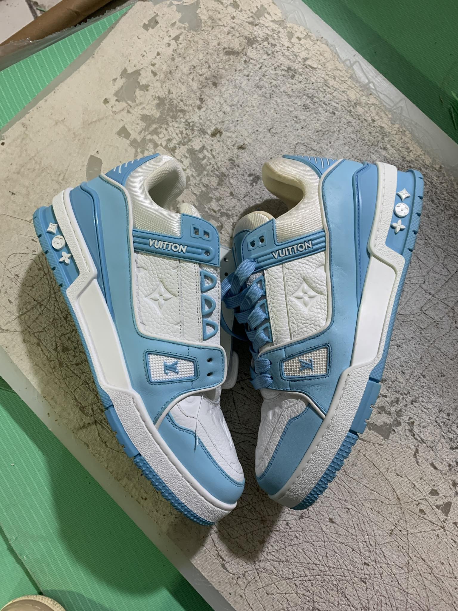 这款鞋子是AAAAA 1:1 质量 (非常棒). 使用了和原版一模一样的材料. 商标部分也保持了和路易威登/Louis Vuitton一样. 图片拍摄是实物鞋子拍摄, 您所收到的实物保证和我们图片一模一样.