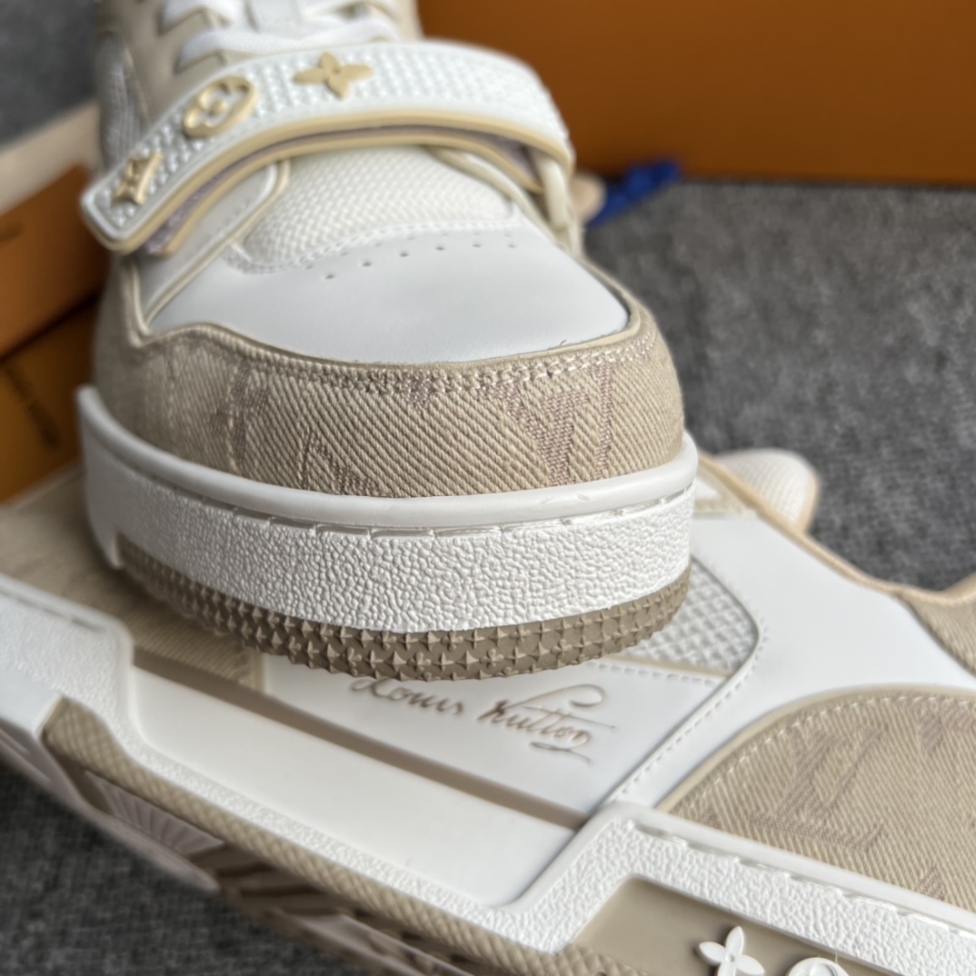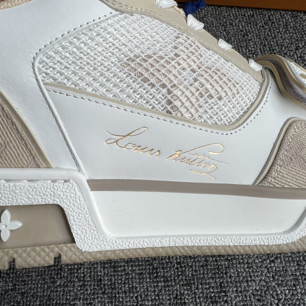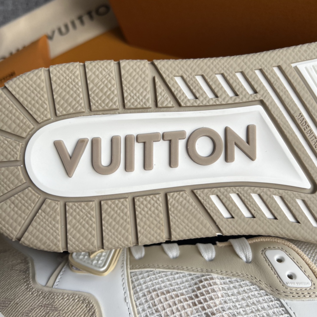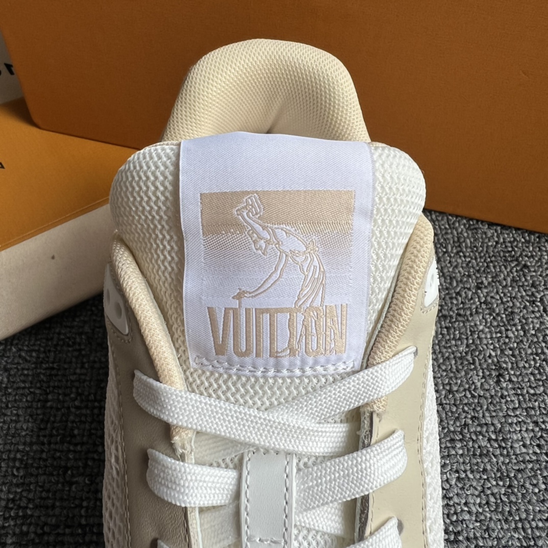 这款鞋子是AAAAA 1:1 质量 (非常棒). 使用了和原版一模一样的材料. 商标部分也保持了和路易威登/Louis Vuitton一样. 图片拍摄是实物鞋子拍摄, 您所收到的实物保证和我们图片一模一样.
