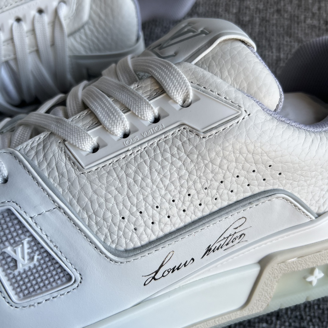 这款鞋子是AAAAA 1:1 质量 (非常棒). 使用了和原版一模一样的材料. 商标部分也保持了和路易威登/Louis Vuitton一样. 图片拍摄是实物鞋子拍摄, 您所收到的实物保证和我们图片一模一样.