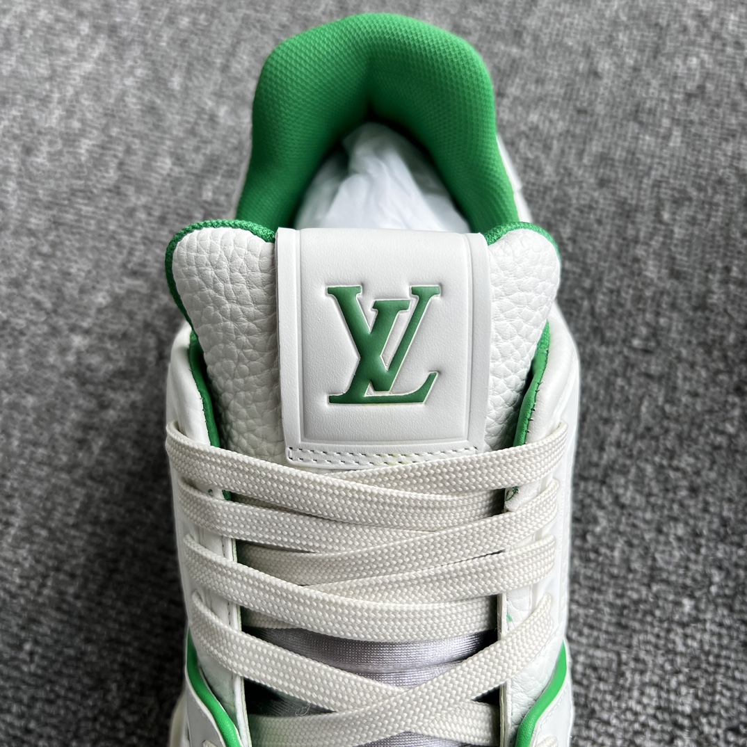 这款鞋子是AAAAA 1:1 质量 (非常棒). 使用了和原版一模一样的材料. 商标部分也保持了和路易威登/Louis Vuitton一样. 图片拍摄是实物鞋子拍摄, 您所收到的实物保证和我们图片一模一样.