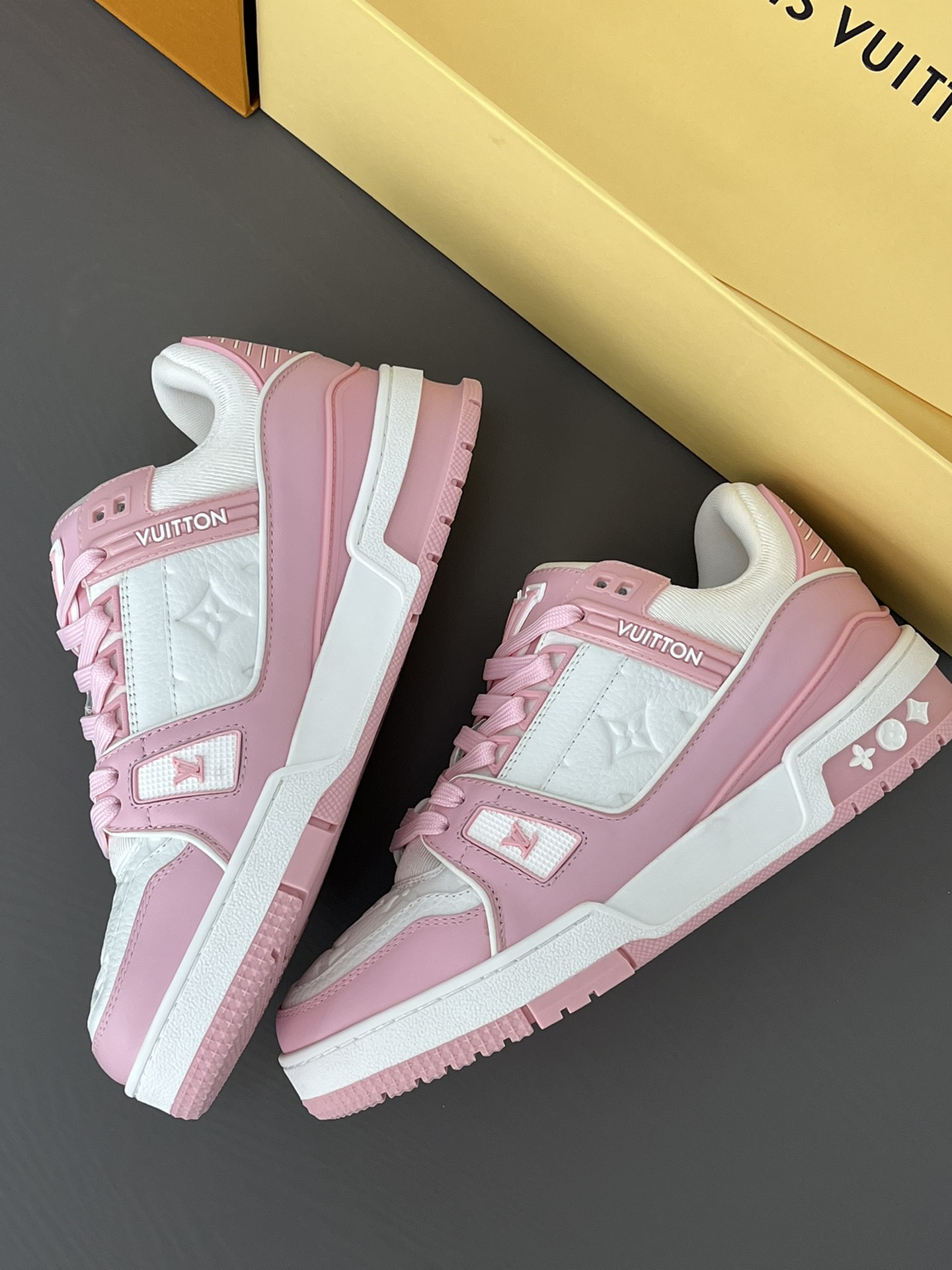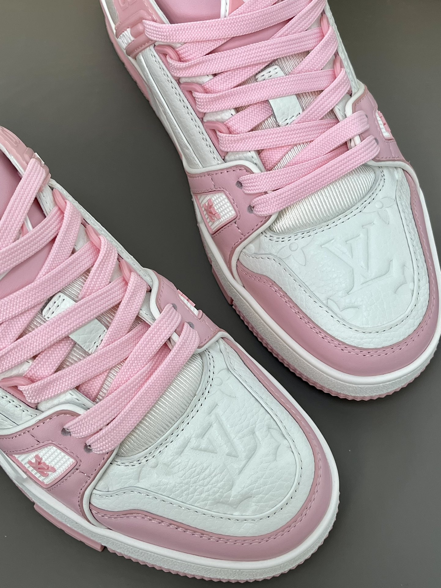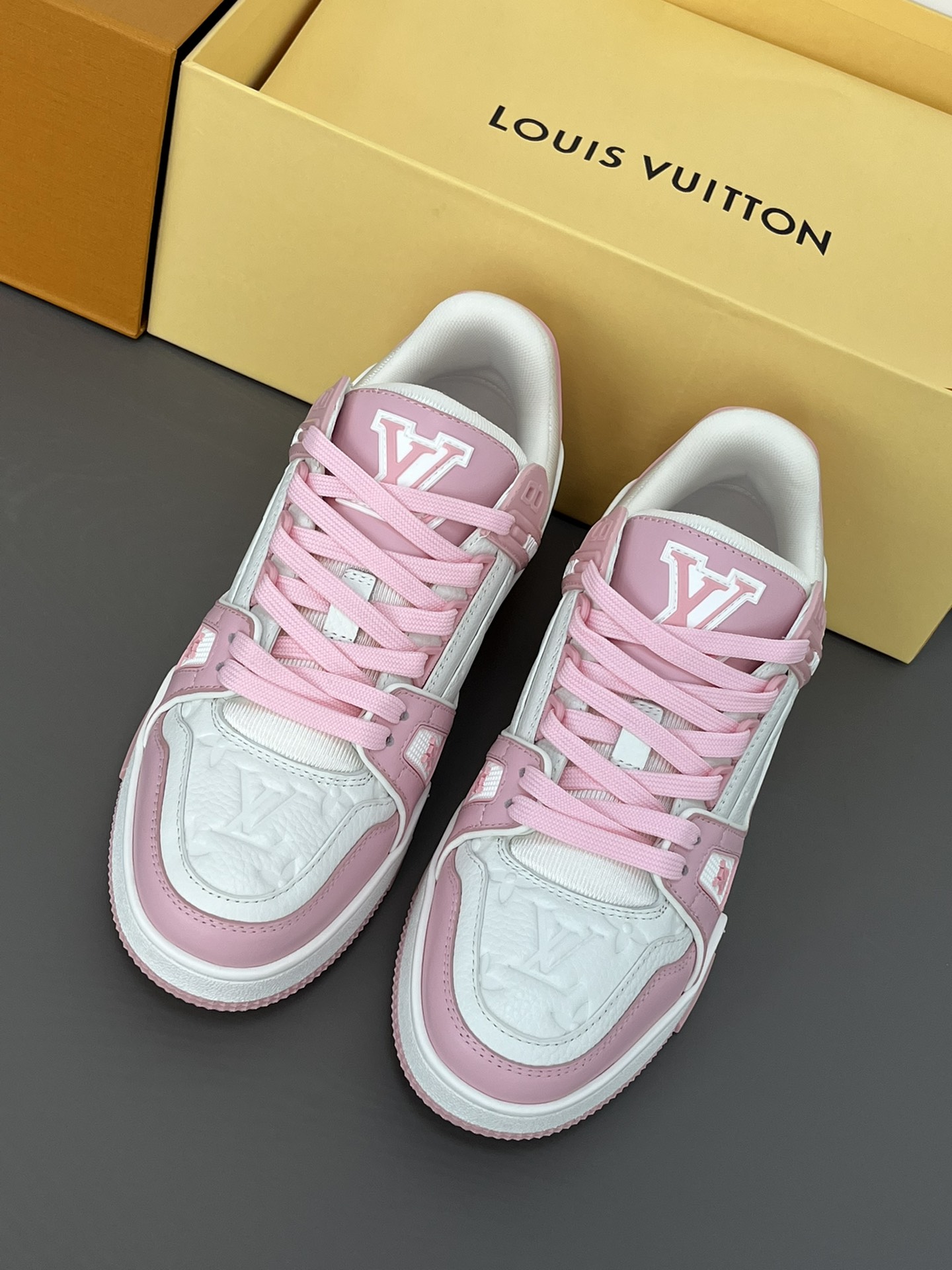 这款鞋子是AAAAA 1:1 质量 (非常棒). 使用了和原版一模一样的材料. 商标部分也保持了和路易威登/Louis Vuitton一样. 图片拍摄是实物鞋子拍摄, 您所收到的实物保证和我们图片一模一样.