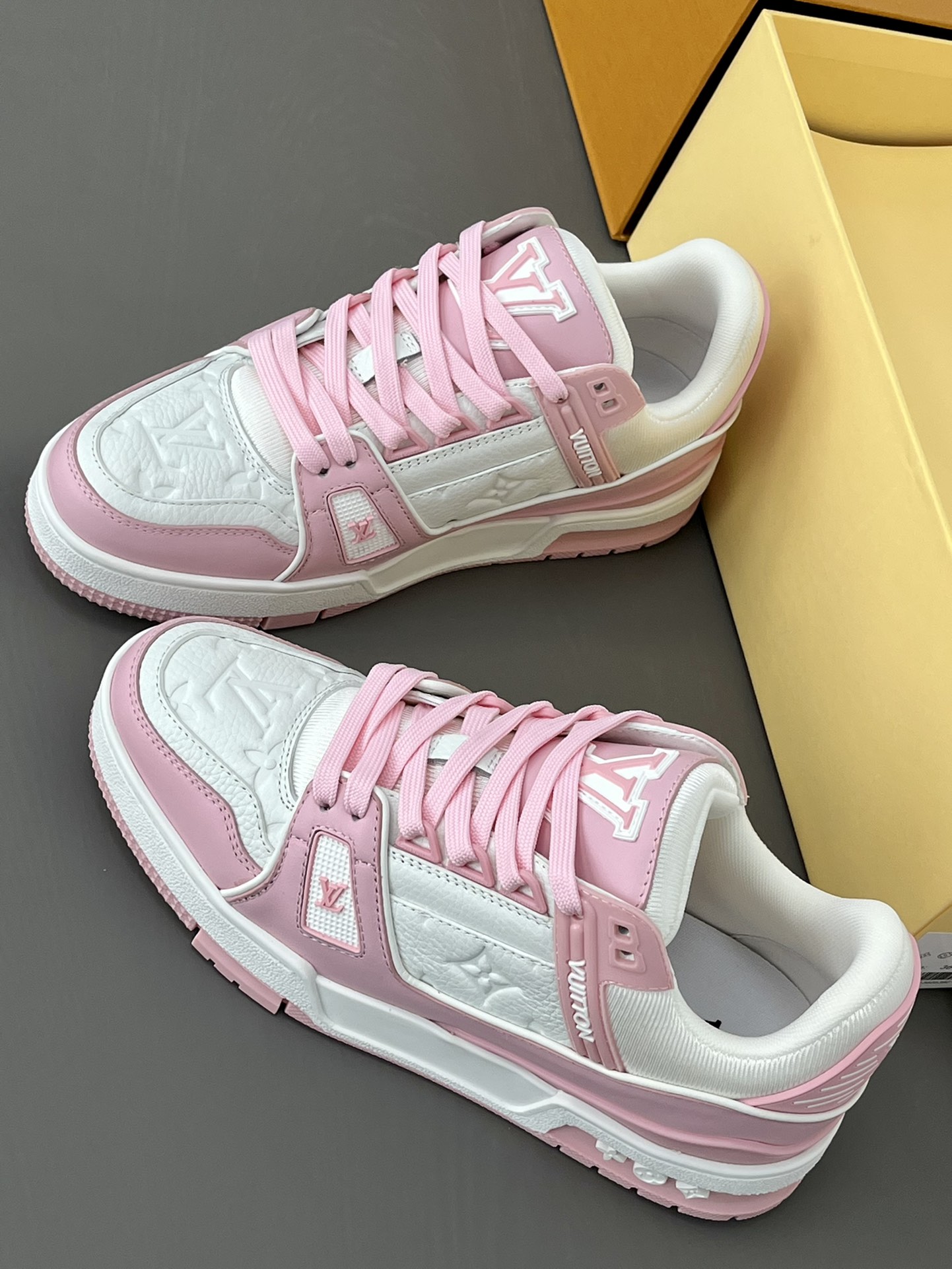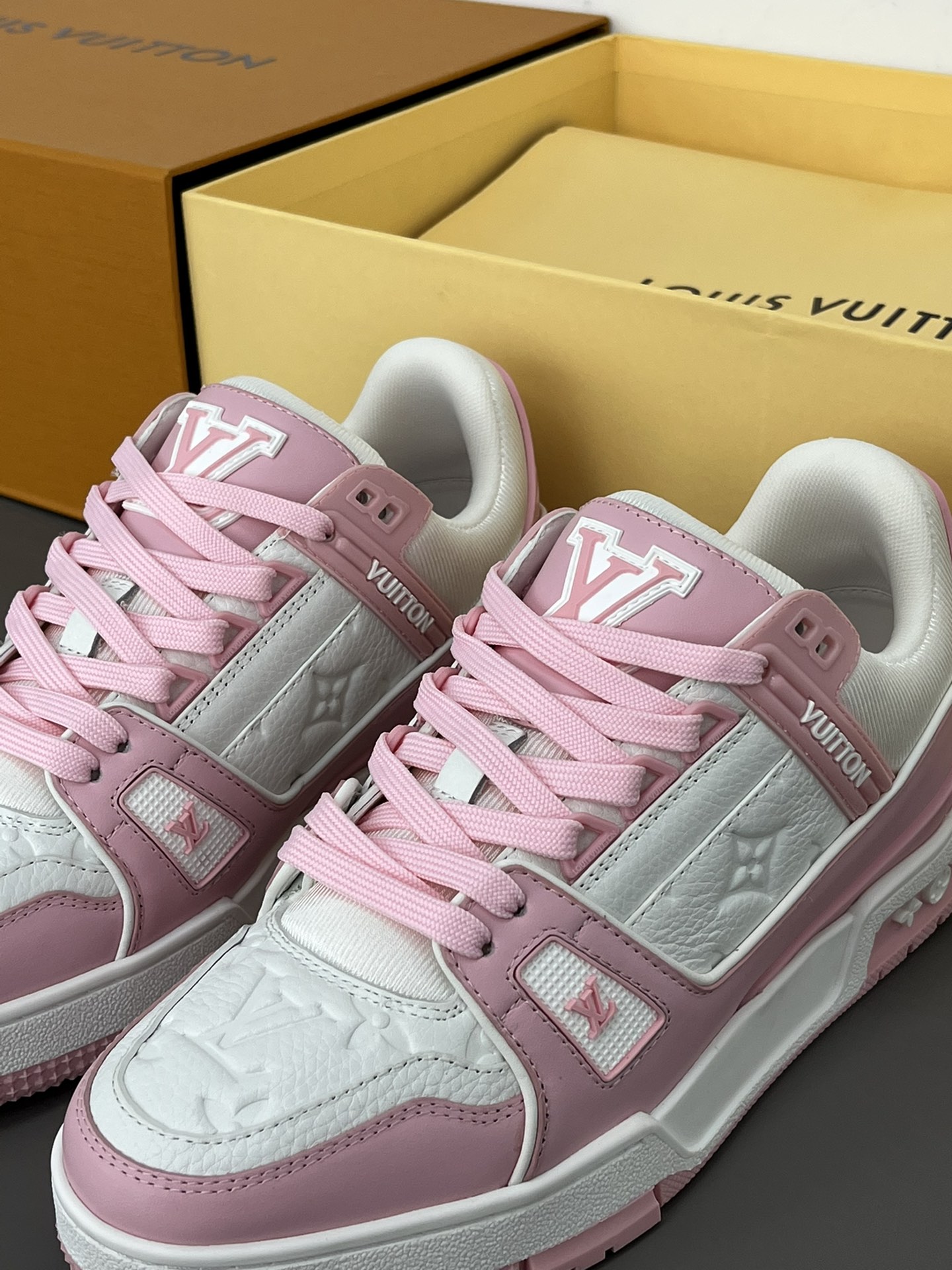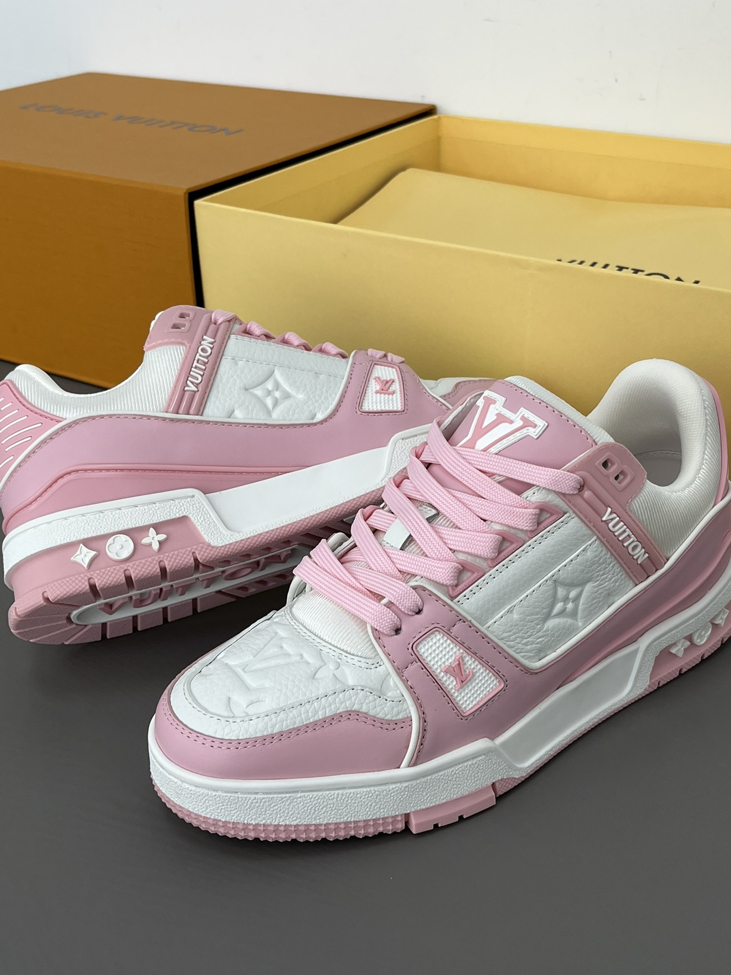这款鞋子是AAAAA 1:1 质量 (非常棒). 使用了和原版一模一样的材料. 商标部分也保持了和路易威登/Louis Vuitton一样. 图片拍摄是实物鞋子拍摄, 您所收到的实物保证和我们图片一模一样.