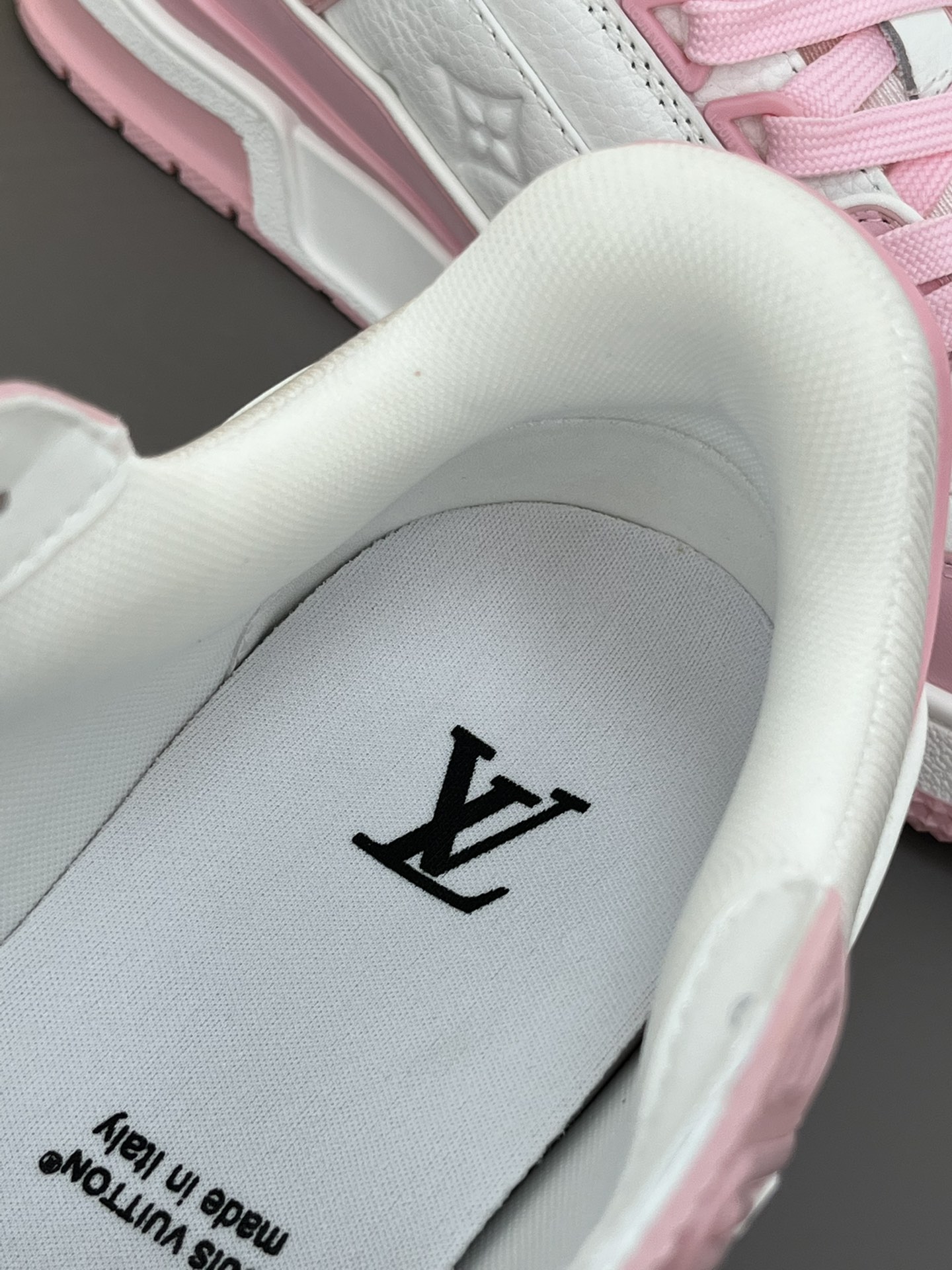 这款鞋子是AAAAA 1:1 质量 (非常棒). 使用了和原版一模一样的材料. 商标部分也保持了和路易威登/Louis Vuitton一样. 图片拍摄是实物鞋子拍摄, 您所收到的实物保证和我们图片一模一样.