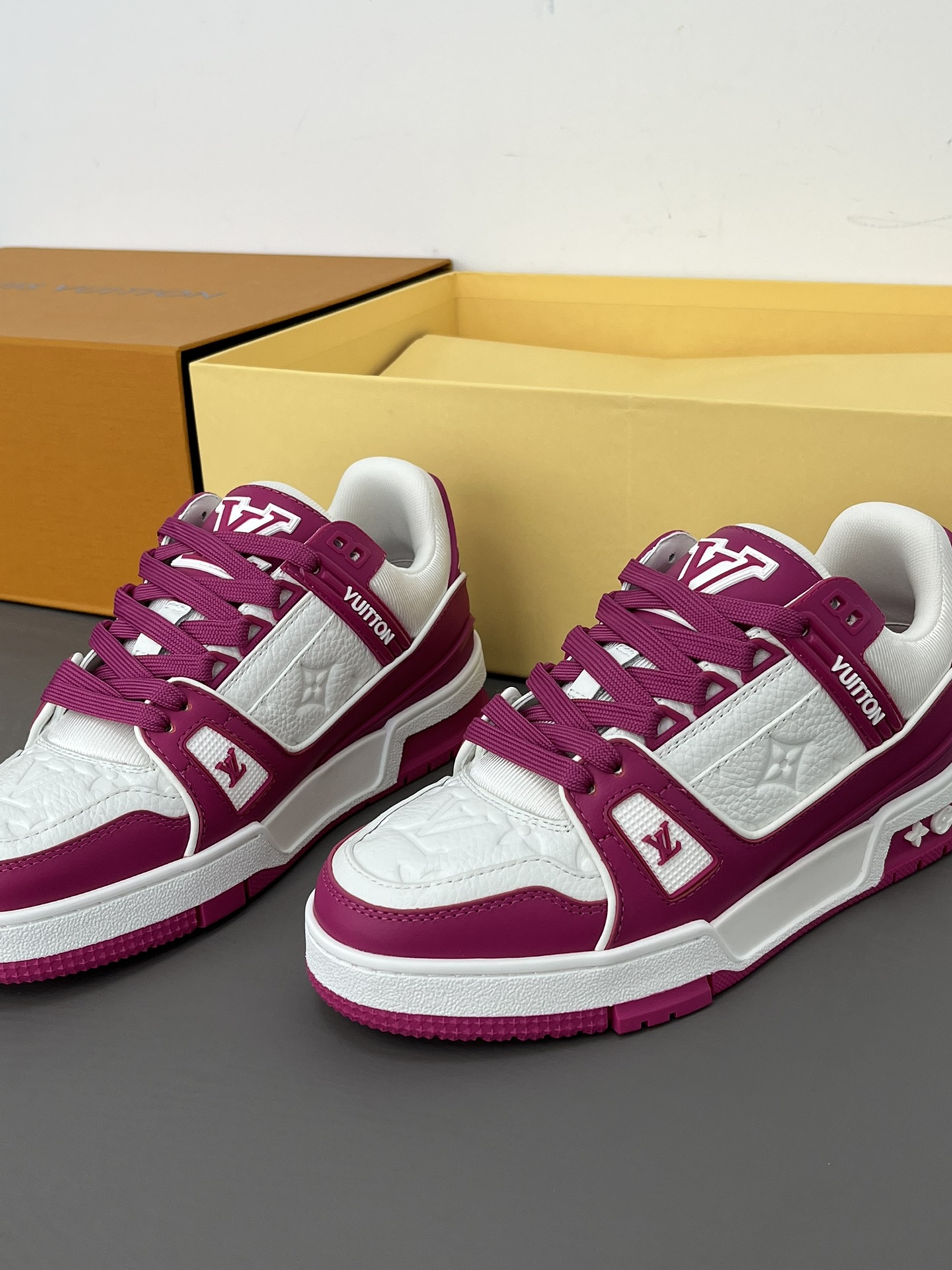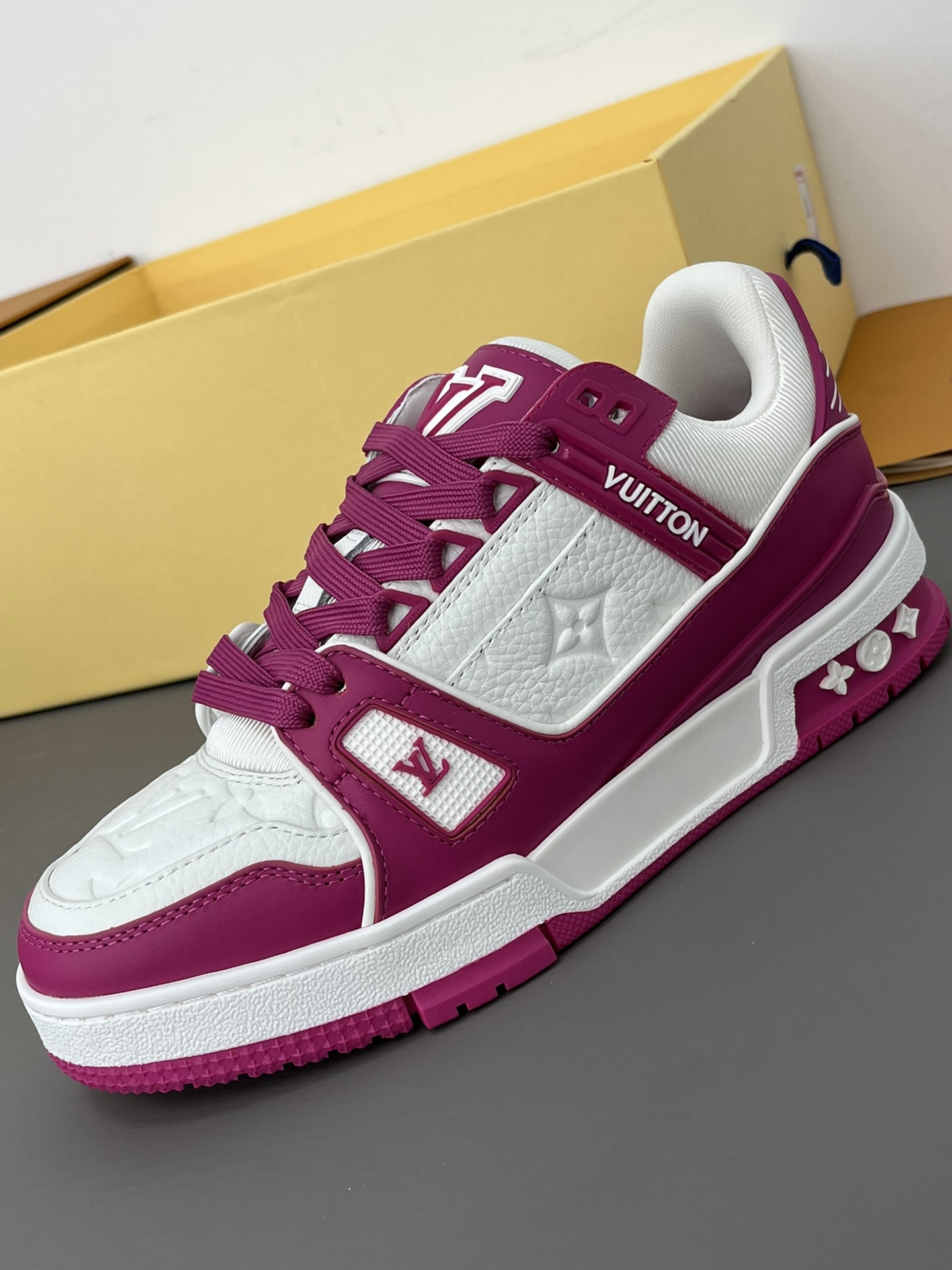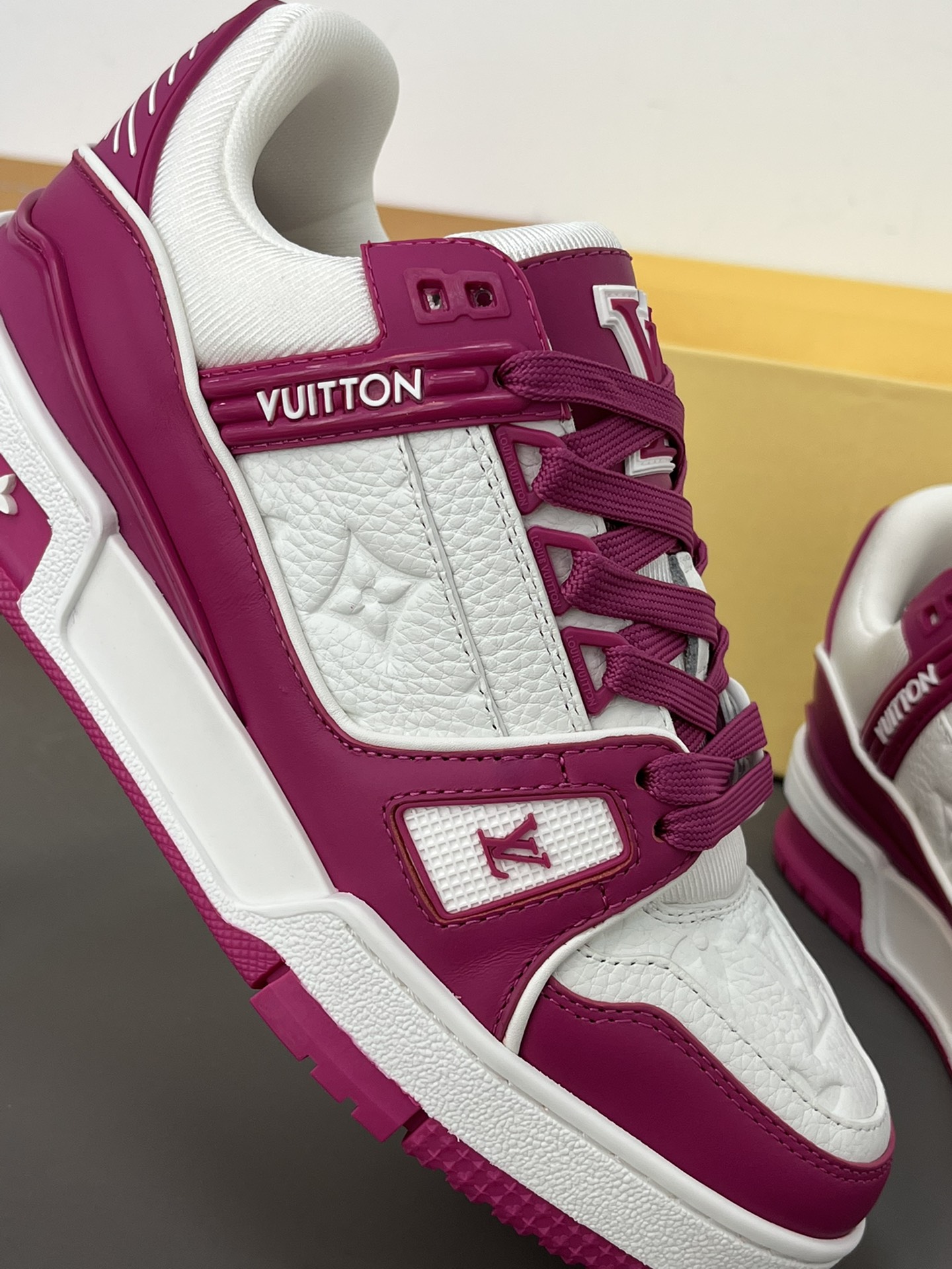这款鞋子是AAAAA 1:1 质量 (非常棒). 使用了和原版一模一样的材料. 商标部分也保持了和路易威登/Louis Vuitton一样. 图片拍摄是实物鞋子拍摄, 您所收到的实物保证和我们图片一模一样.