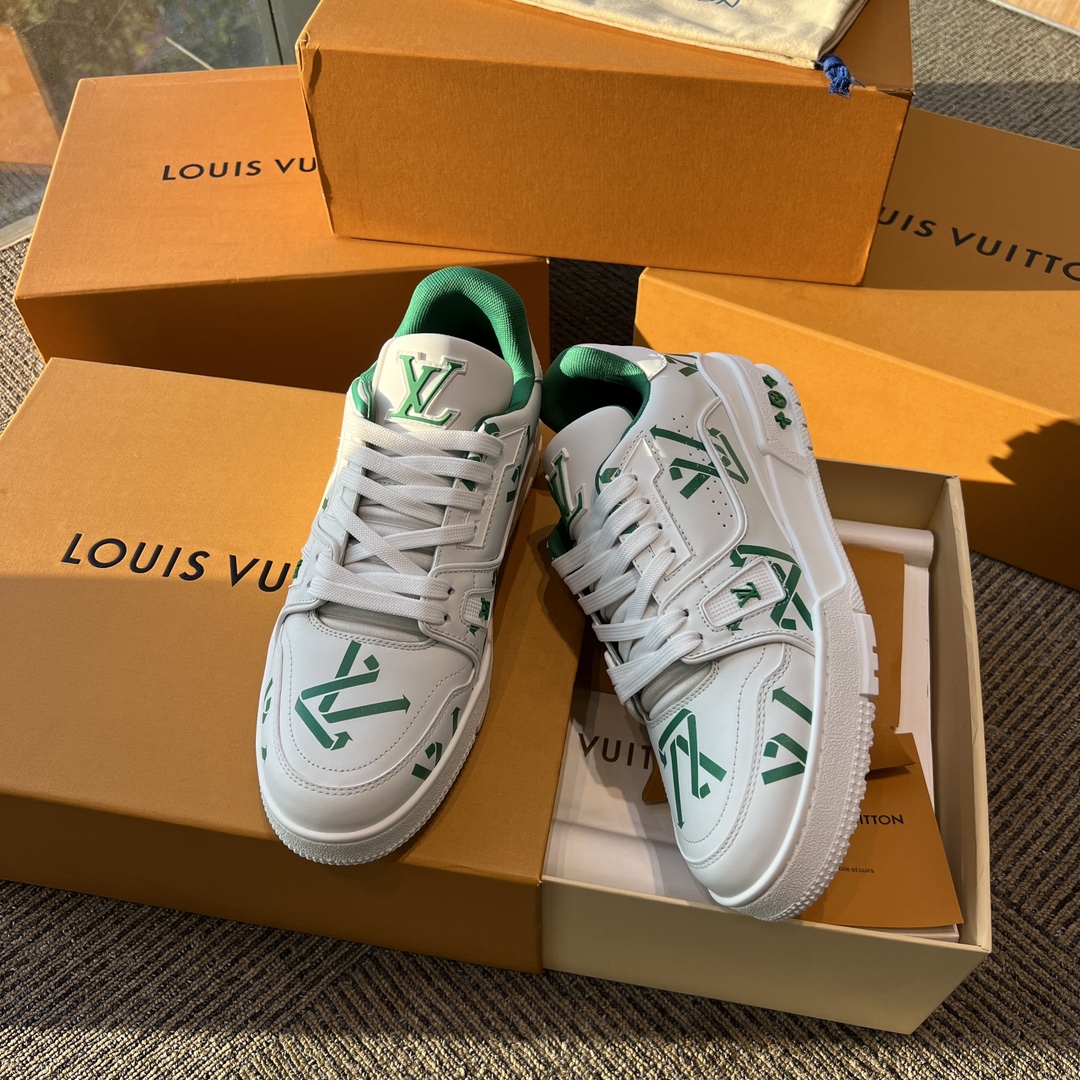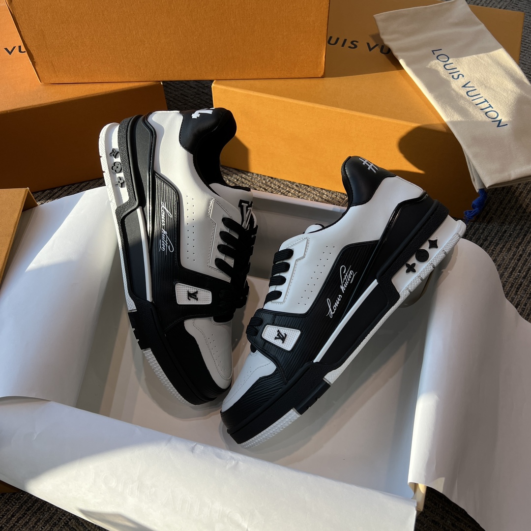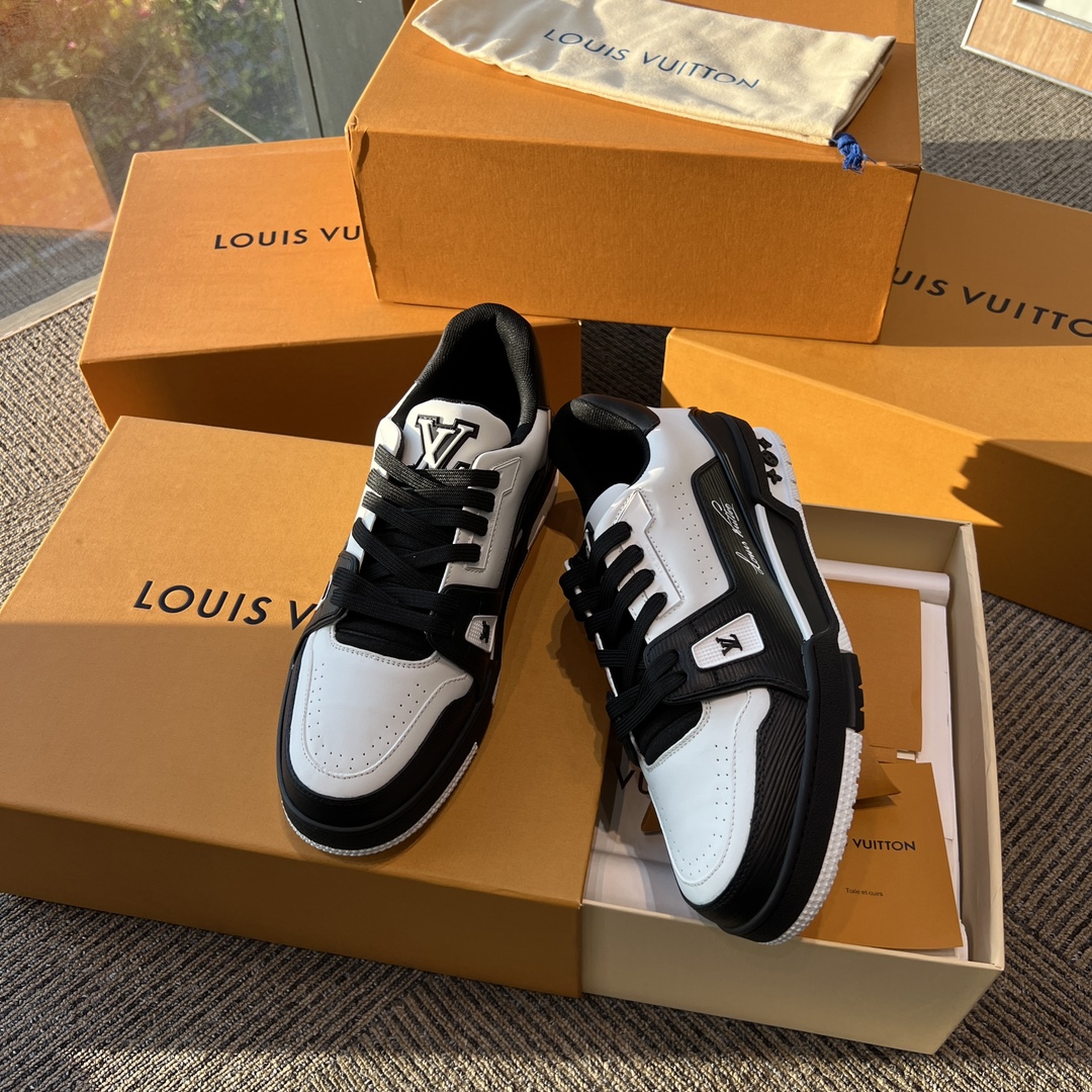 这款鞋子是AAAAA 1:1 质量 (非常棒). 使用了和原版一模一样的材料. 商标部分也保持了和路易威登/Louis Vuitton一样. 图片拍摄是实物鞋子拍摄, 您所收到的实物保证和我们图片一模一样.