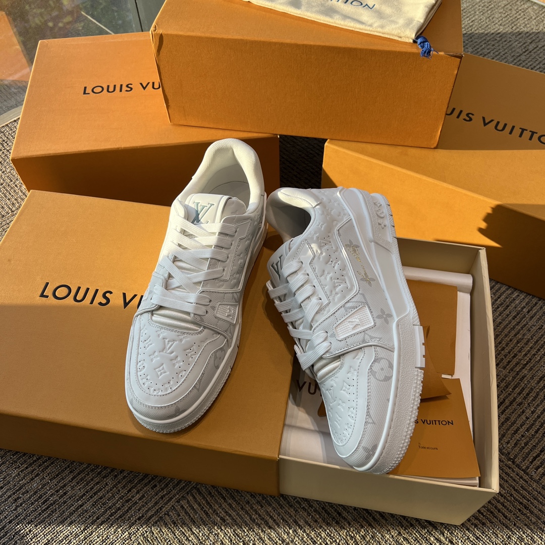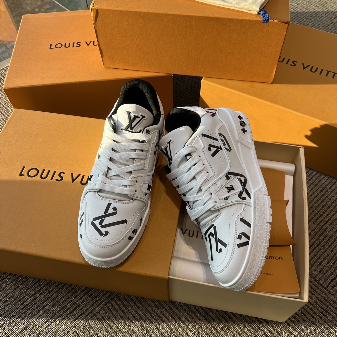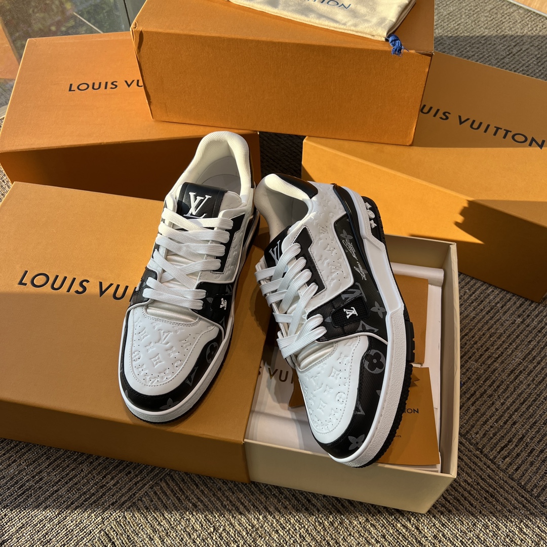 这款鞋子是AAAAA 1:1 质量 (非常棒). 使用了和原版一模一样的材料. 商标部分也保持了和路易威登/Louis Vuitton一样. 图片拍摄是实物鞋子拍摄, 您所收到的实物保证和我们图片一模一样.