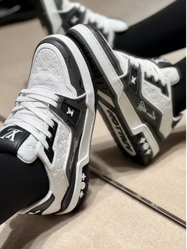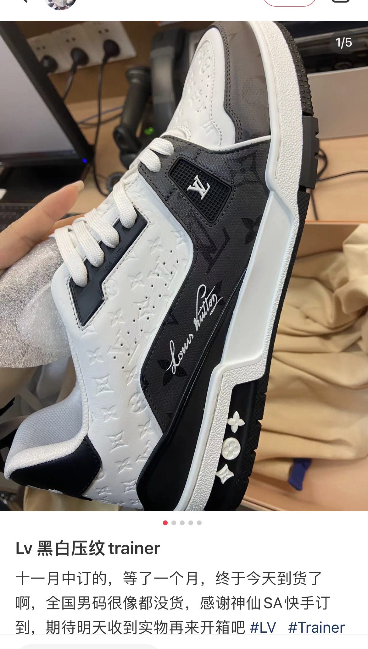 这款鞋子是AAAAA 1:1 质量 (非常棒). 使用了和原版一模一样的材料. 商标部分也保持了和路易威登/Louis Vuitton一样. 图片拍摄是实物鞋子拍摄, 您所收到的实物保证和我们图片一模一样.