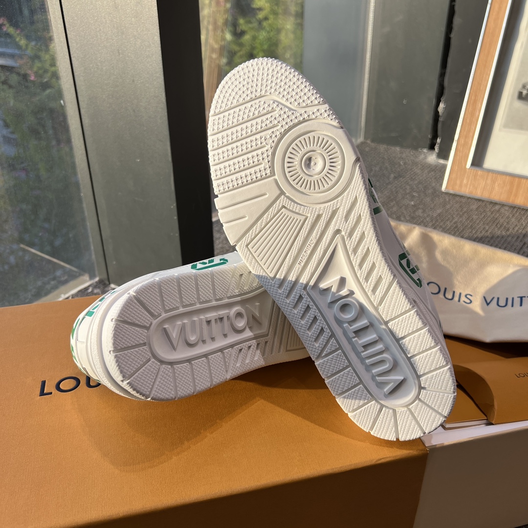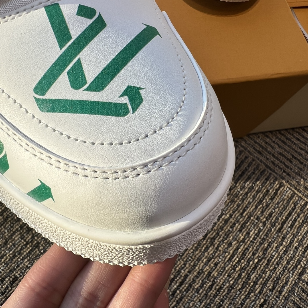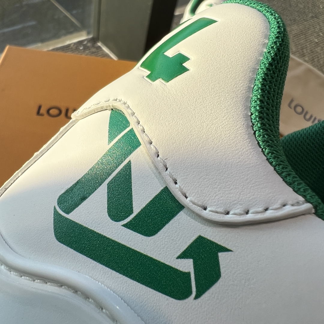 这款鞋子是AAAAA 1:1 质量 (非常棒). 使用了和原版一模一样的材料. 商标部分也保持了和路易威登/Louis Vuitton一样. 图片拍摄是实物鞋子拍摄, 您所收到的实物保证和我们图片一模一样.
