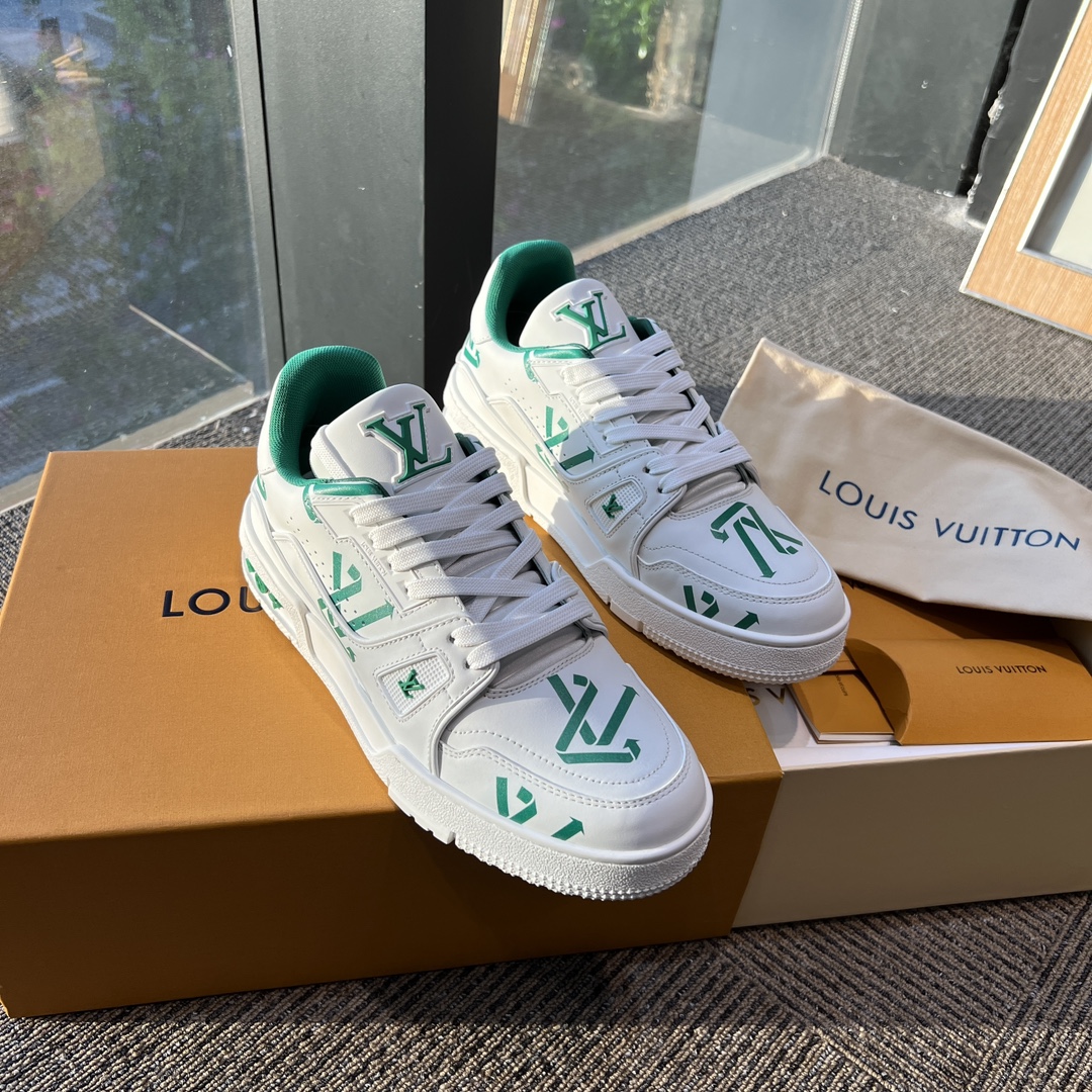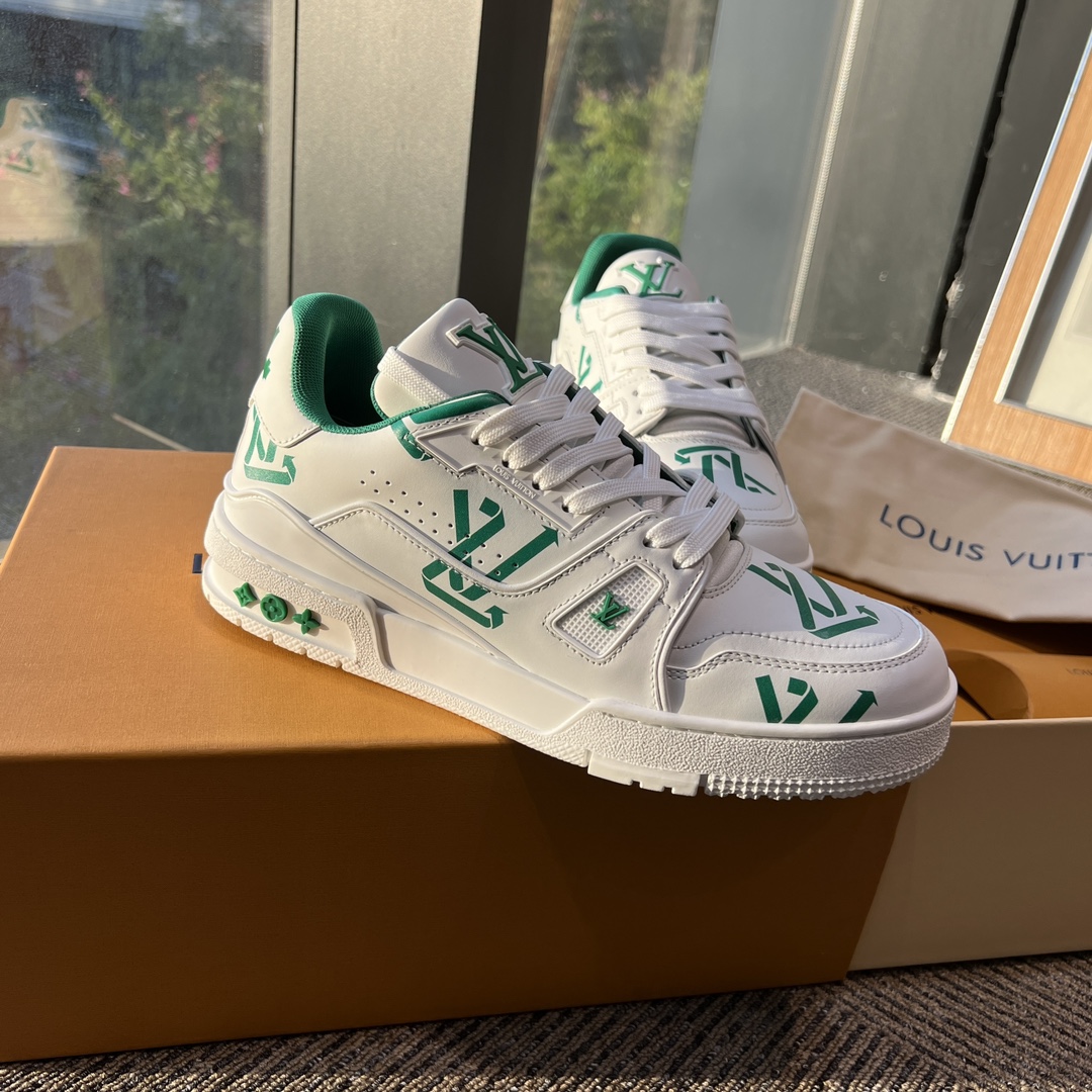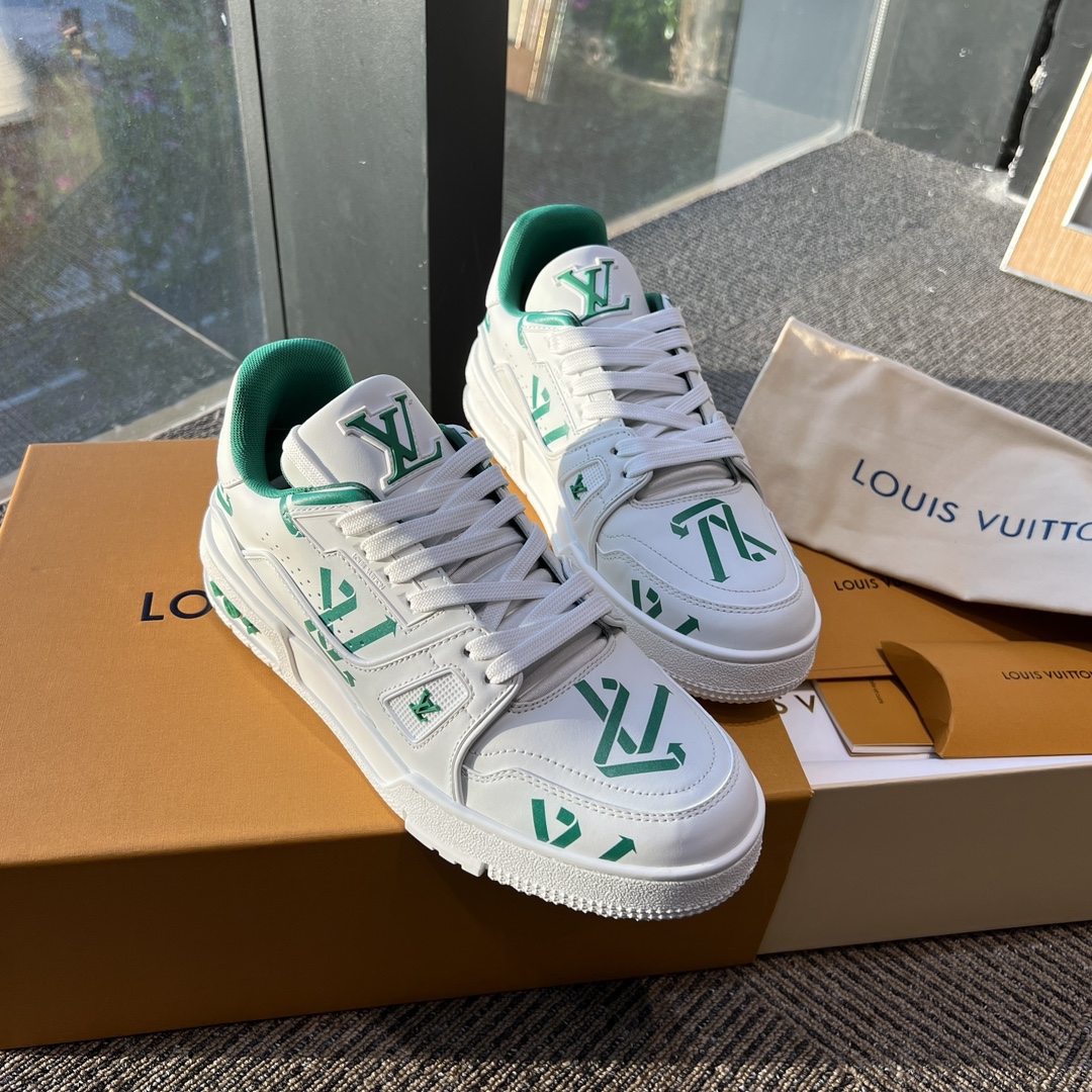 这款鞋子是AAAAA 1:1 质量 (非常棒). 使用了和原版一模一样的材料. 商标部分也保持了和路易威登/Louis Vuitton一样. 图片拍摄是实物鞋子拍摄, 您所收到的实物保证和我们图片一模一样.