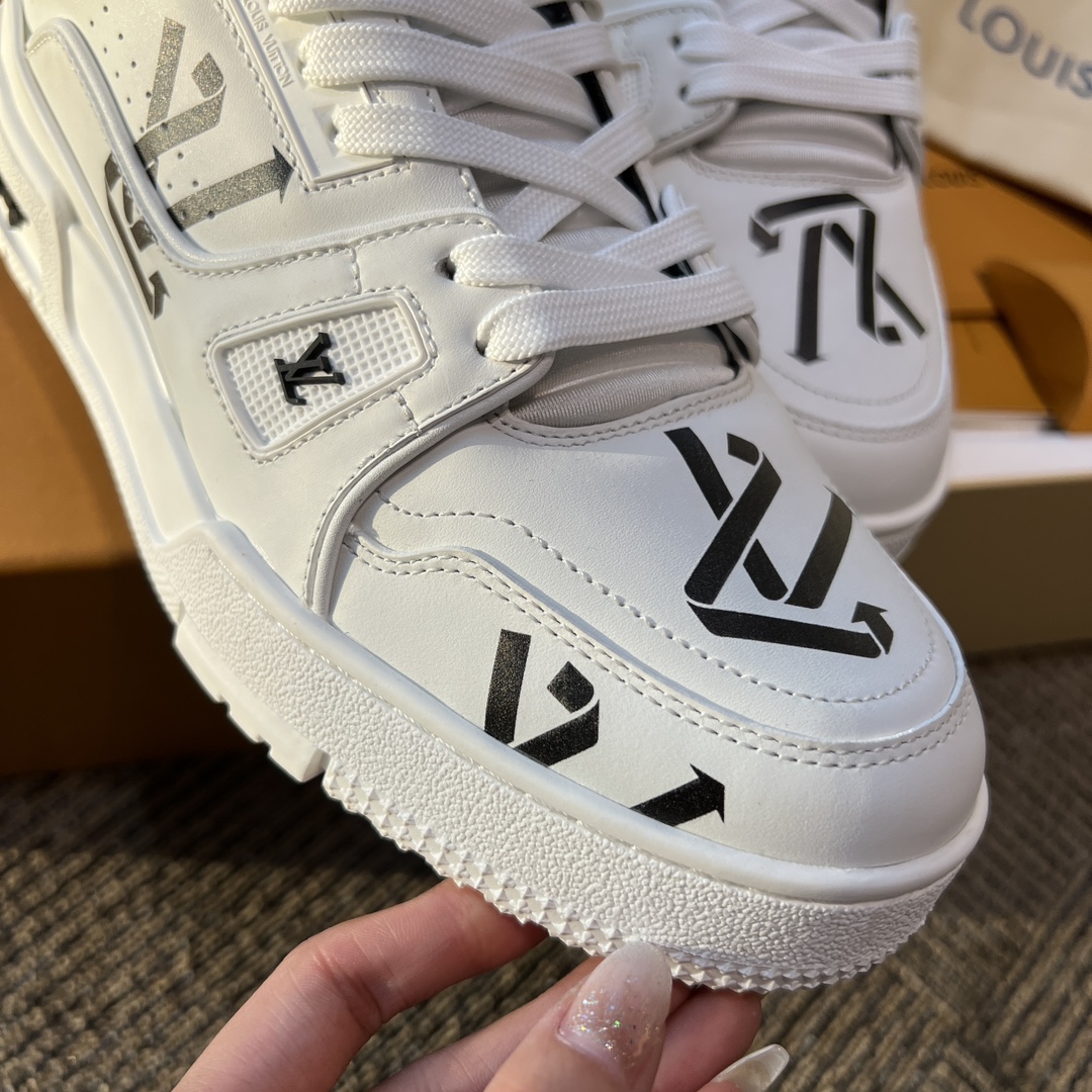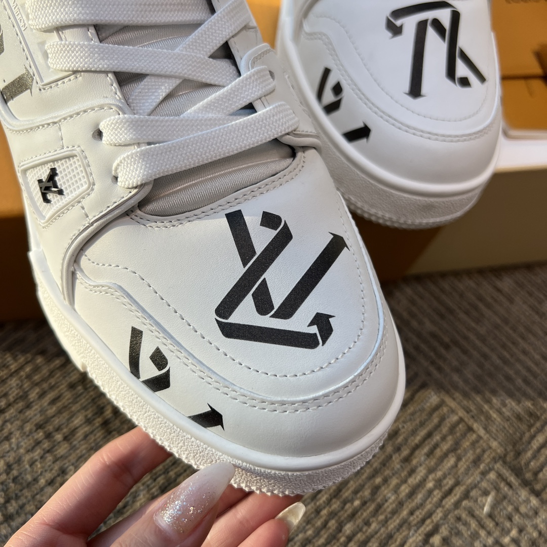 这款鞋子是AAAAA 1:1 质量 (非常棒). 使用了和原版一模一样的材料. 商标部分也保持了和路易威登/Louis Vuitton一样. 图片拍摄是实物鞋子拍摄, 您所收到的实物保证和我们图片一模一样.
