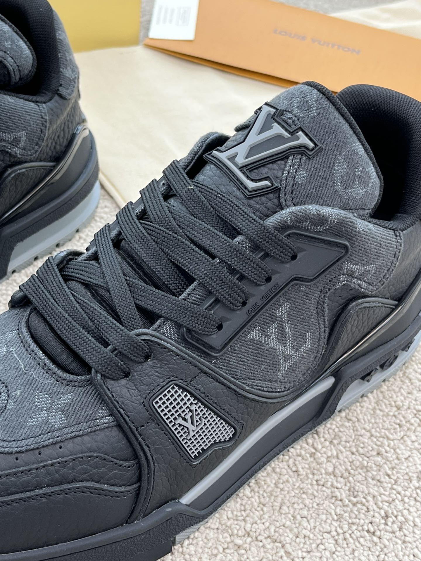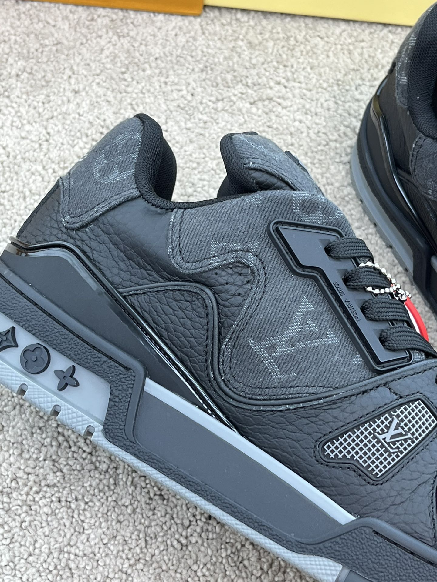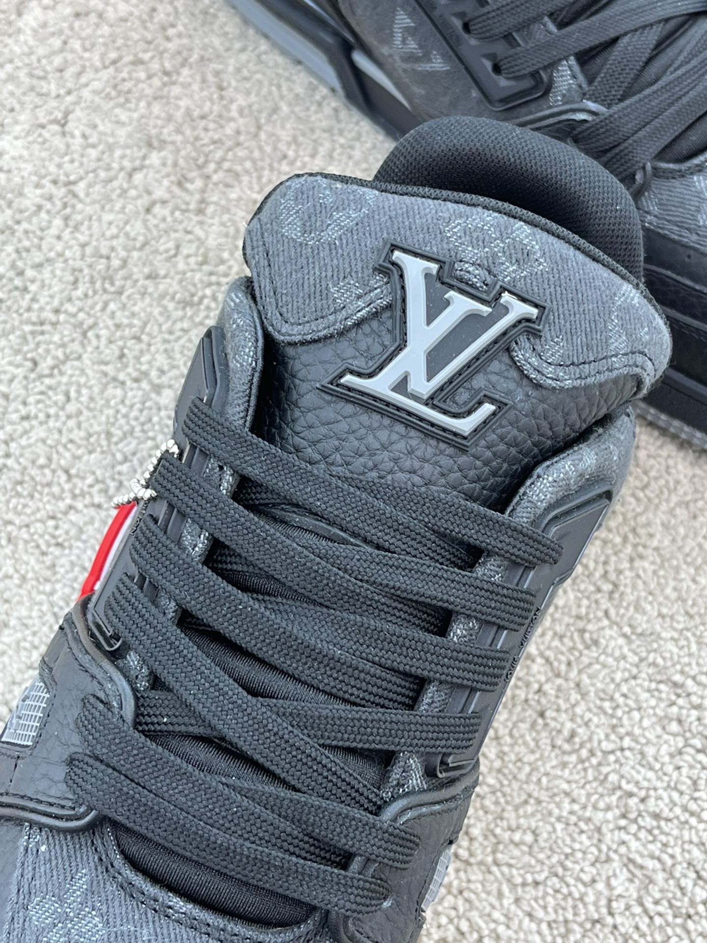 这款鞋子是AAAAA 1:1 质量 (非常棒). 使用了和原版一模一样的材料. 商标部分也保持了和路易威登/Louis Vuitton一样. 图片拍摄是实物鞋子拍摄, 您所收到的实物保证和我们图片一模一样.