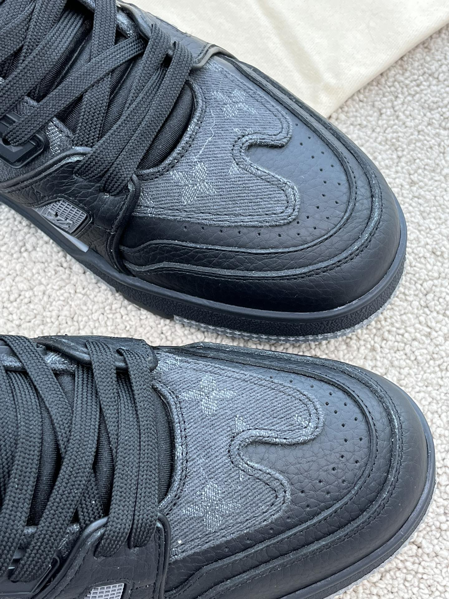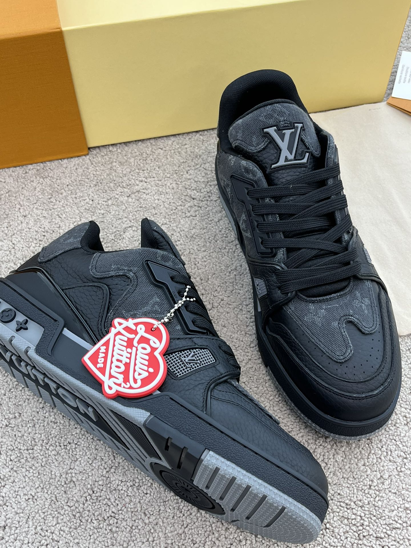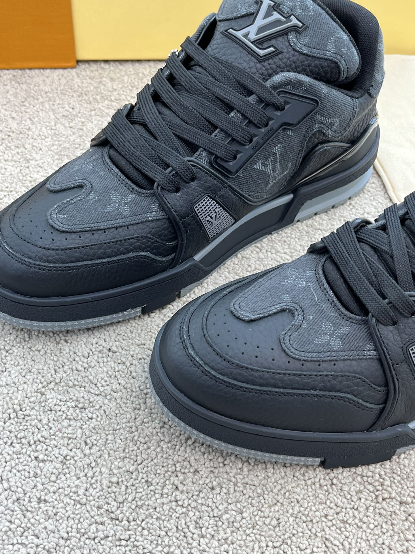 这款鞋子是AAAAA 1:1 质量 (非常棒). 使用了和原版一模一样的材料. 商标部分也保持了和路易威登/Louis Vuitton一样. 图片拍摄是实物鞋子拍摄, 您所收到的实物保证和我们图片一模一样.