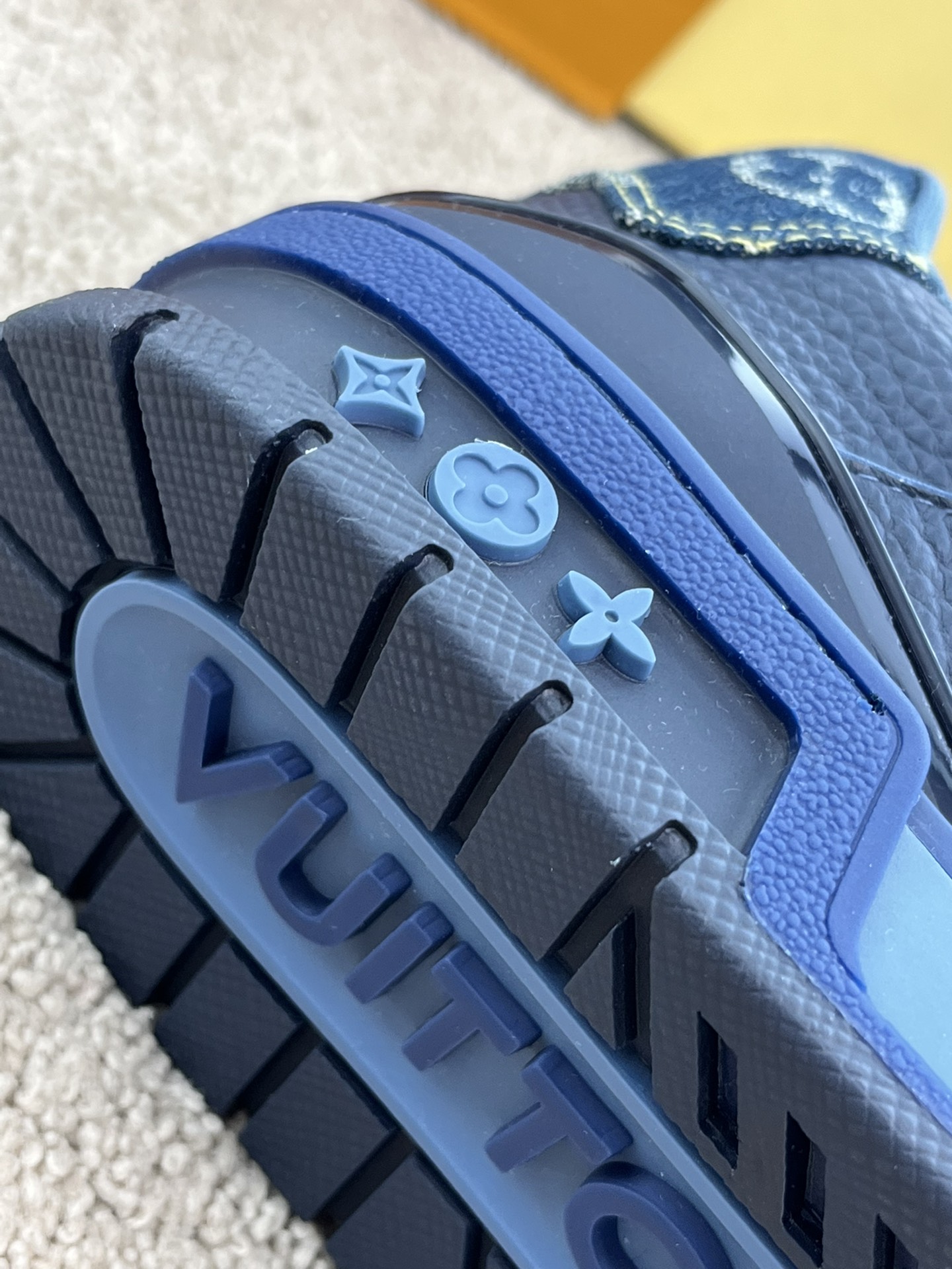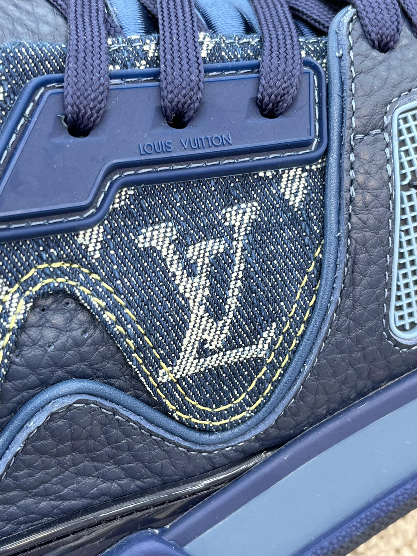 这款鞋子是AAAAA 1:1 质量 (非常棒). 使用了和原版一模一样的材料. 商标部分也保持了和路易威登/Louis Vuitton一样. 图片拍摄是实物鞋子拍摄, 您所收到的实物保证和我们图片一模一样.