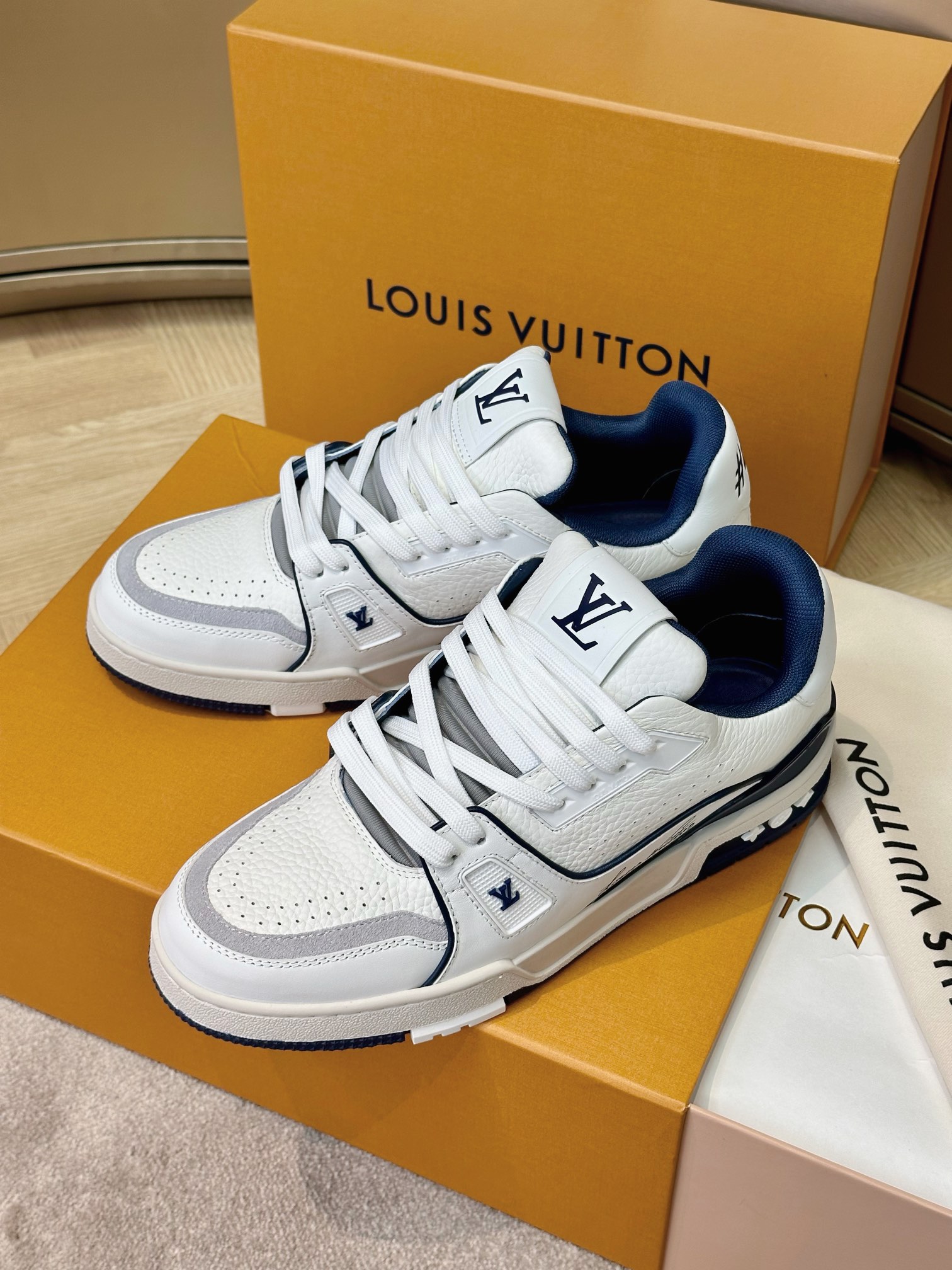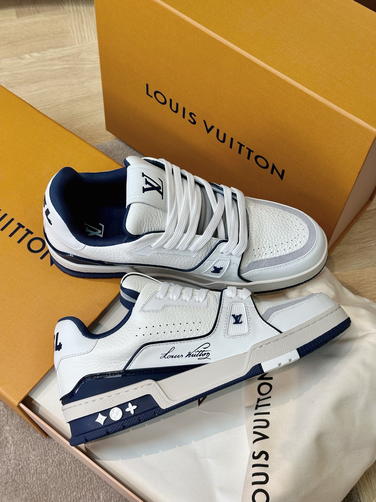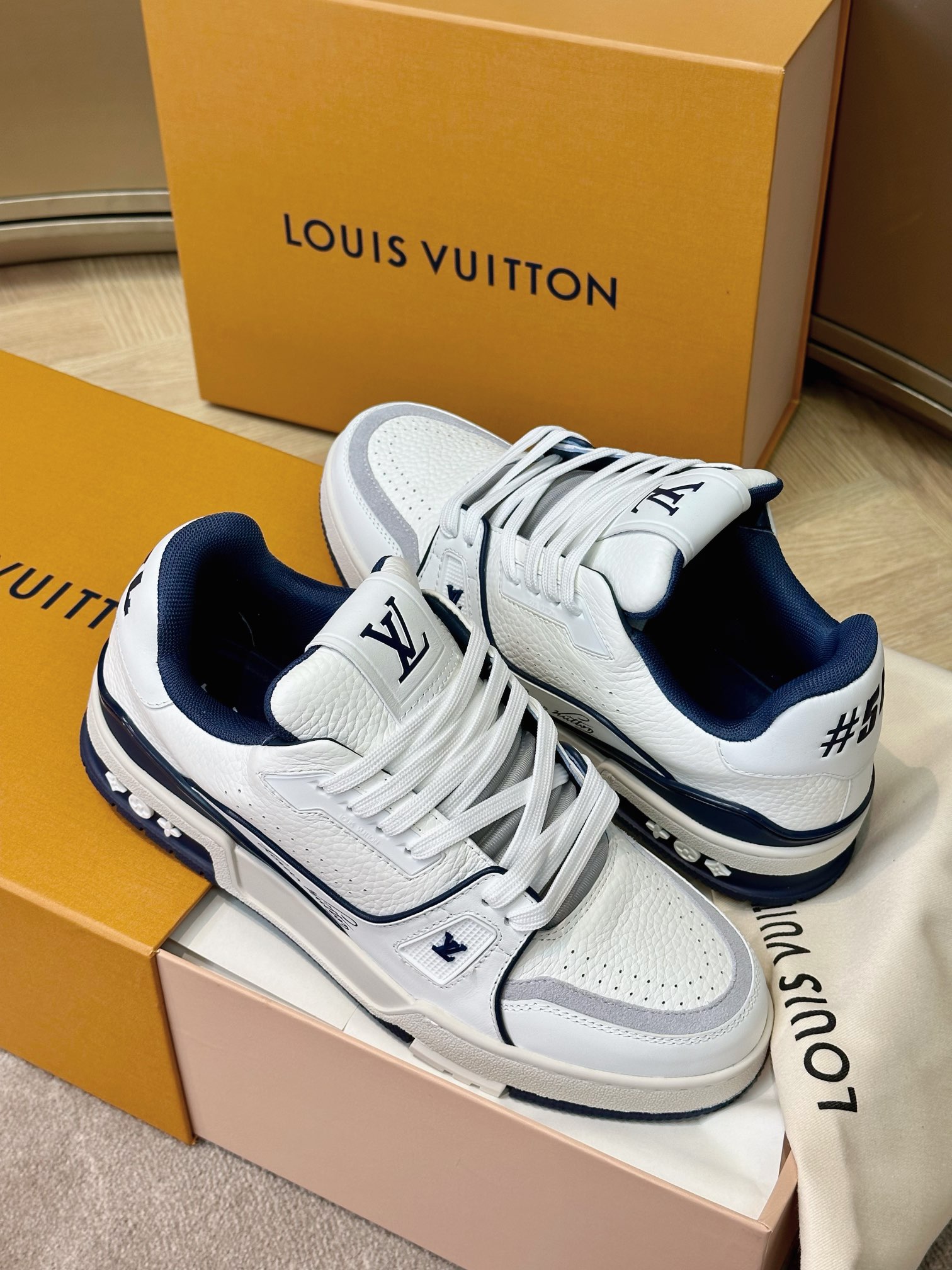 这款鞋子是AAAAA 1:1 质量 (非常棒). 使用了和原版一模一样的材料. 商标部分也保持了和路易威登/Louis Vuitton一样. 图片拍摄是实物鞋子拍摄, 您所收到的实物保证和我们图片一模一样.