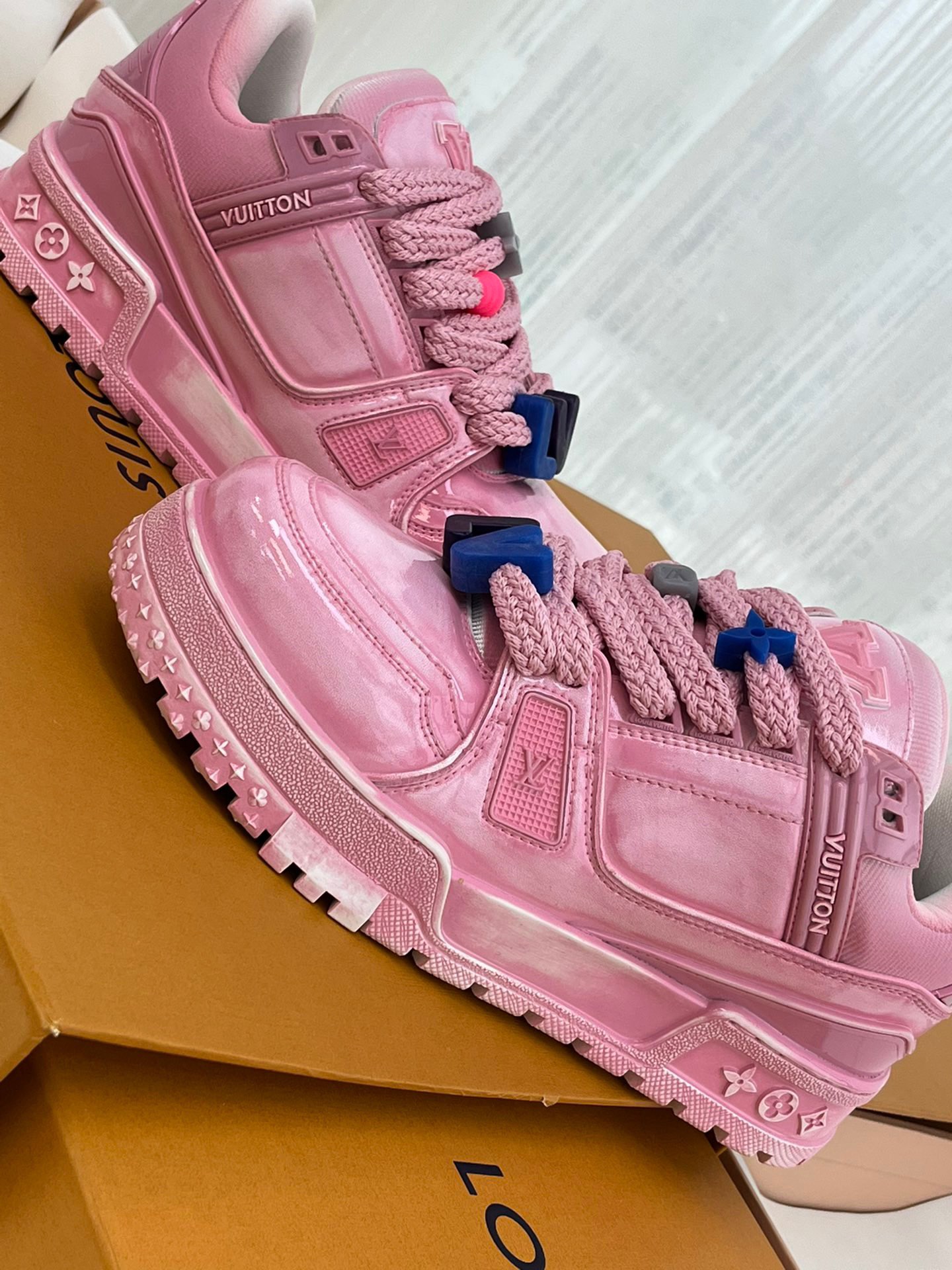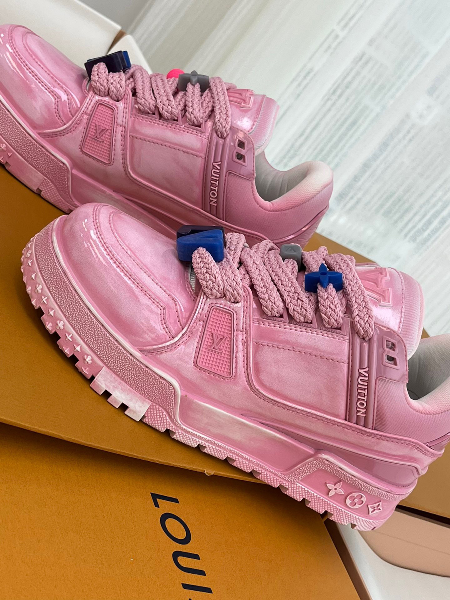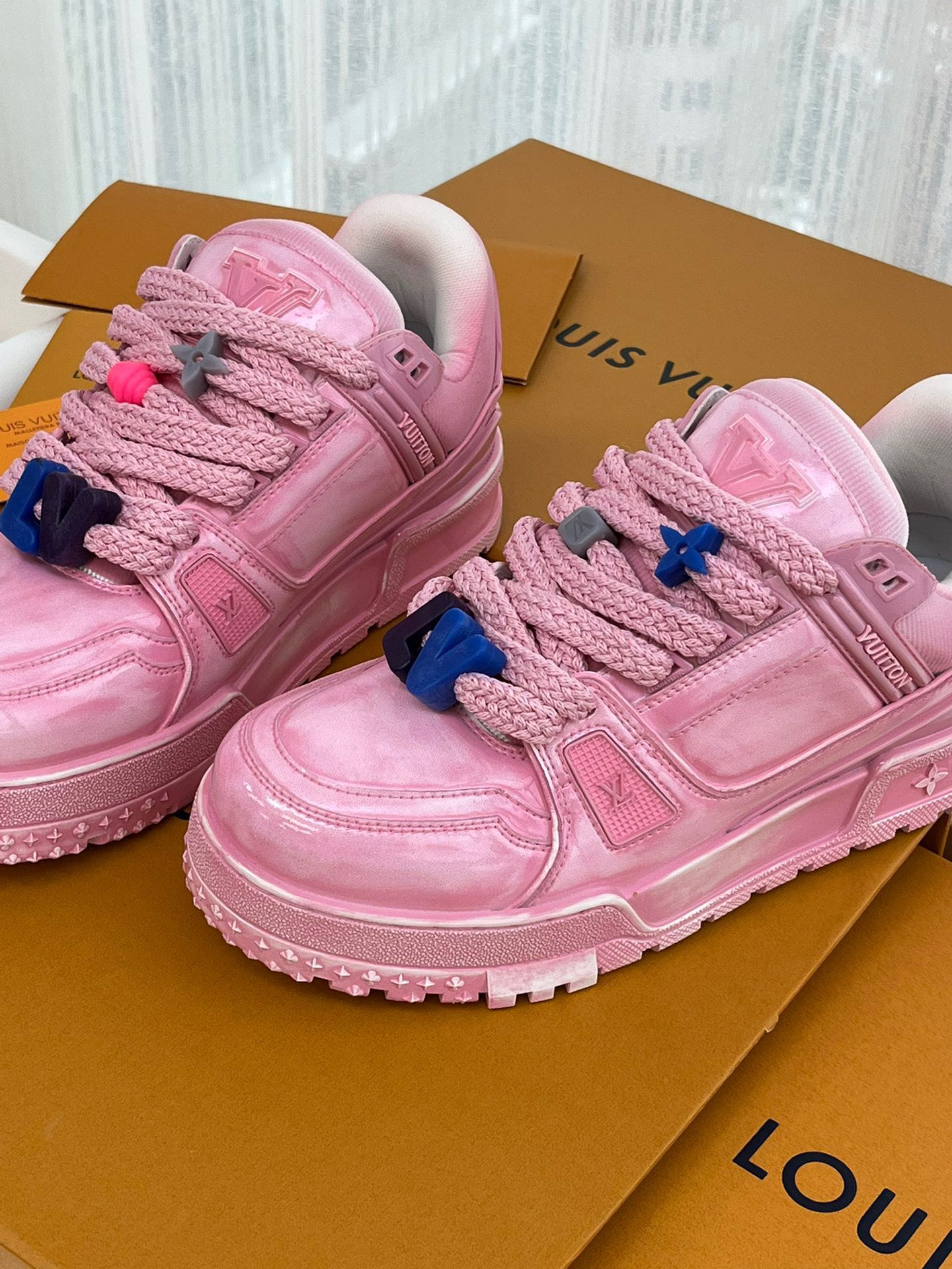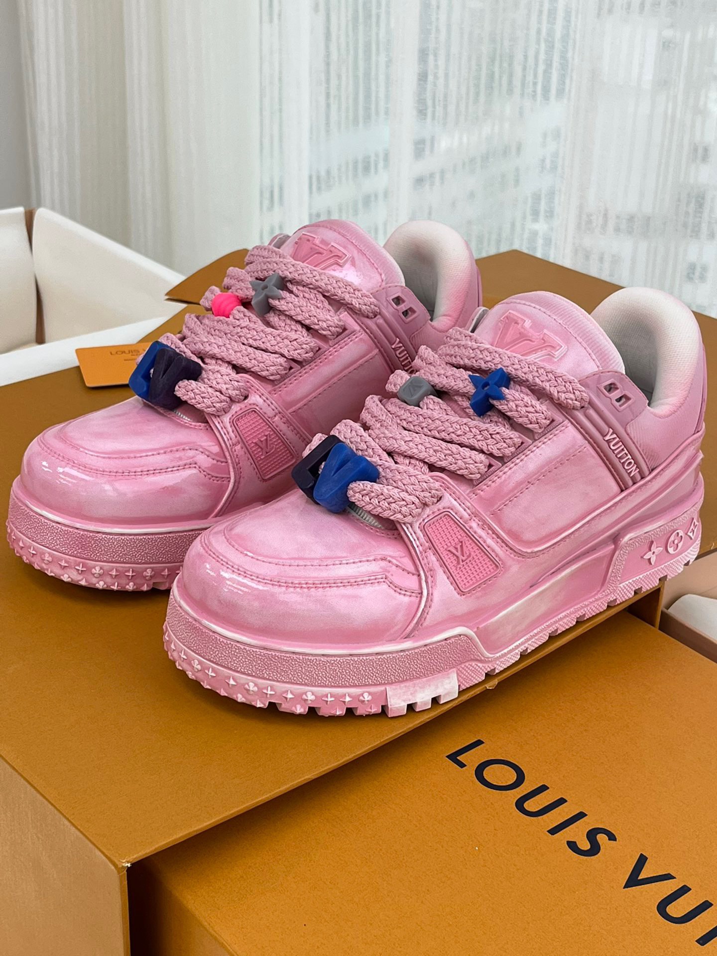 这款鞋子是AAAAA 1:1 质量 (非常棒). 使用了和原版一模一样的材料. 商标部分也保持了和路易威登/Louis Vuitton一样. 图片拍摄是实物鞋子拍摄, 您所收到的实物保证和我们图片一模一样.