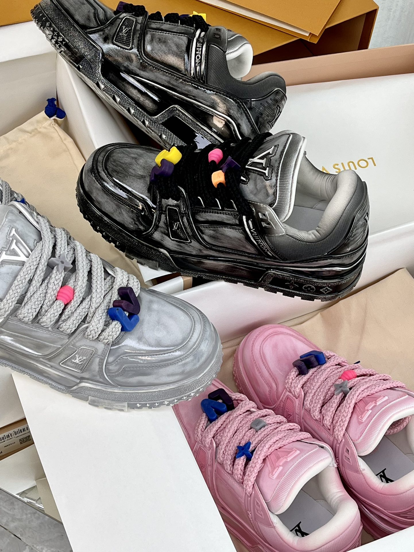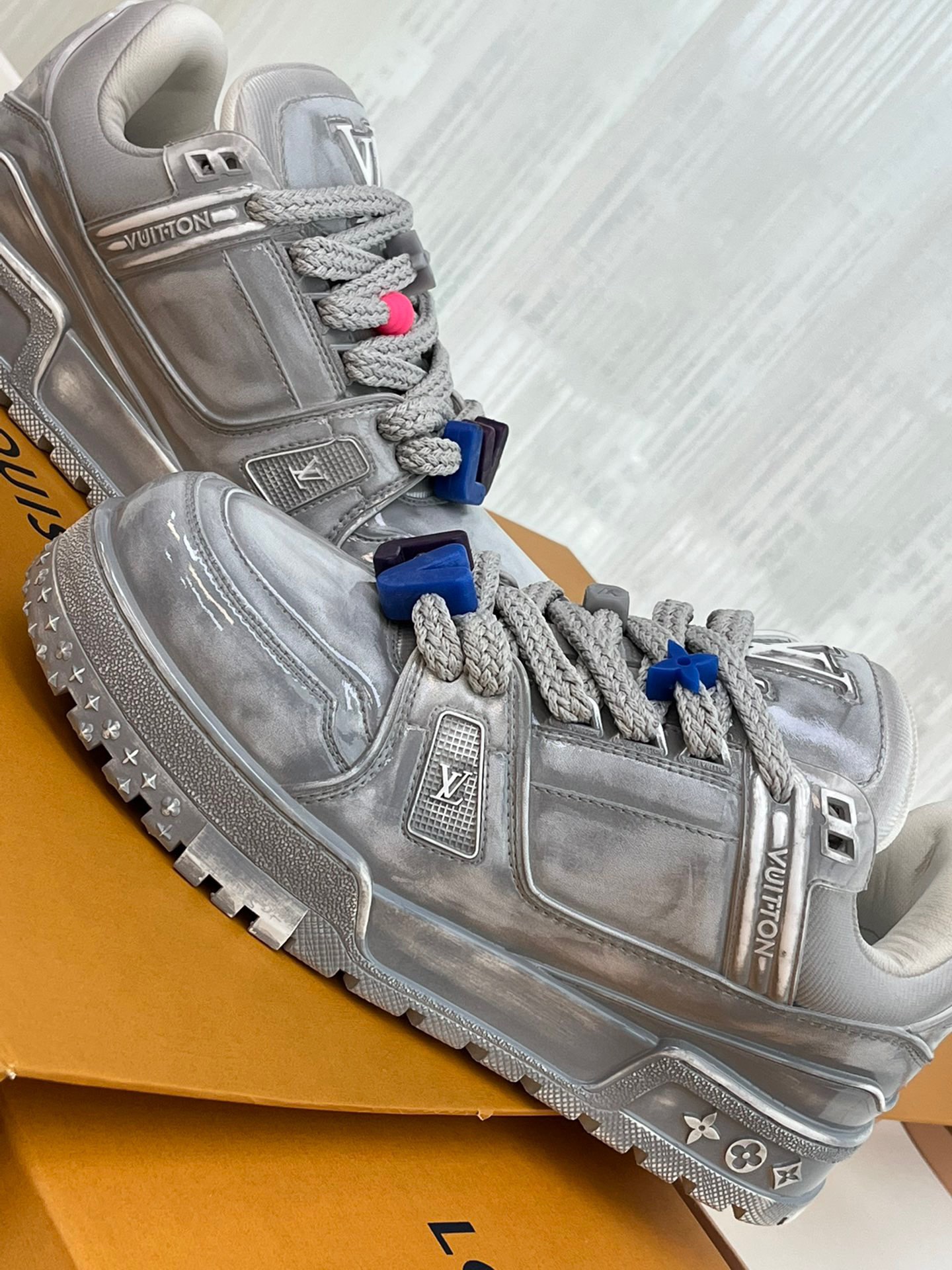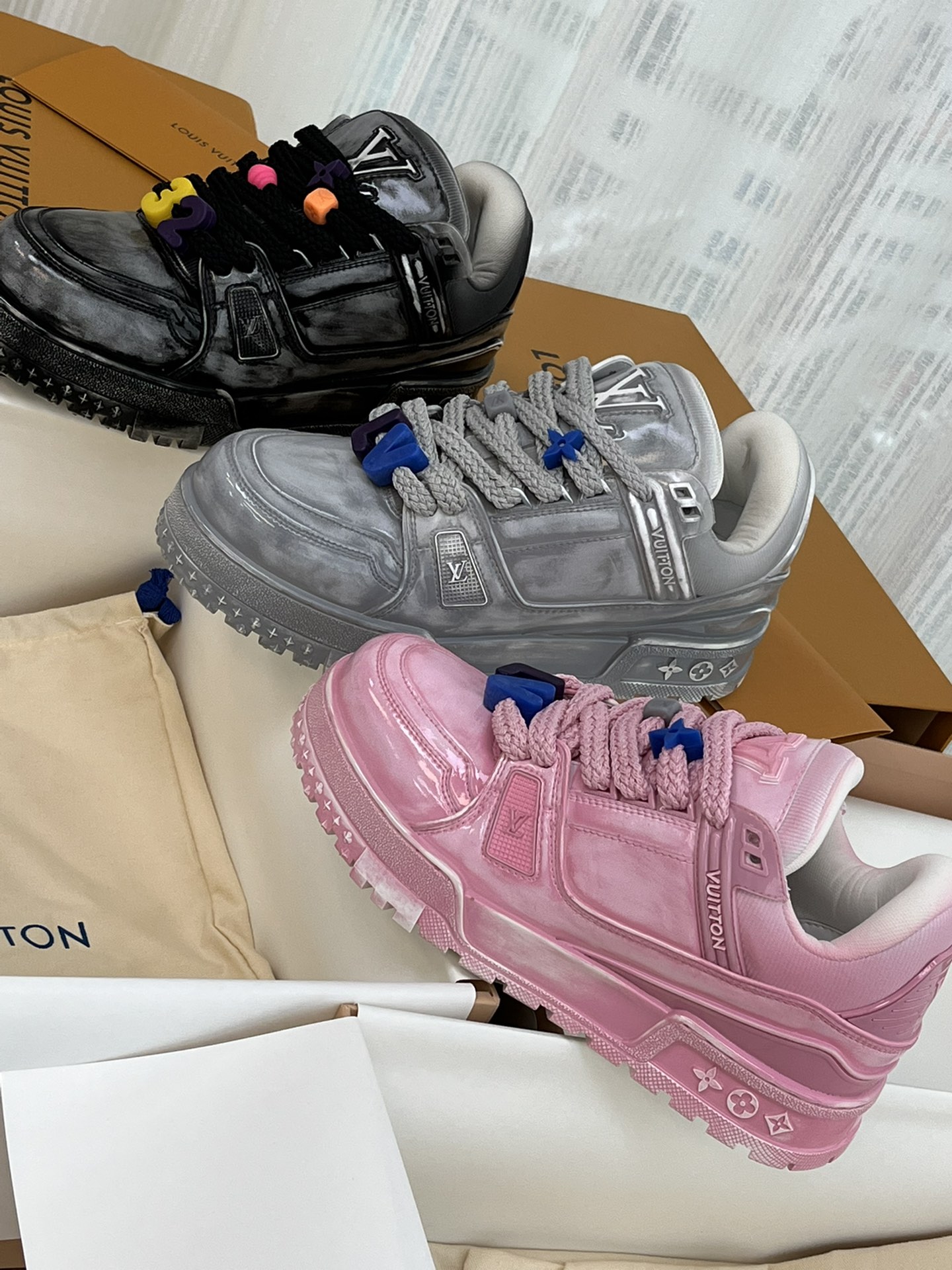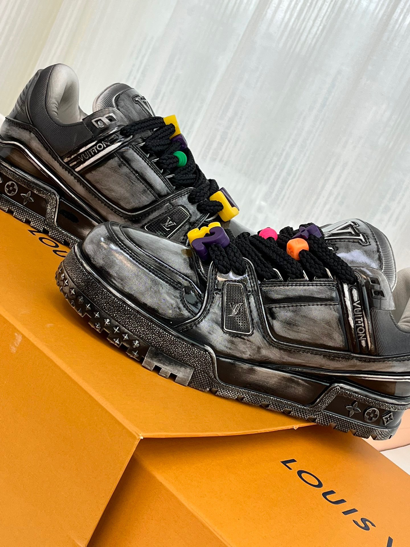 这款鞋子是AAAAA 1:1 质量 (非常棒). 使用了和原版一模一样的材料. 商标部分也保持了和路易威登/Louis Vuitton一样. 图片拍摄是实物鞋子拍摄, 您所收到的实物保证和我们图片一模一样.