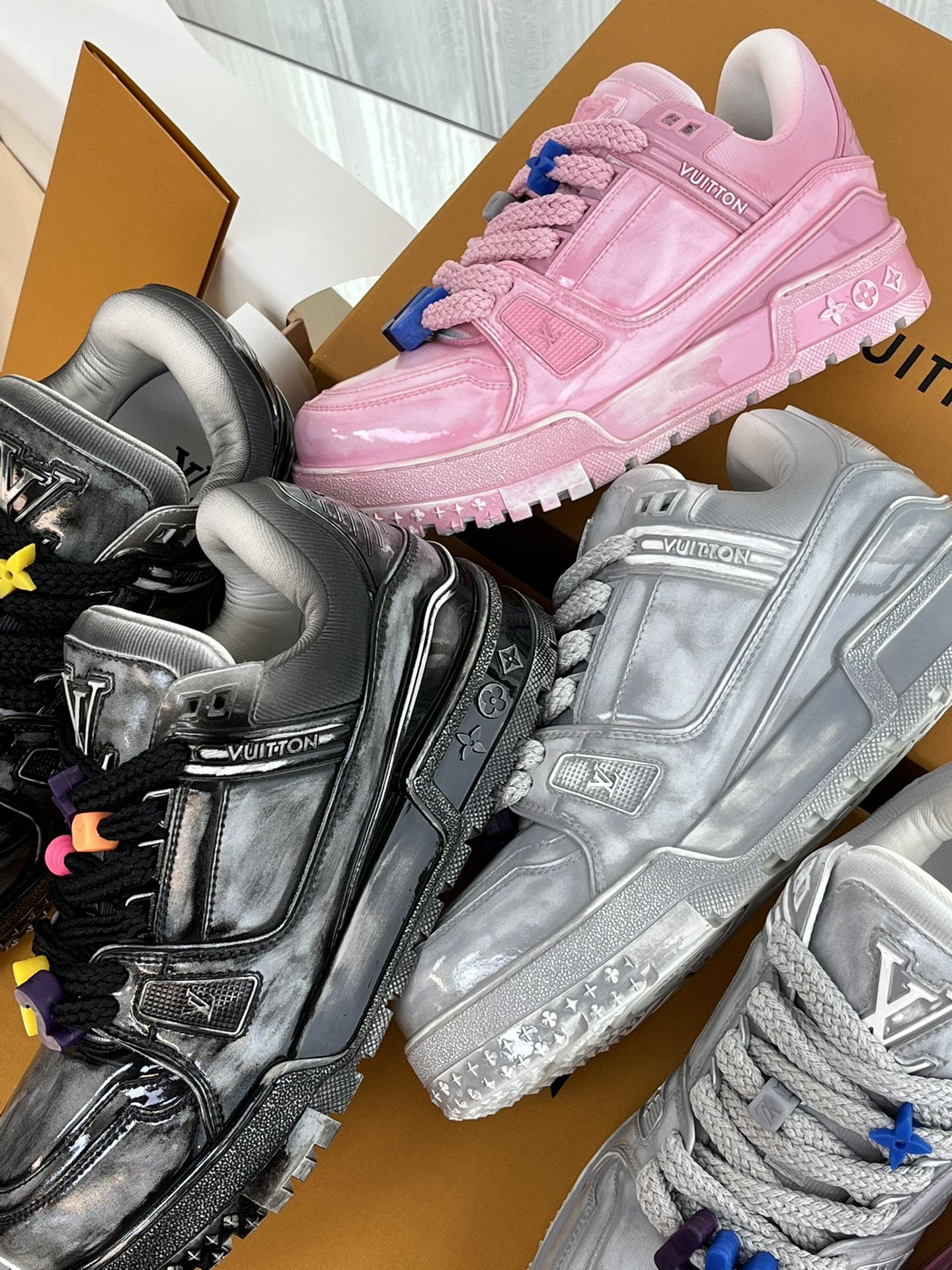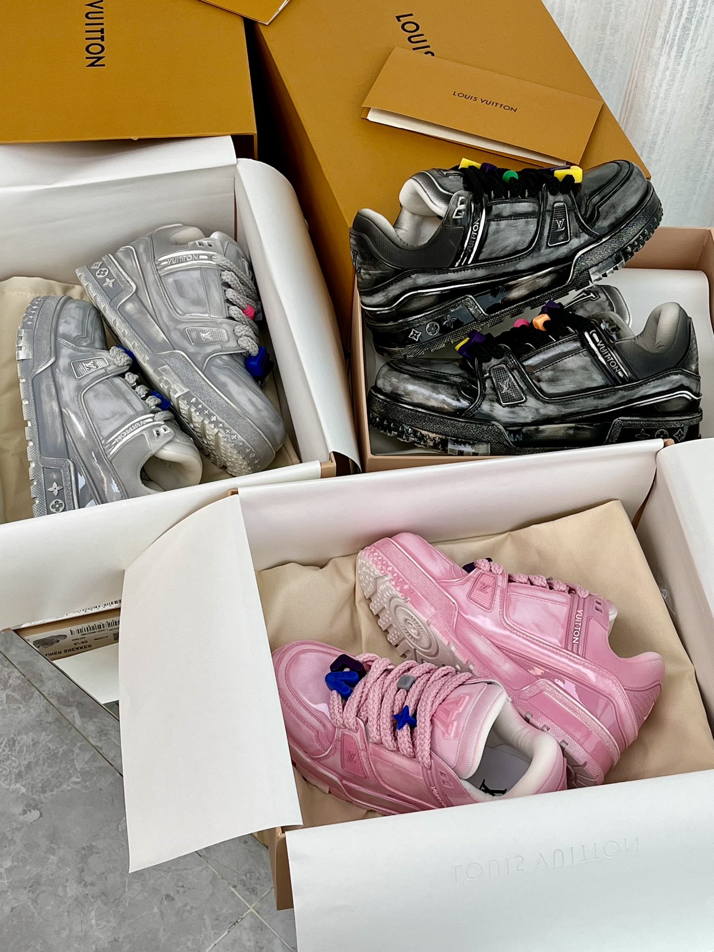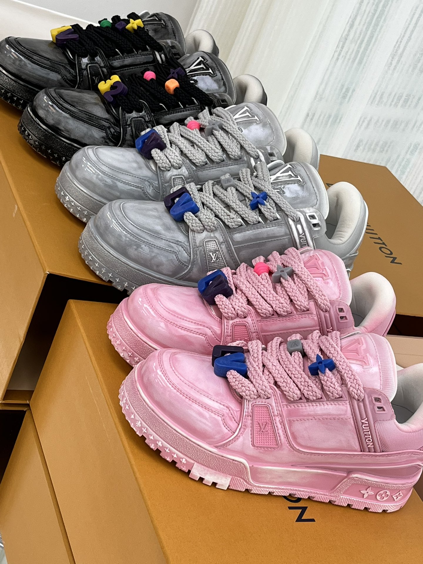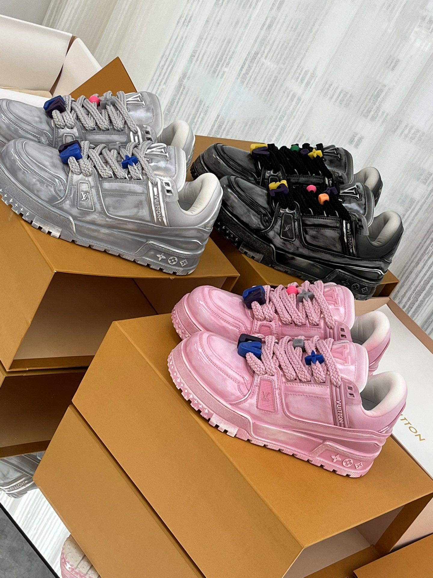 这款鞋子是AAAAA 1:1 质量 (非常棒). 使用了和原版一模一样的材料. 商标部分也保持了和路易威登/Louis Vuitton一样. 图片拍摄是实物鞋子拍摄, 您所收到的实物保证和我们图片一模一样.